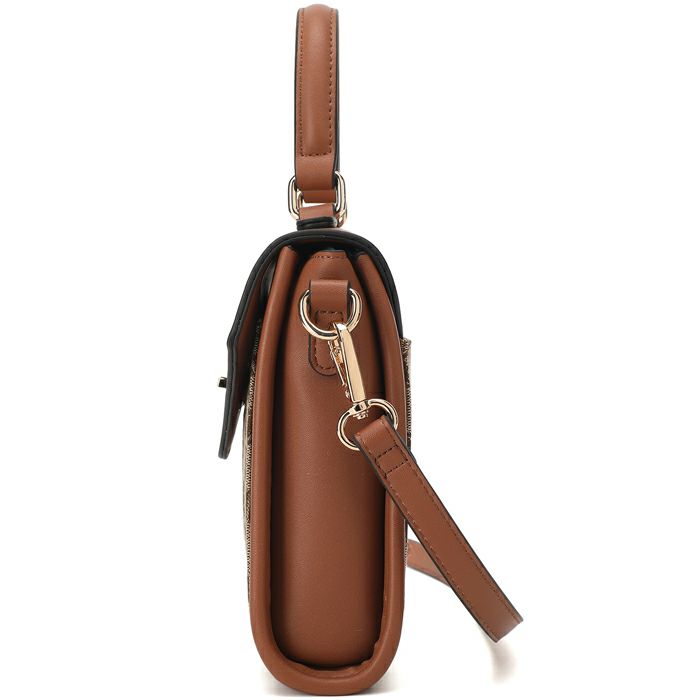 ロゴ金具 キーハウス付き 両アオリポケット ハンドバッグ(ショルダーストラップ付)