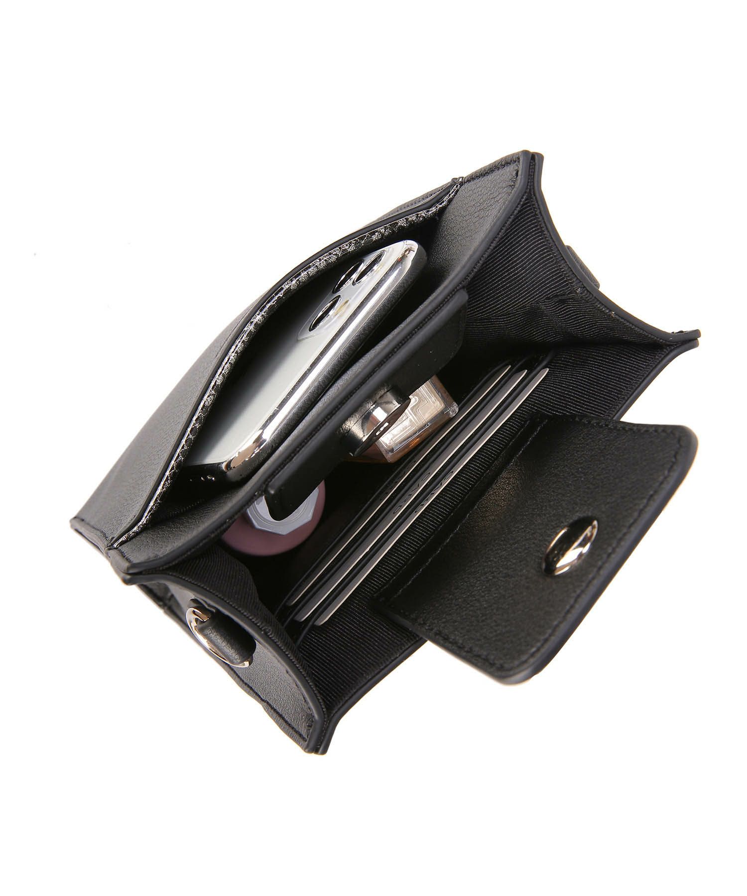 メイン収納口は嬉しいマグネットボタン。嬉しい3つのカード収納付きで使い勝手抜群です。