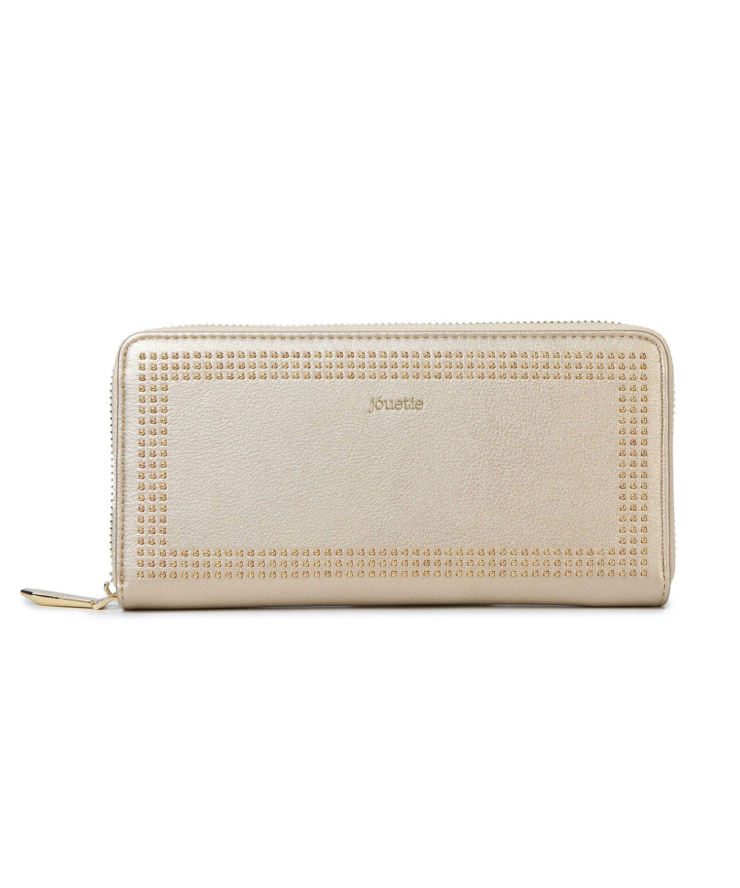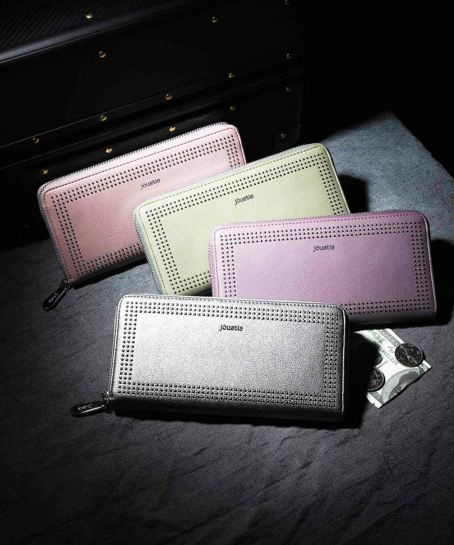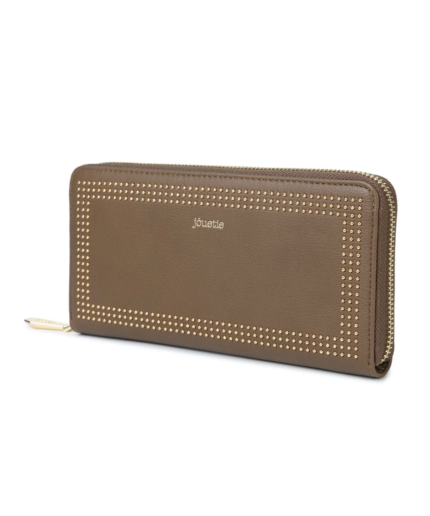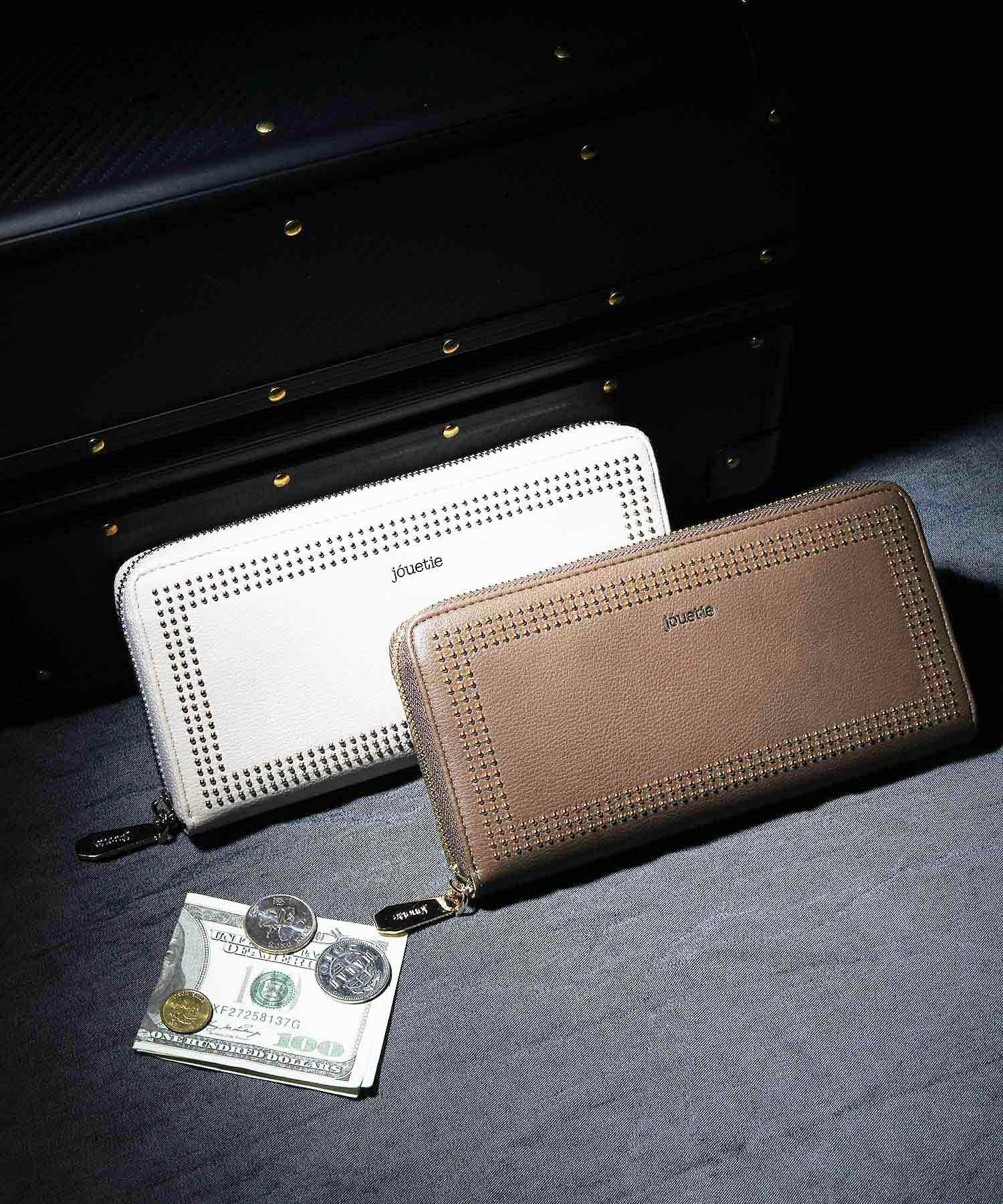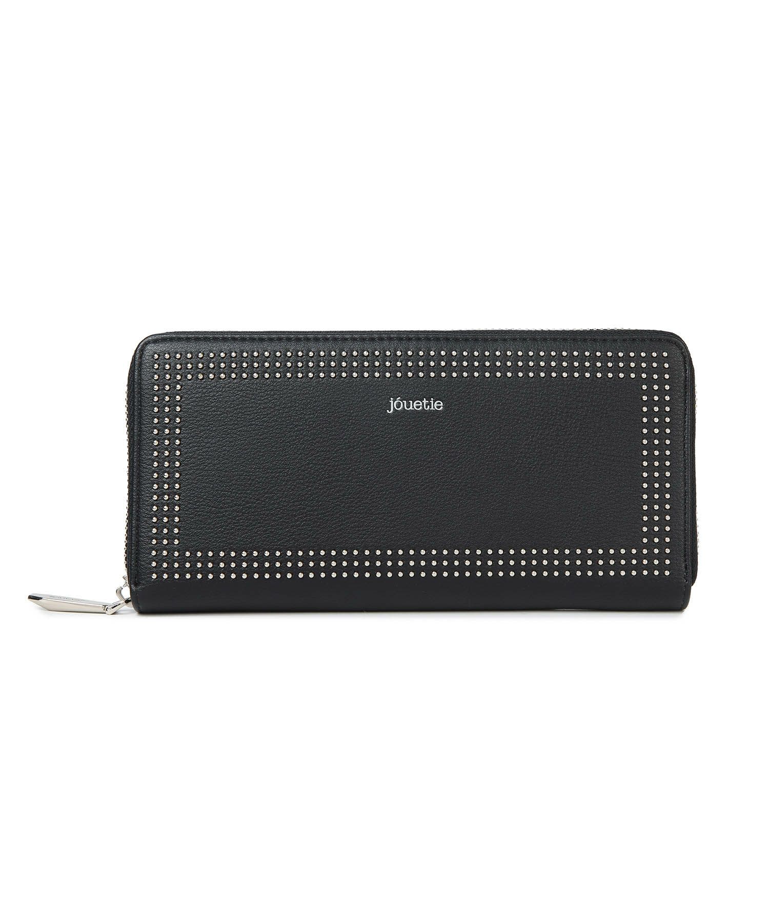 シンプルをベースにjouetieのロゴとマイクロスタッズがアクセントの長財布。