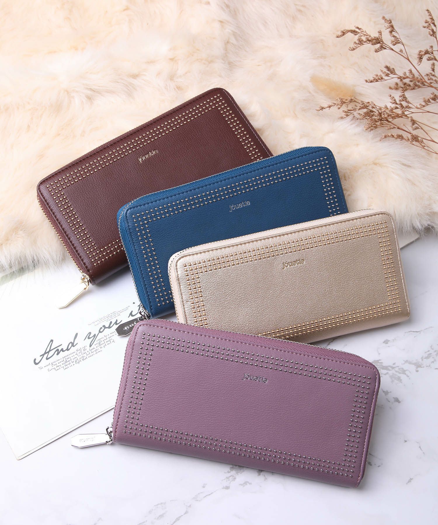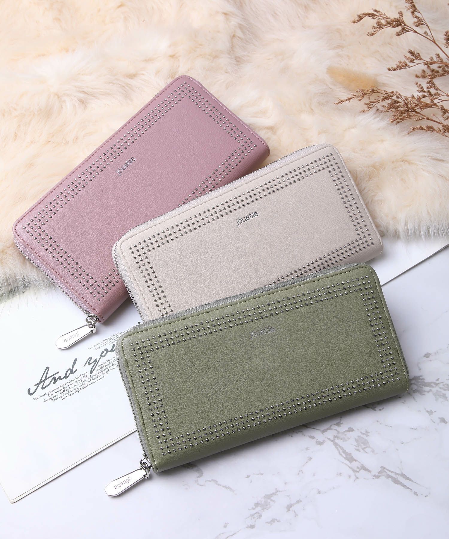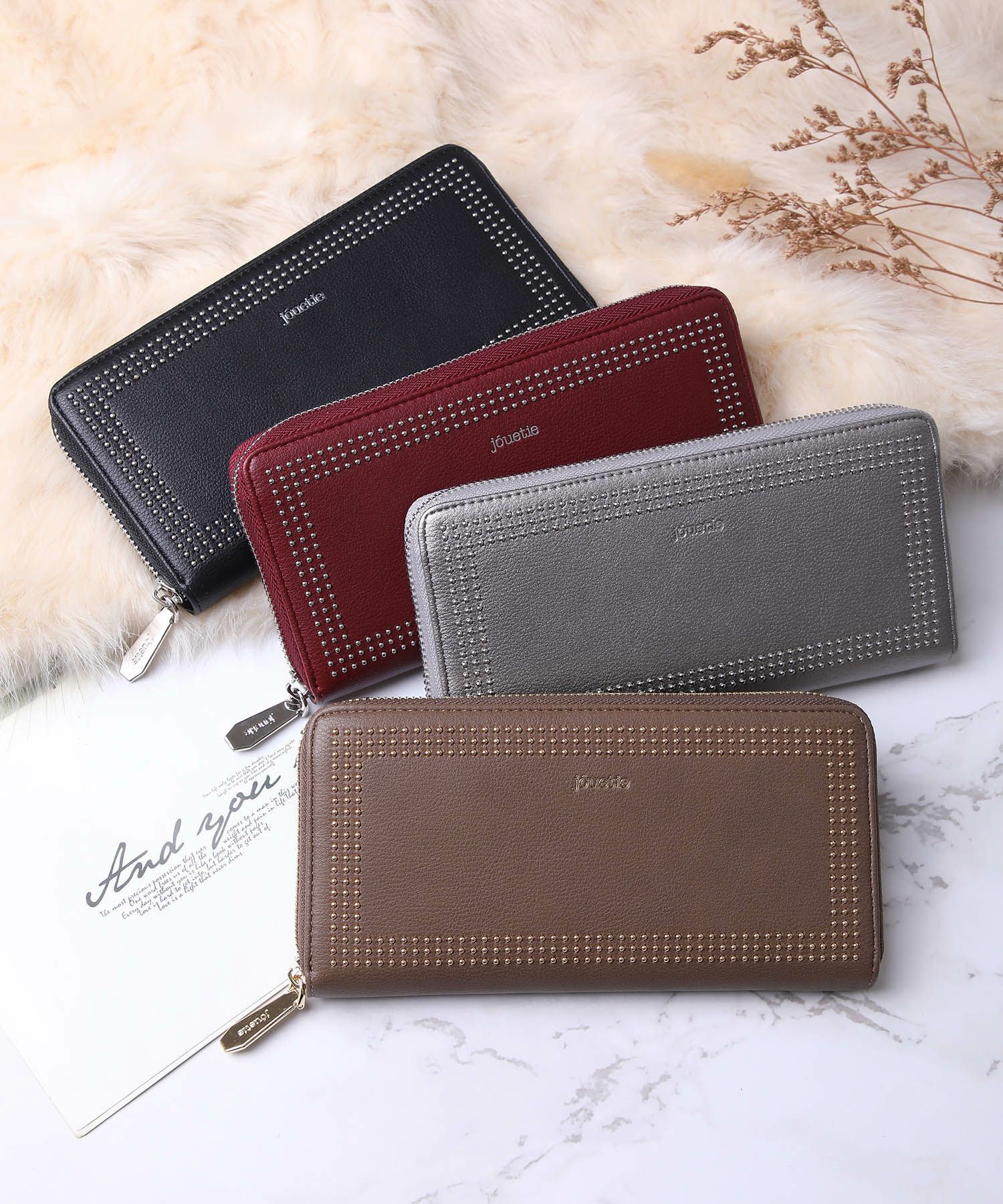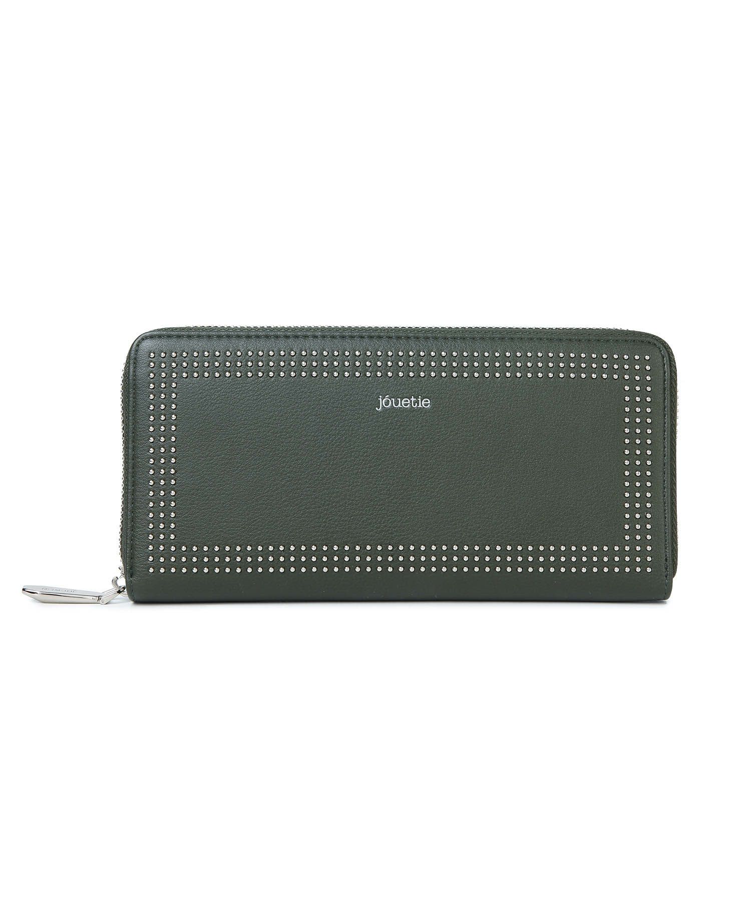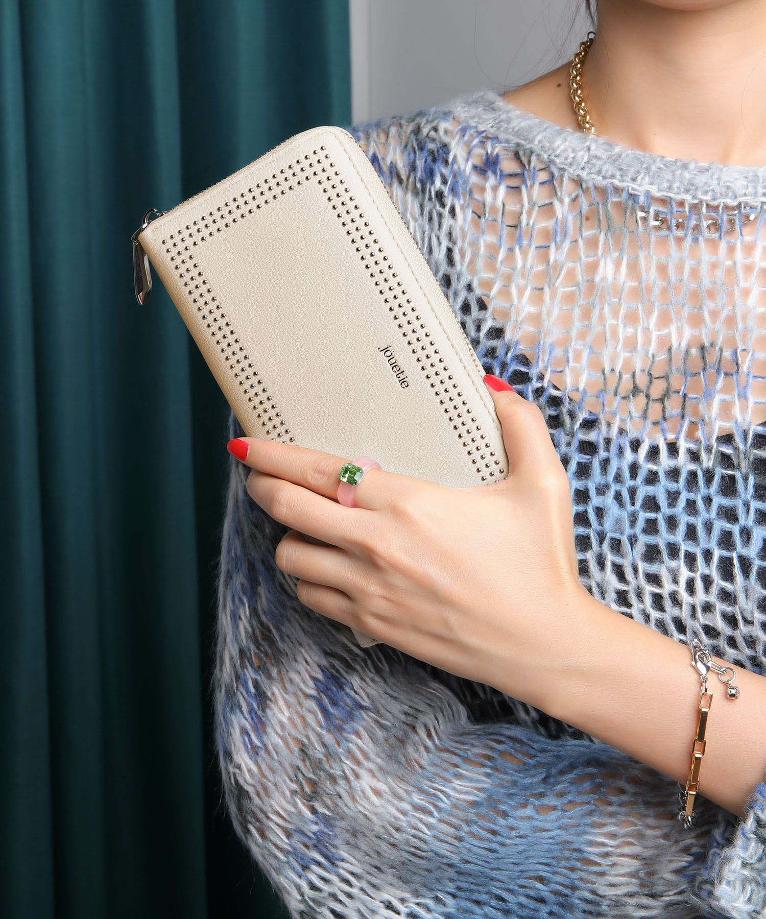 シンプルをベースにjouetieのロゴとマイクロスタッズがアクセントの長財布。