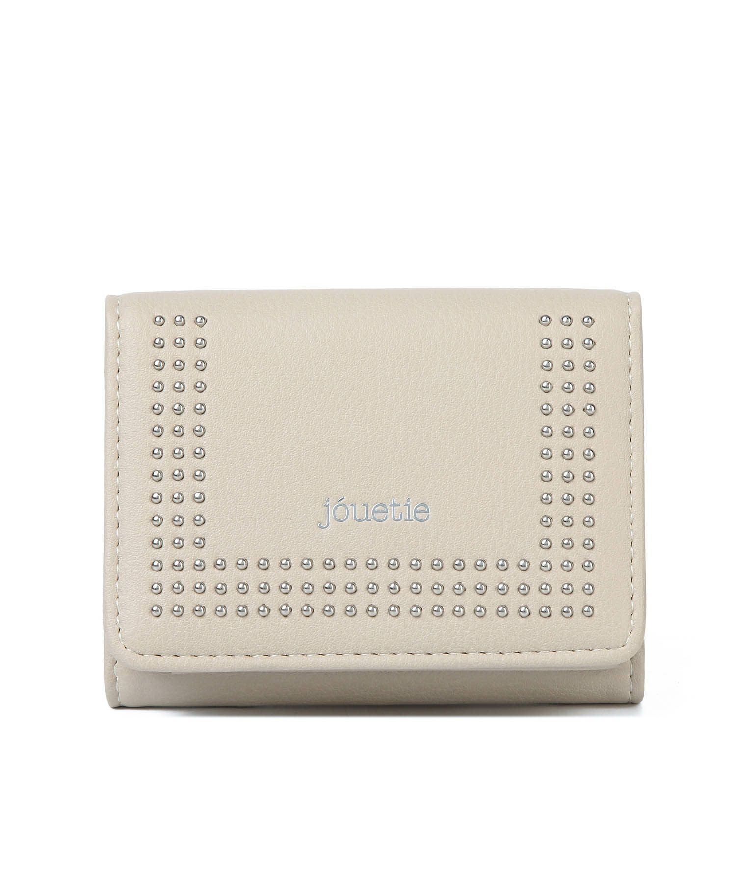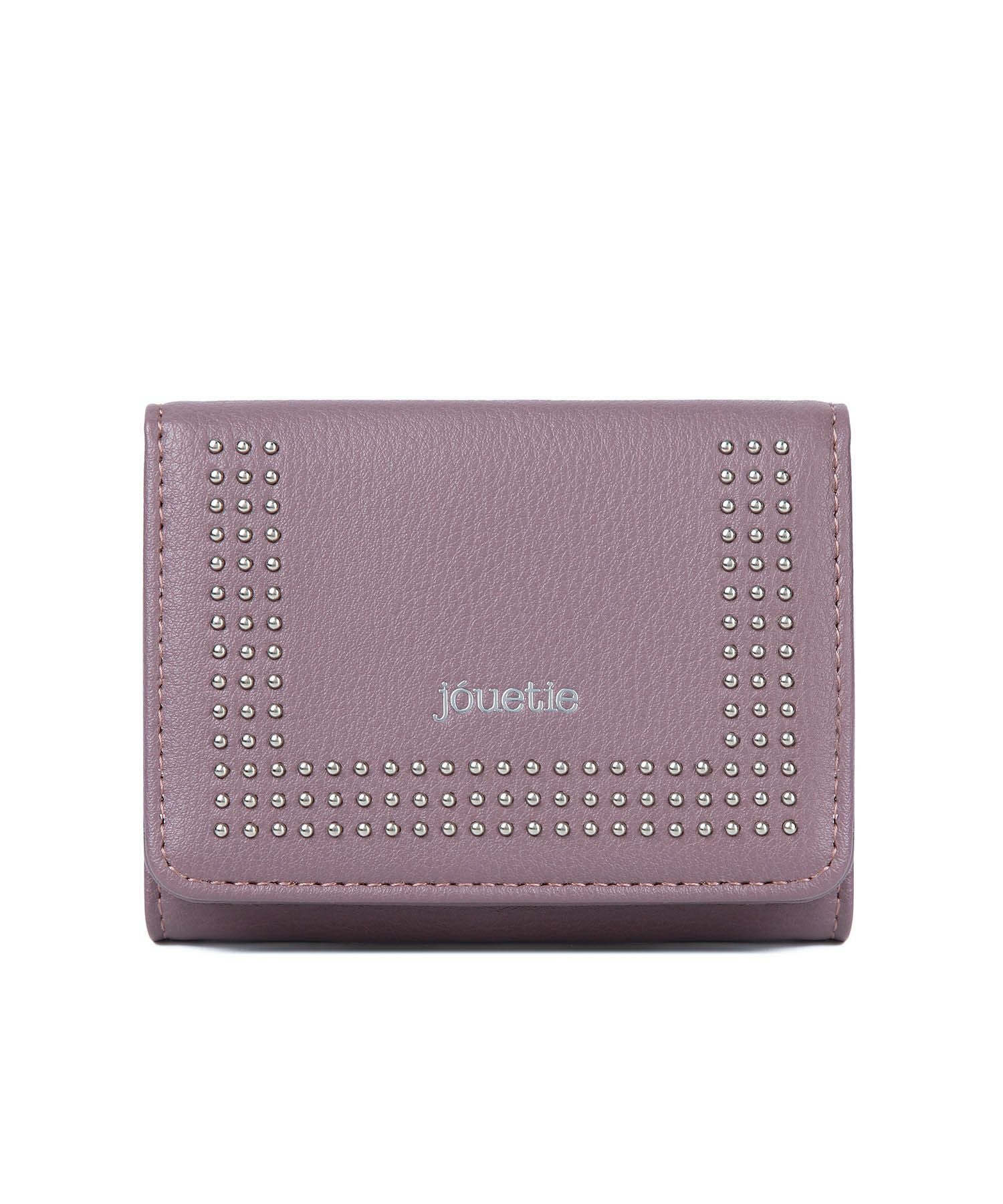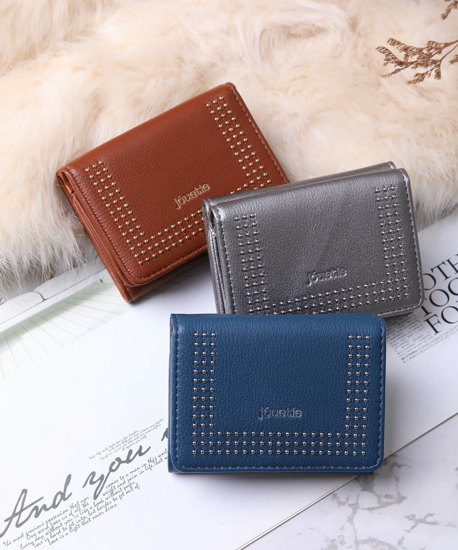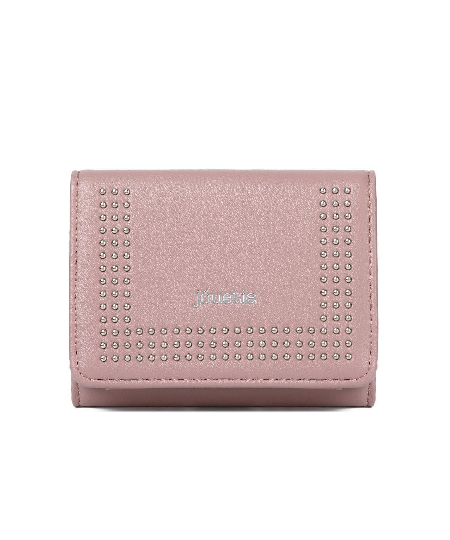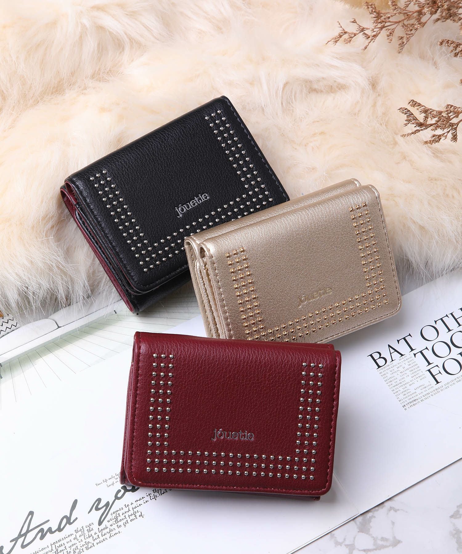 シンプルをベースにjouetieのロゴとマイクロスタッズがアクセントの三つ折りミニ財布です。