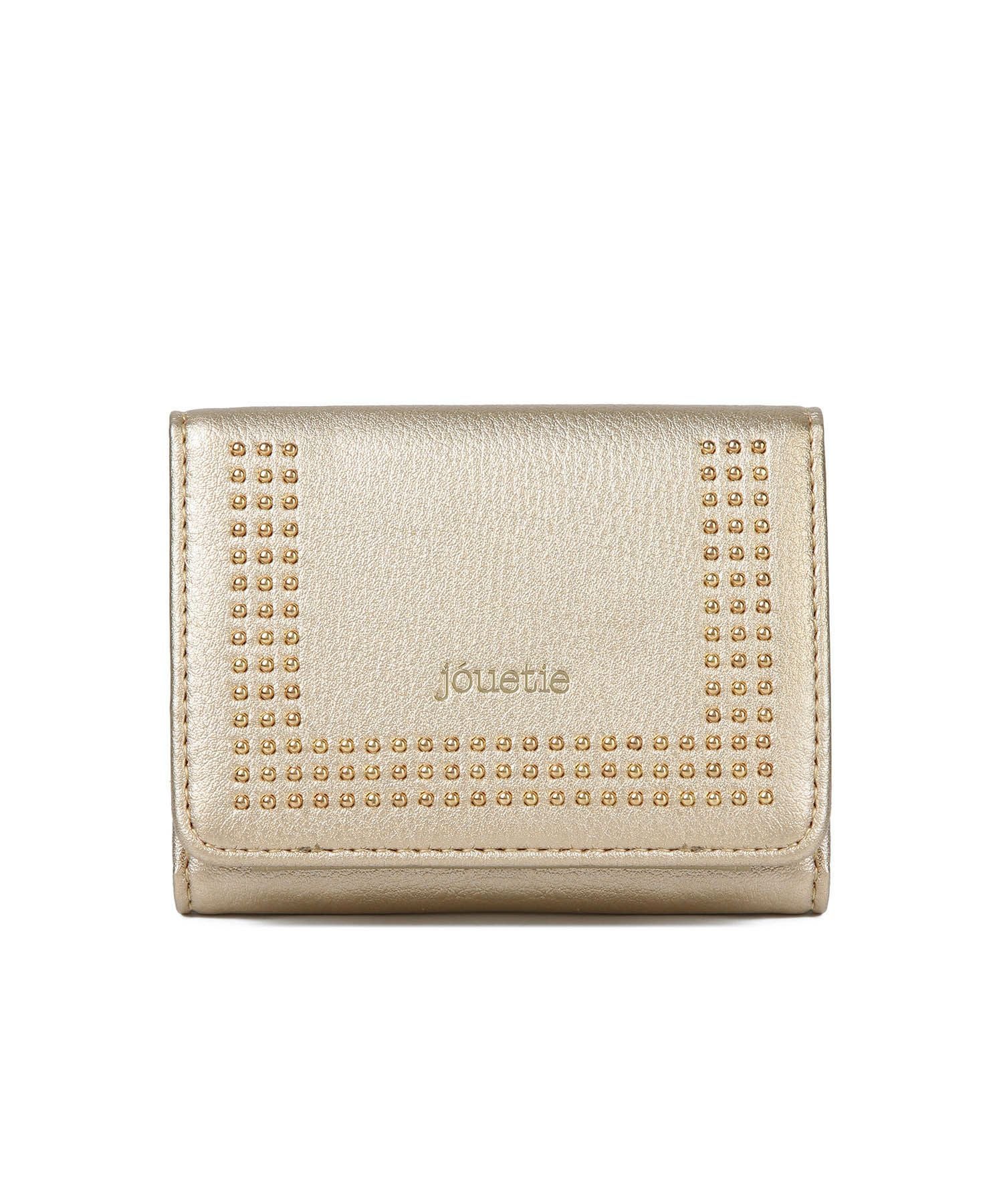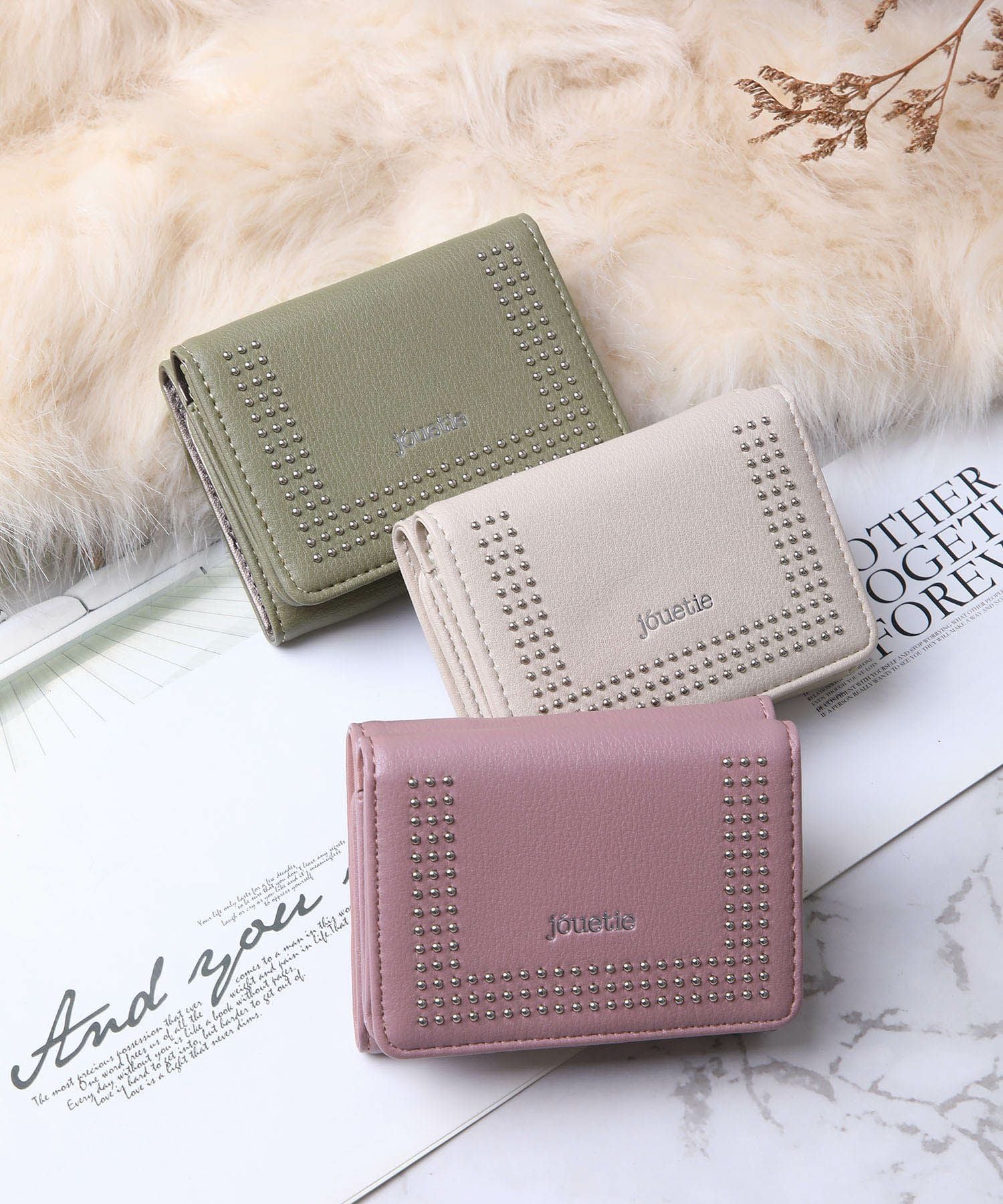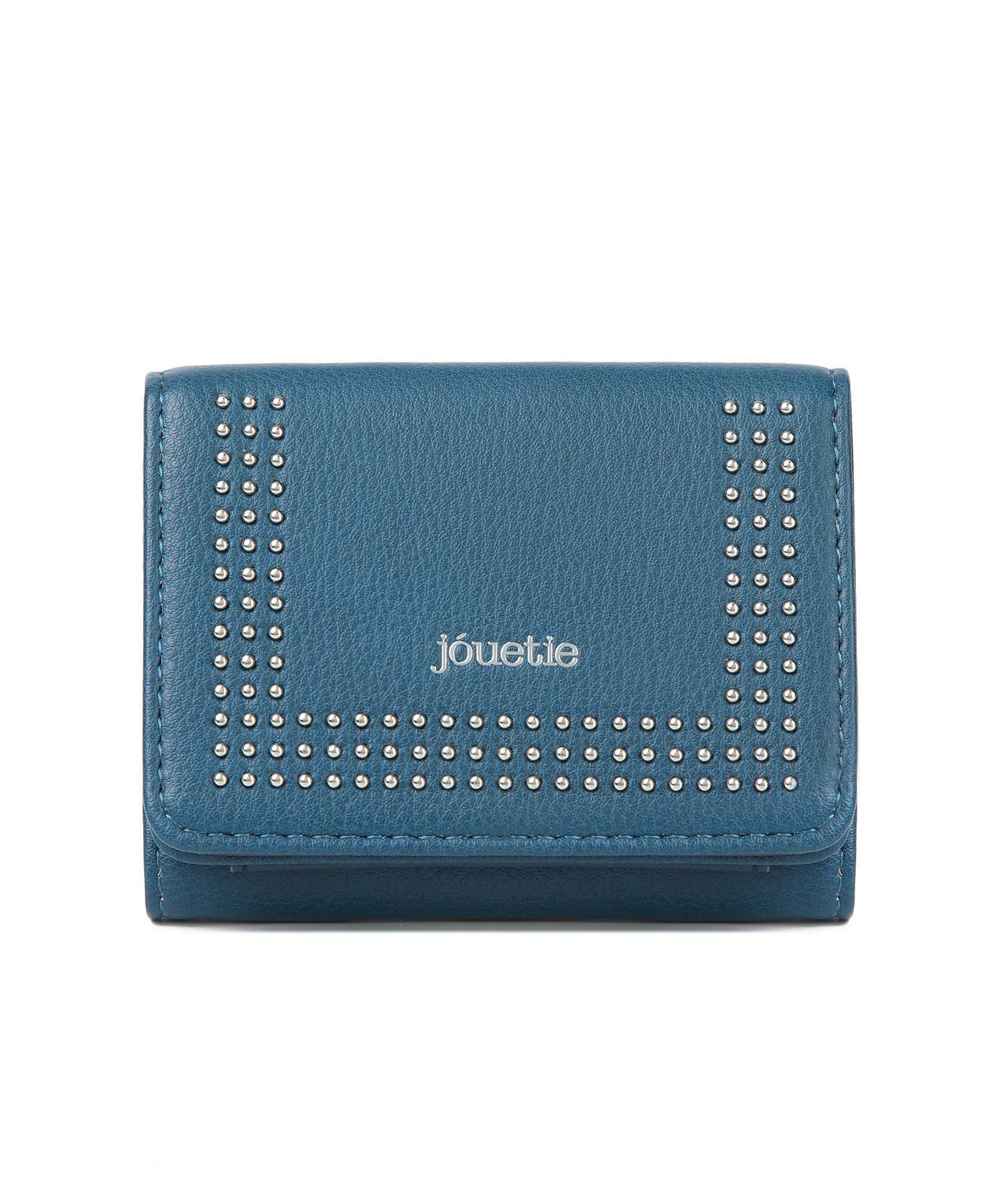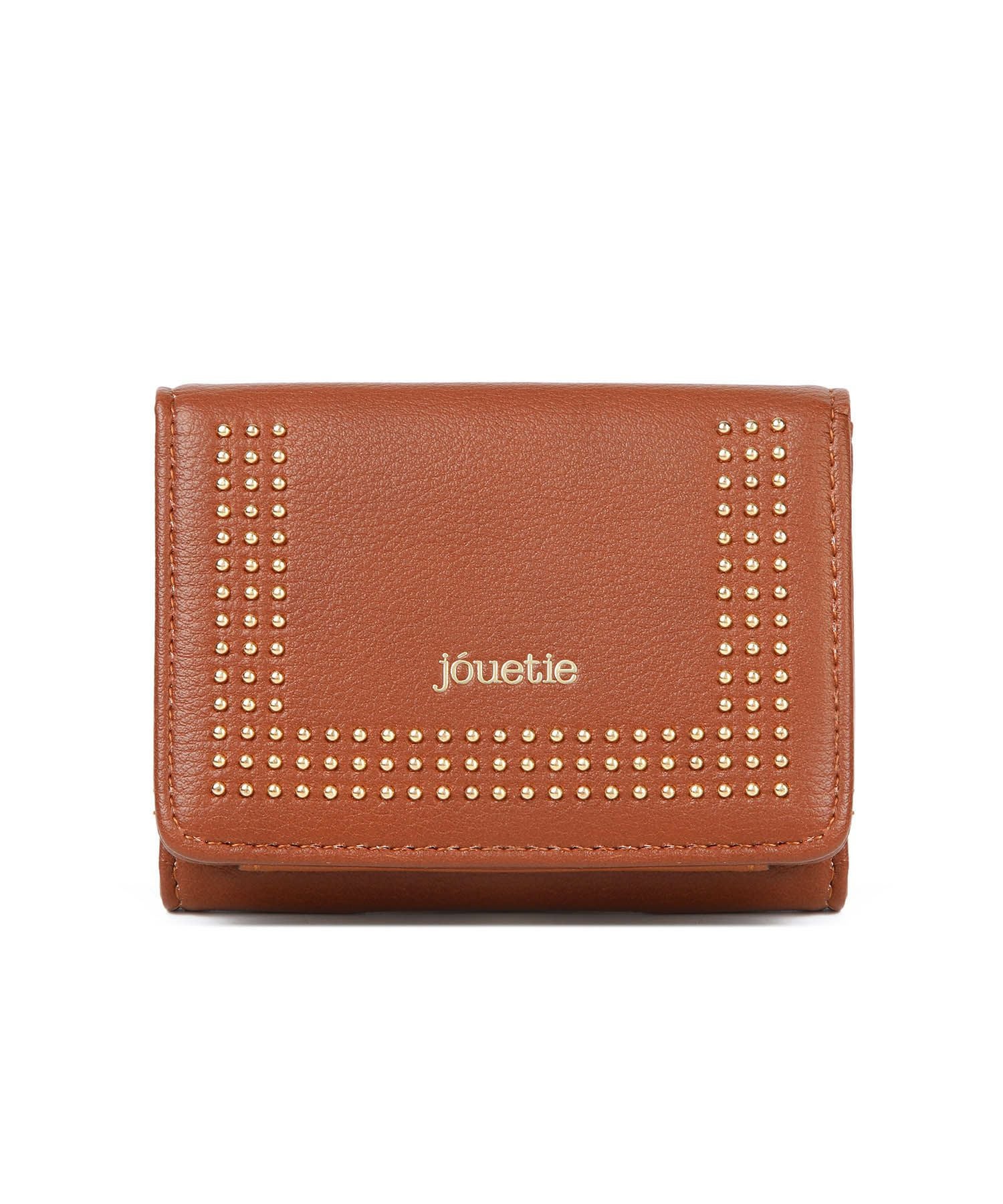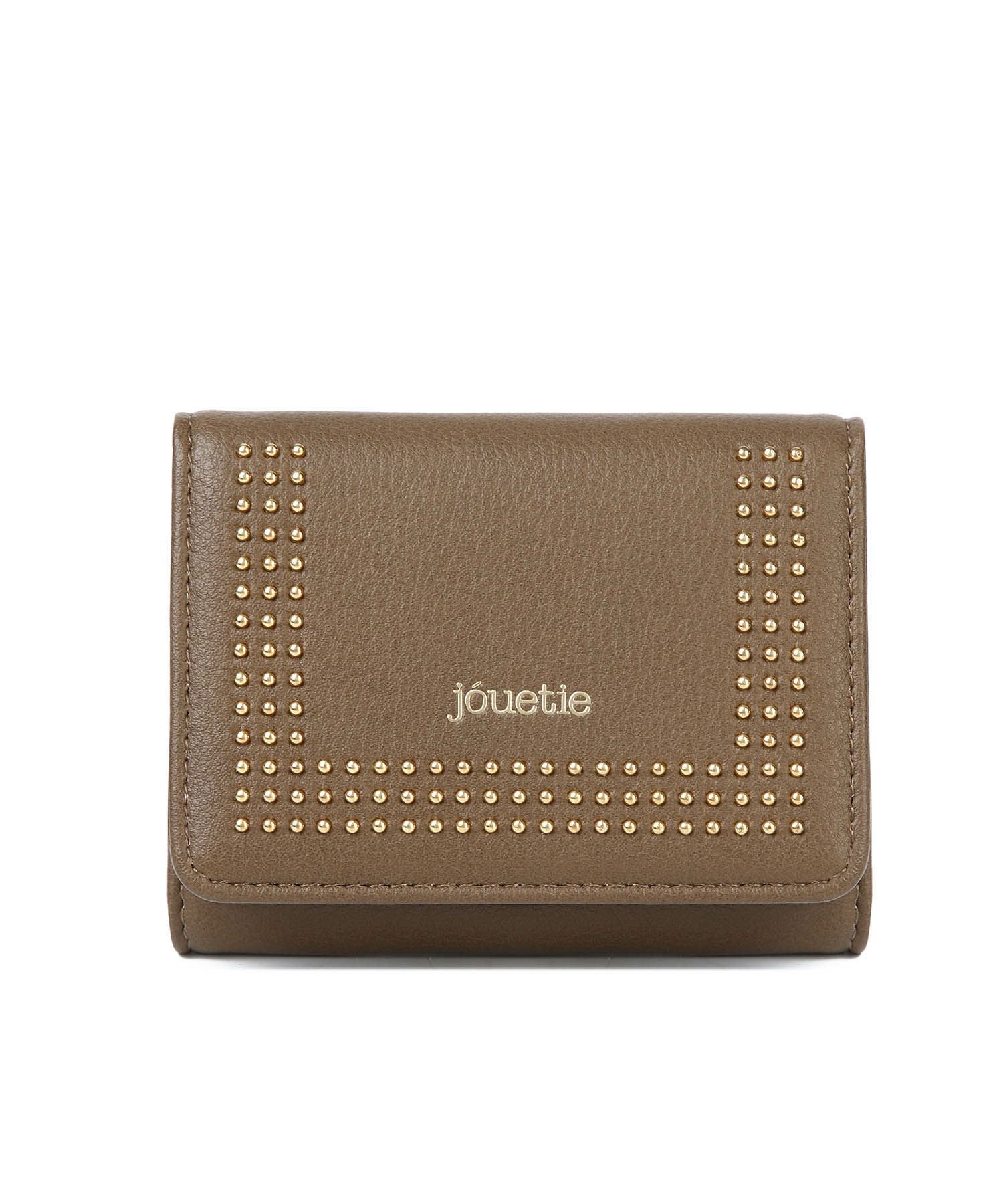 シンプルをベースにjouetieのロゴとマイクロスタッズがアクセントの三つ折りミニ財布です。