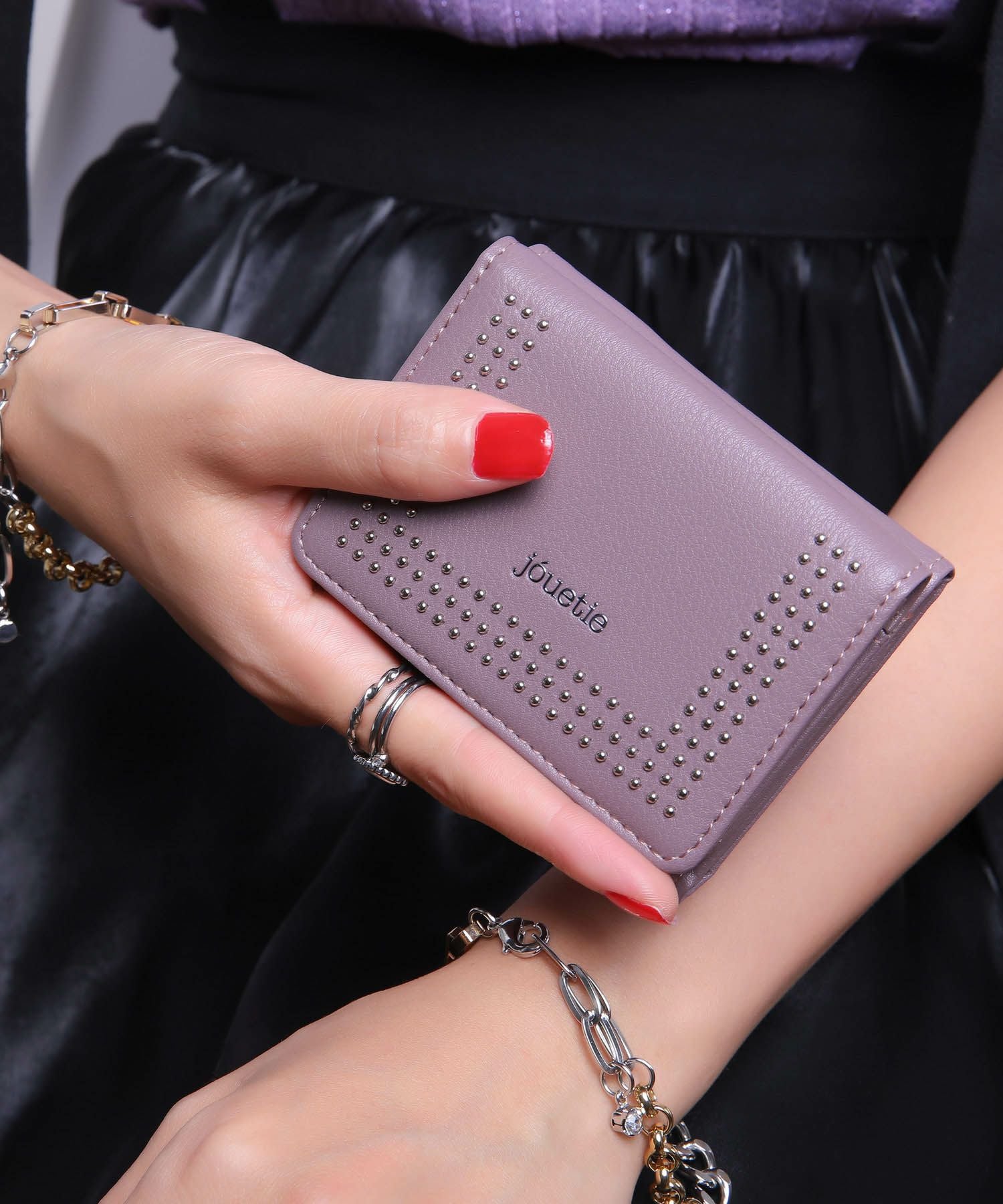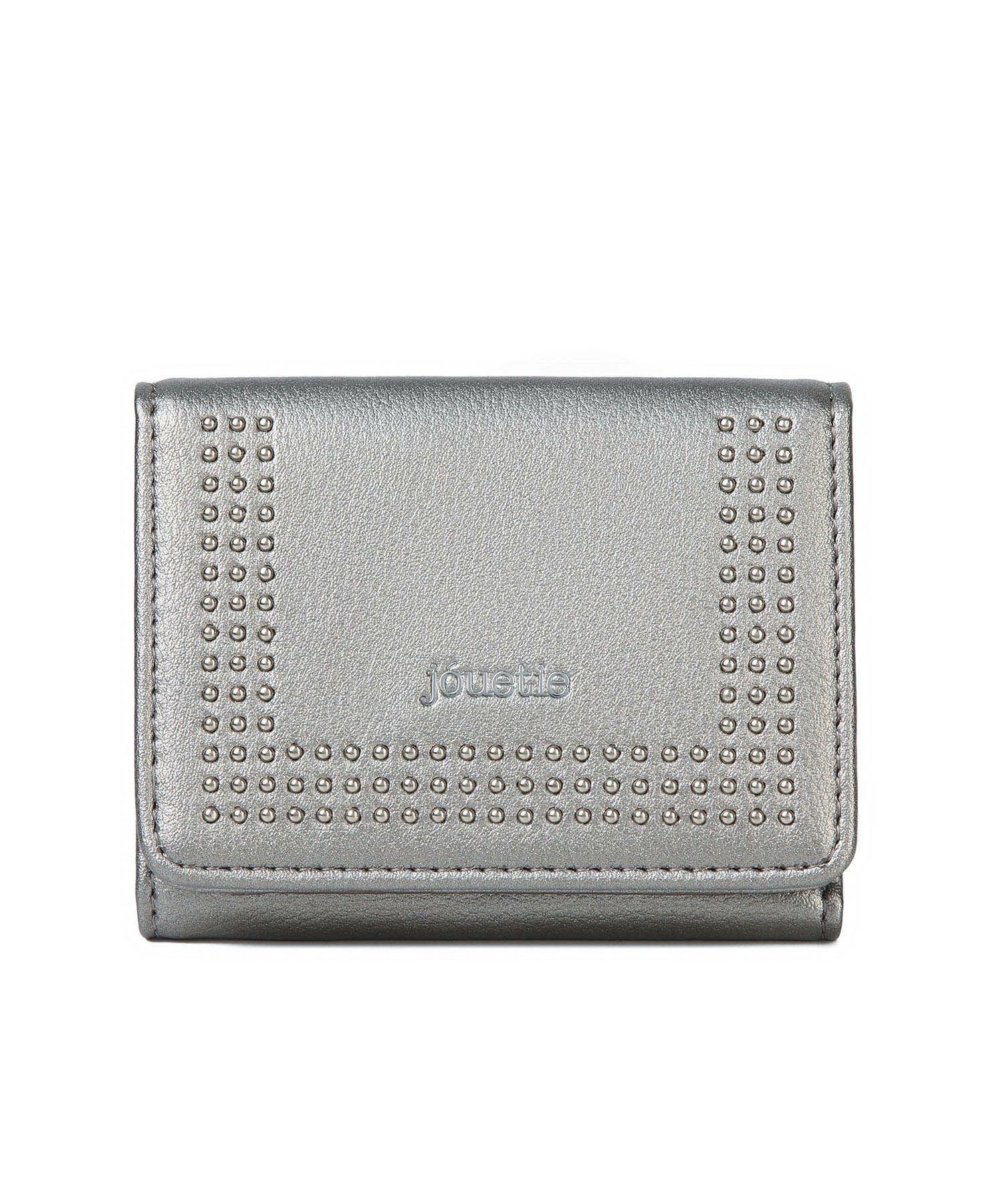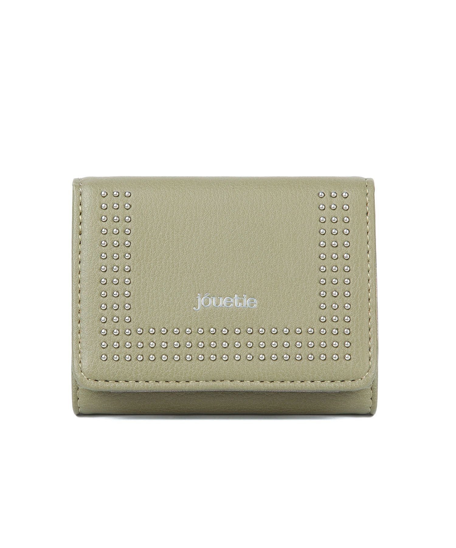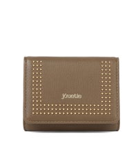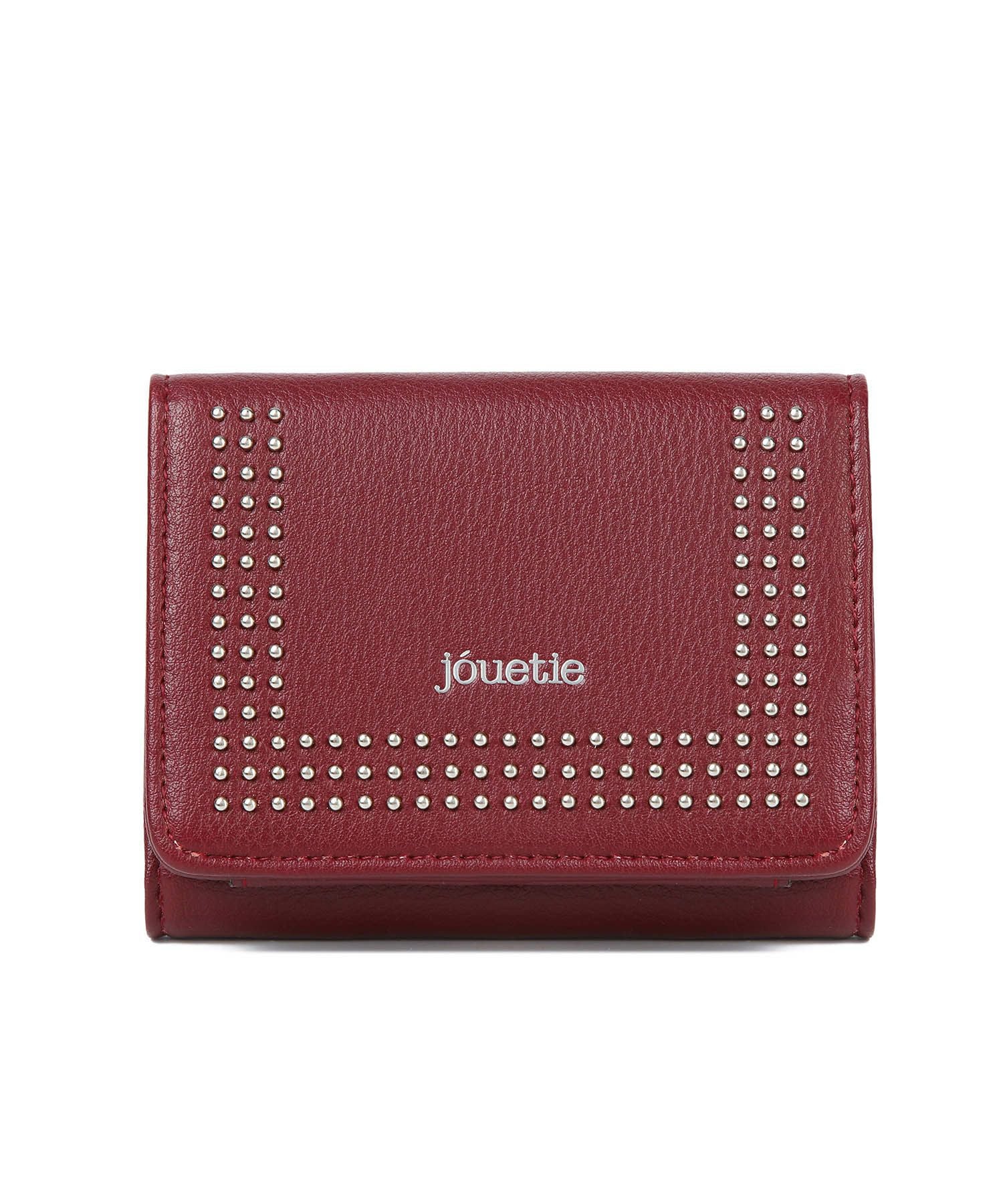 シンプルをベースにjouetieのロゴとマイクロスタッズがアクセントの三つ折りミニ財布です。