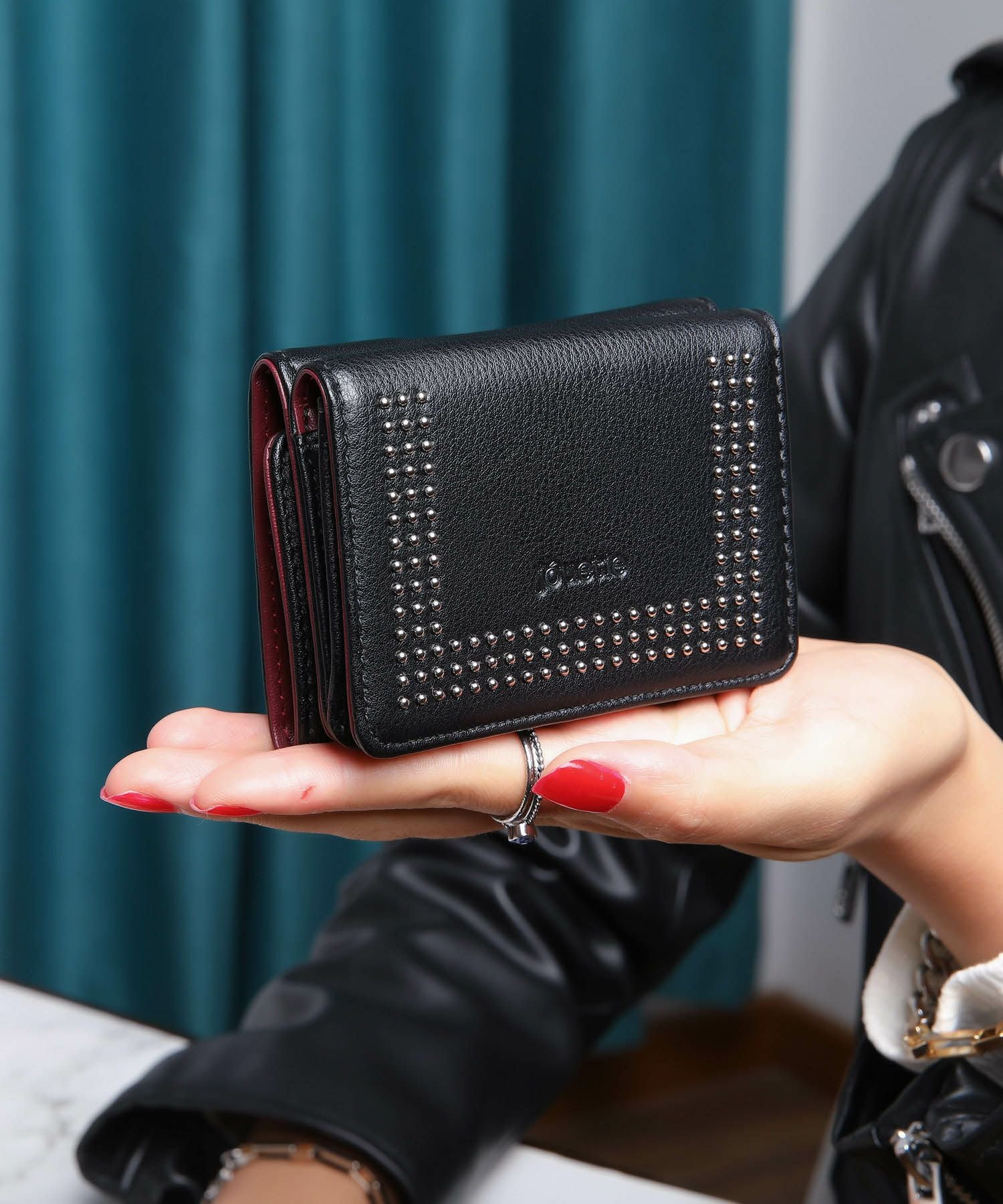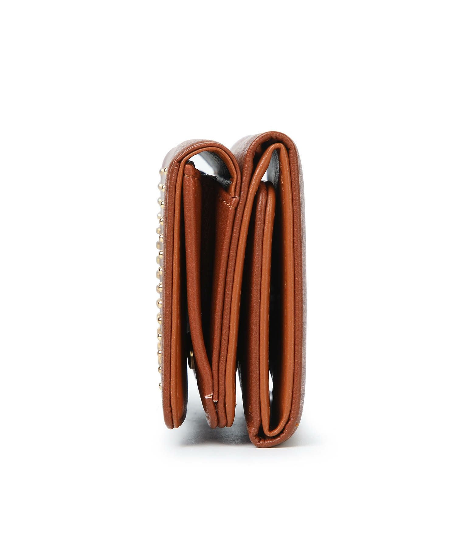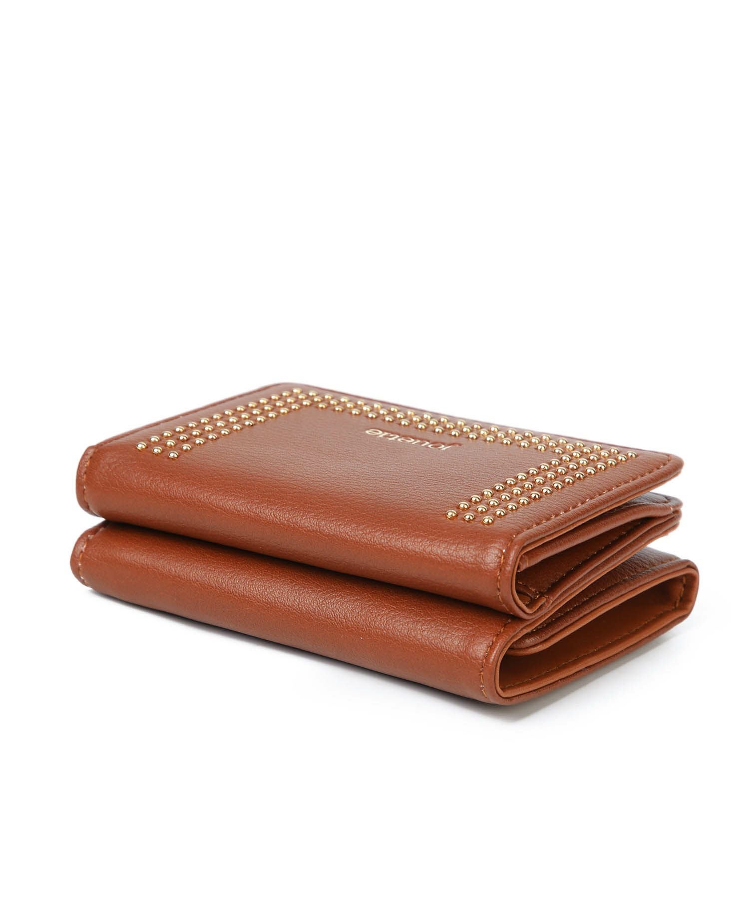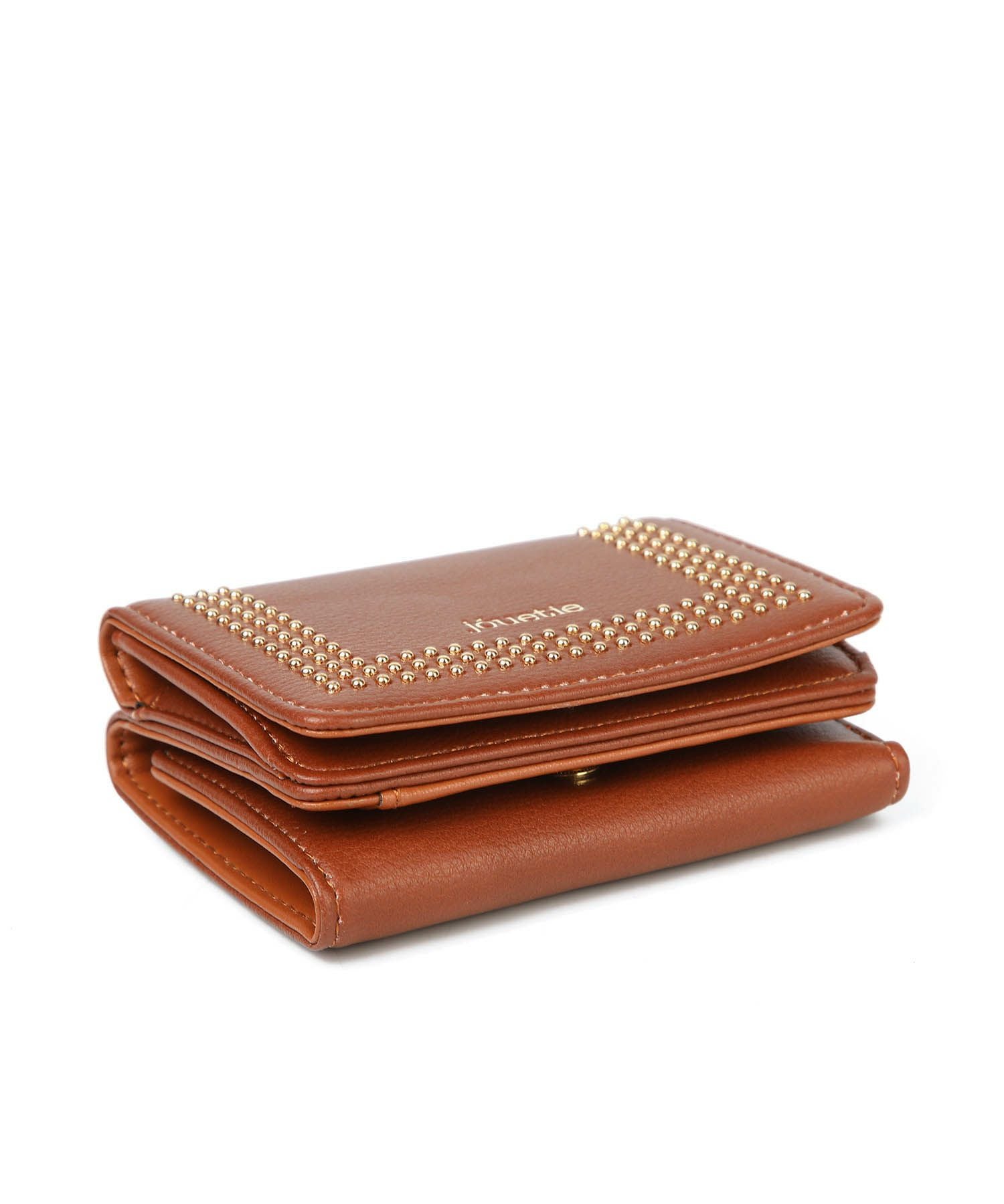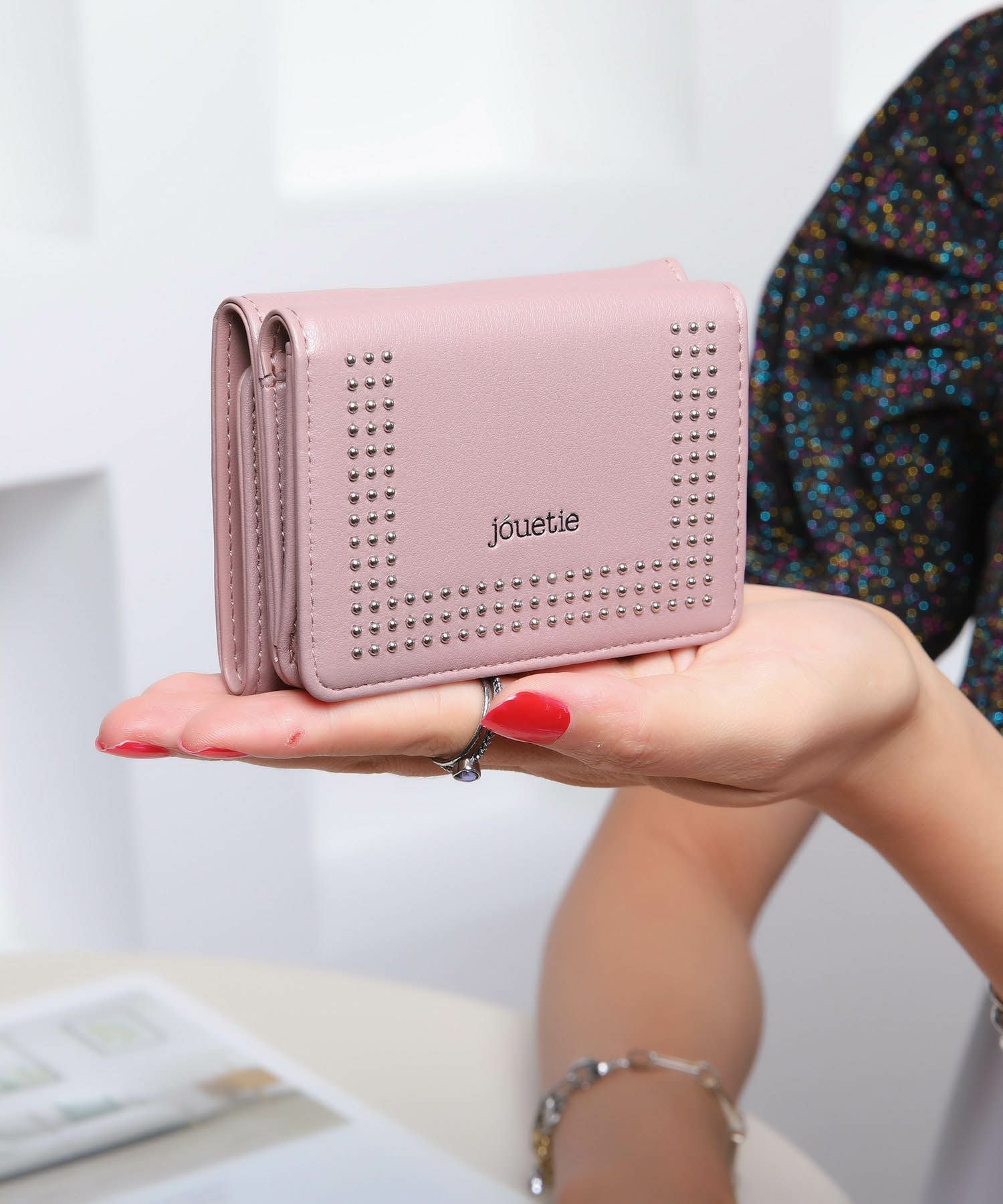 シンプルをベースにjouetieのロゴとマイクロスタッズがアクセントの三つ折りミニ財布です。
