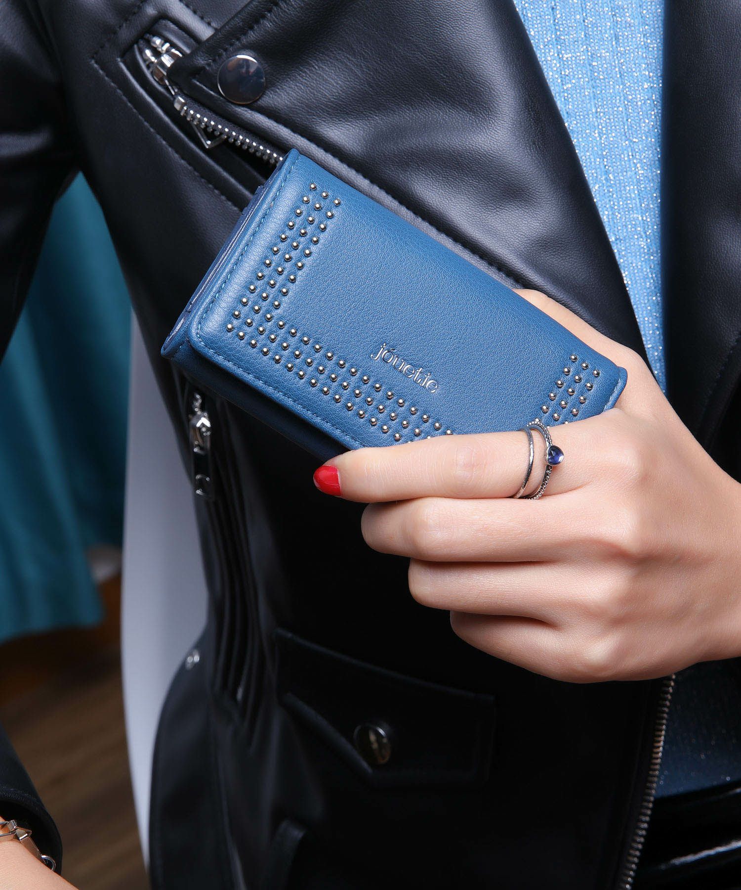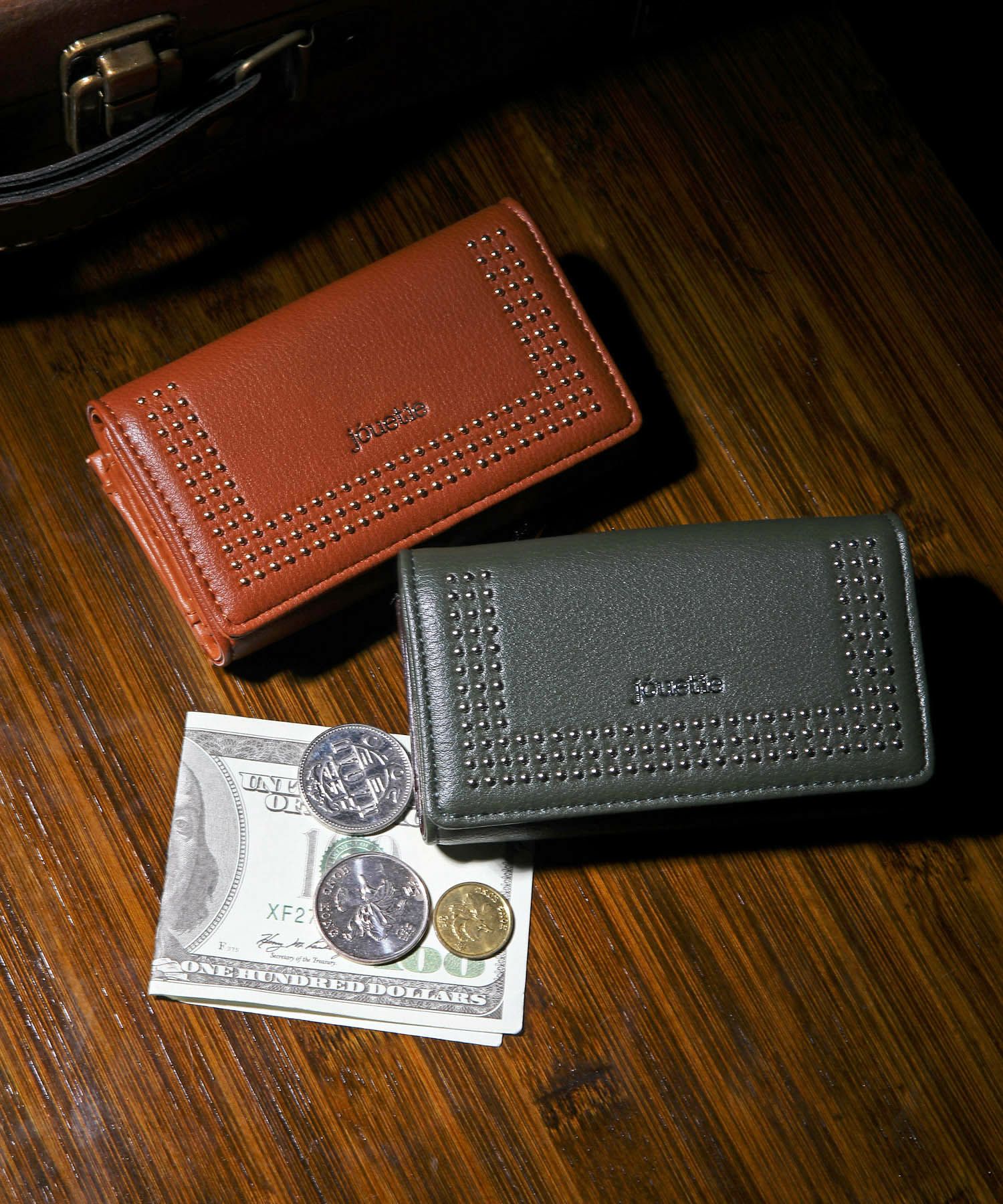 シンプルをベースにjouetieのロゴとマイクロスタッズがアクセントのキーケース。