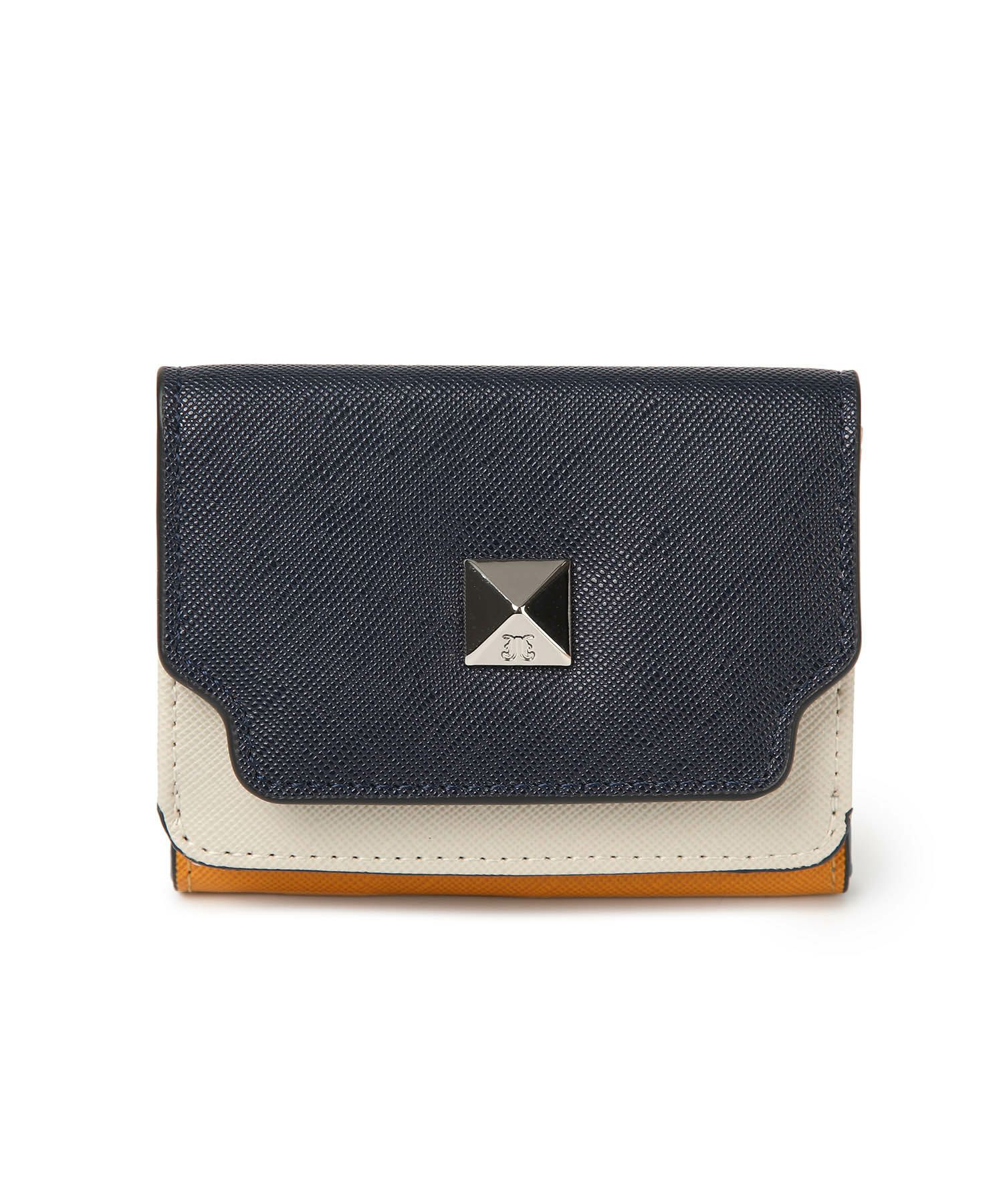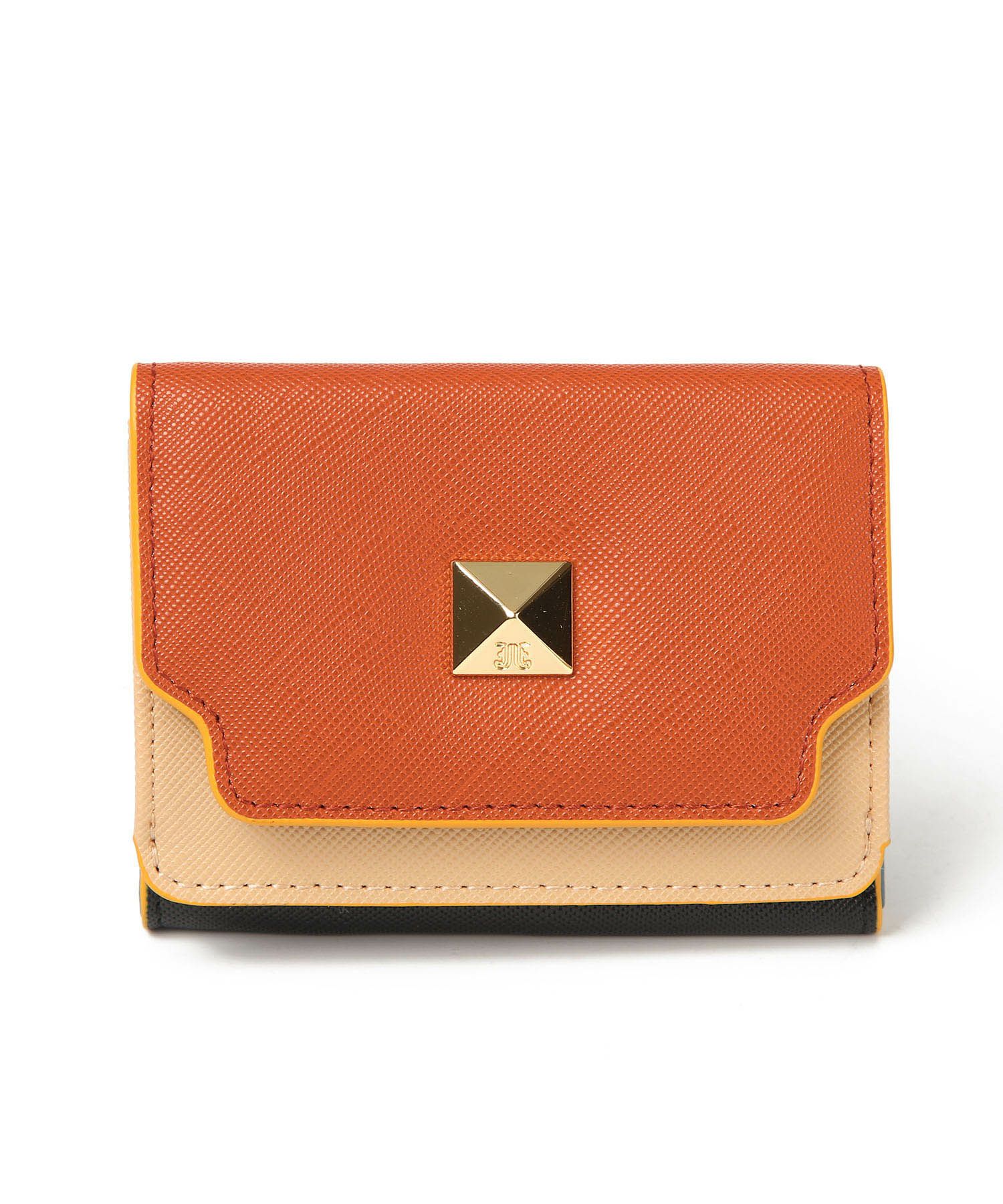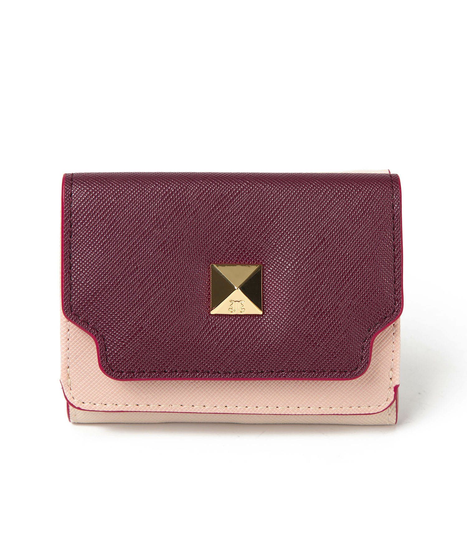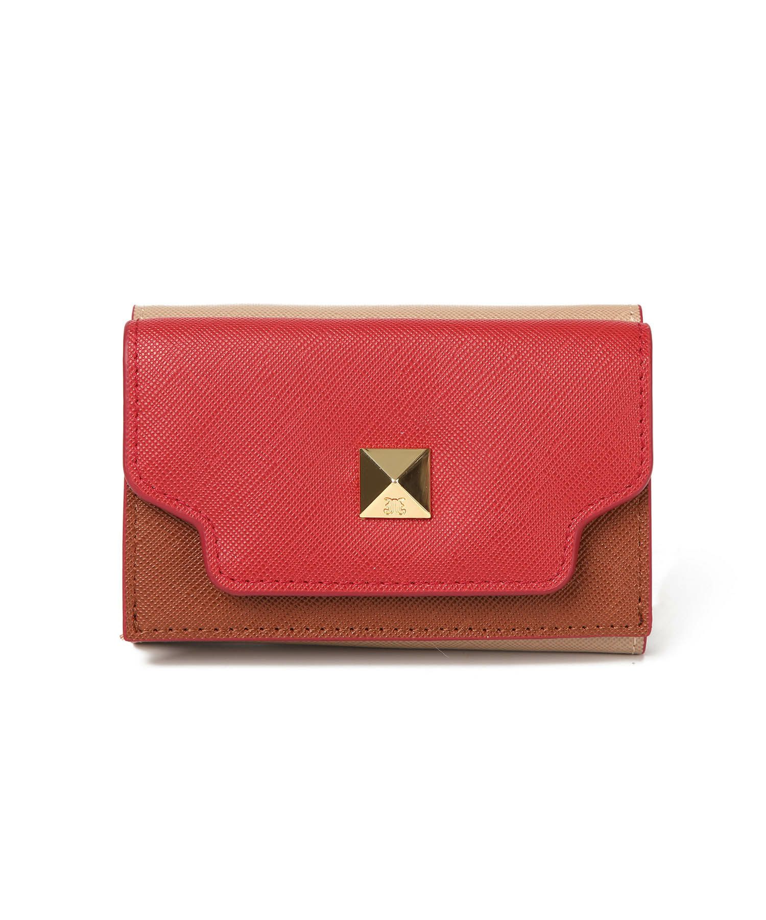 配色を入れ、エッジを効かせたデザインにピラミッドスタッズがアクセントのキーケース付き財布。