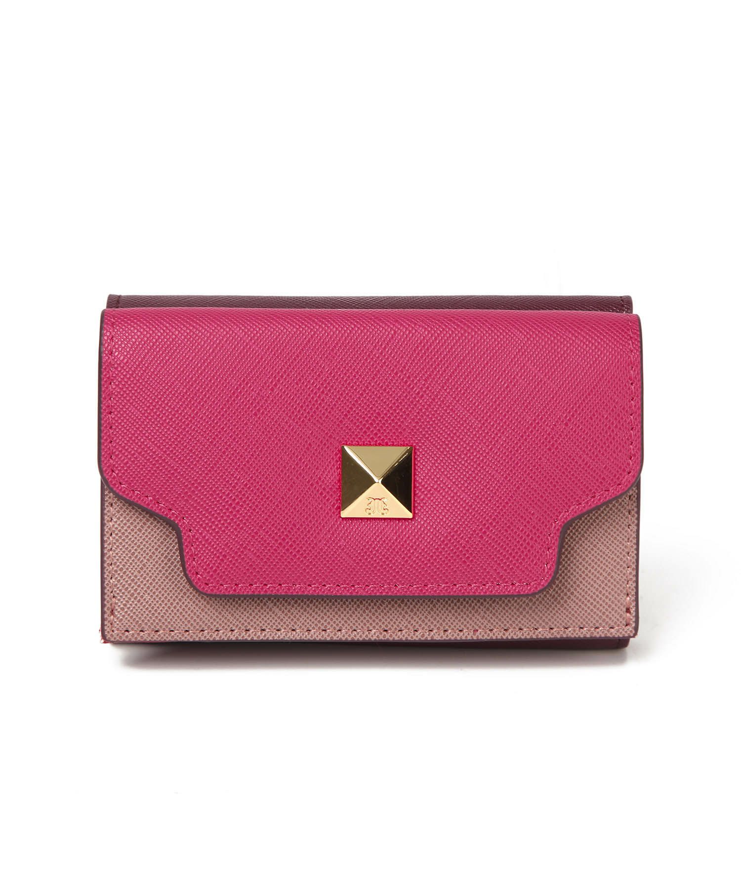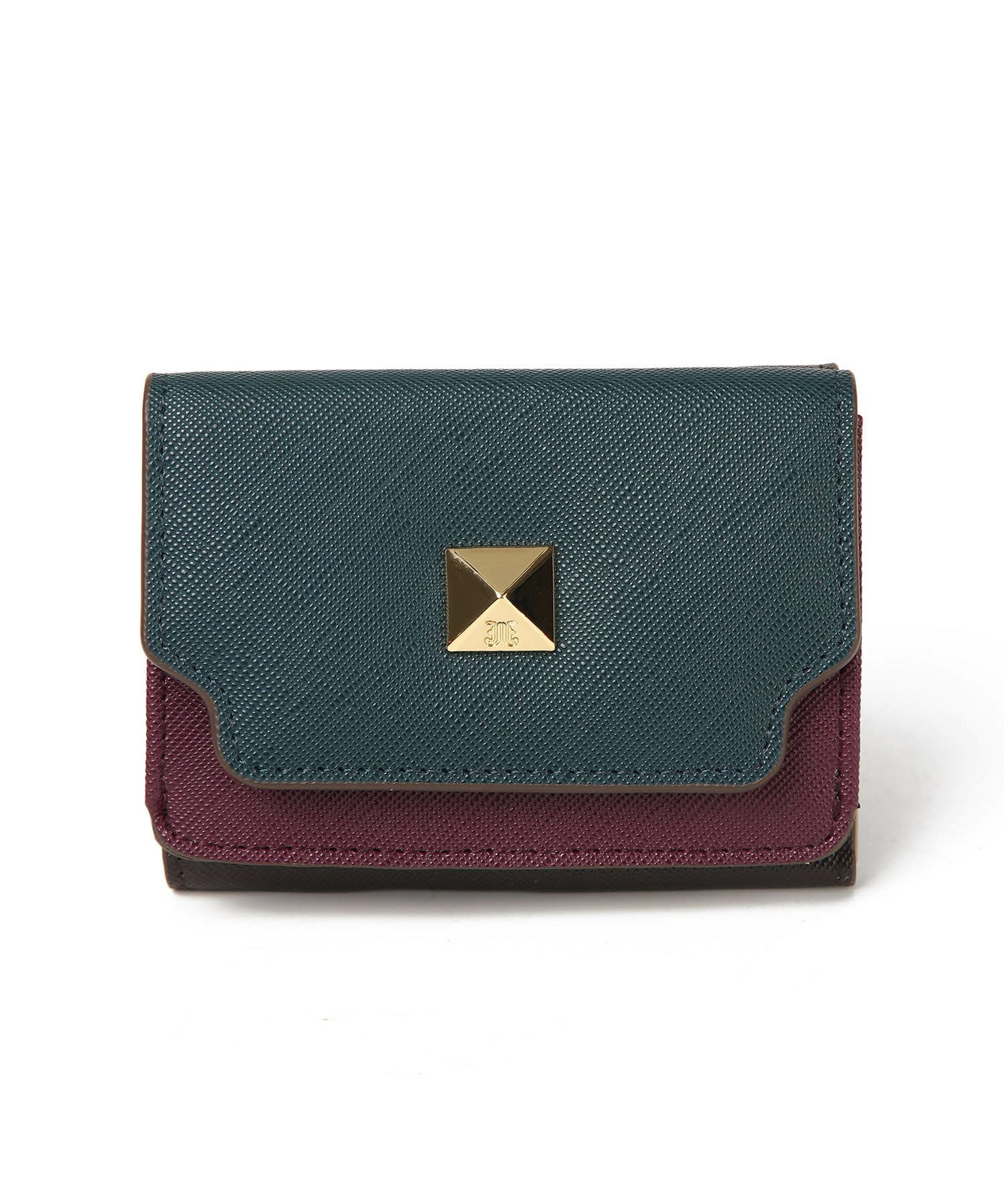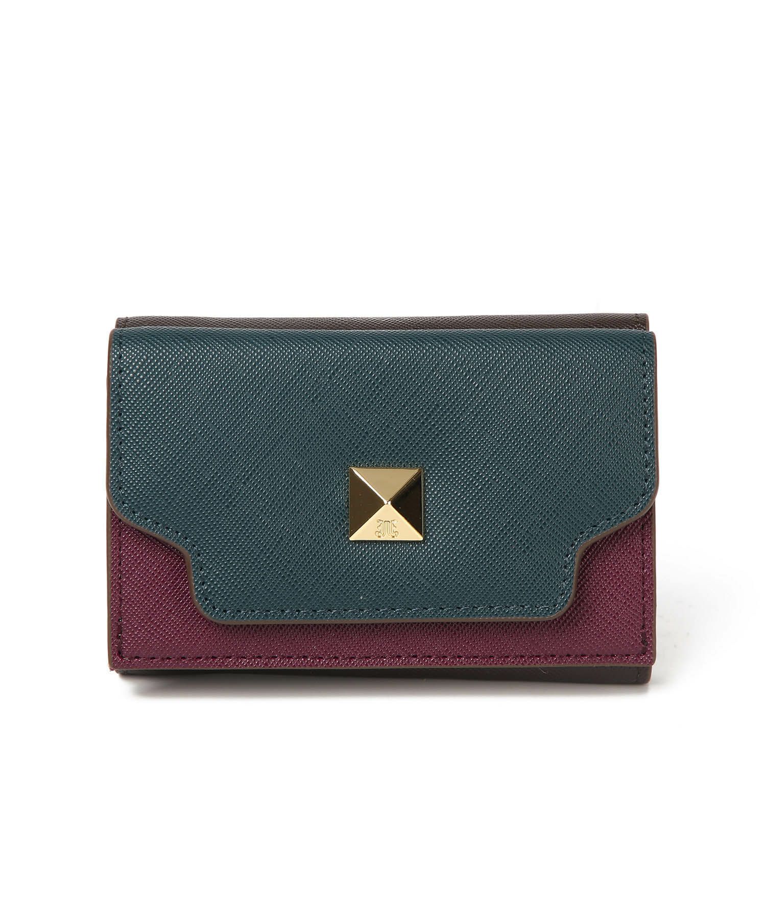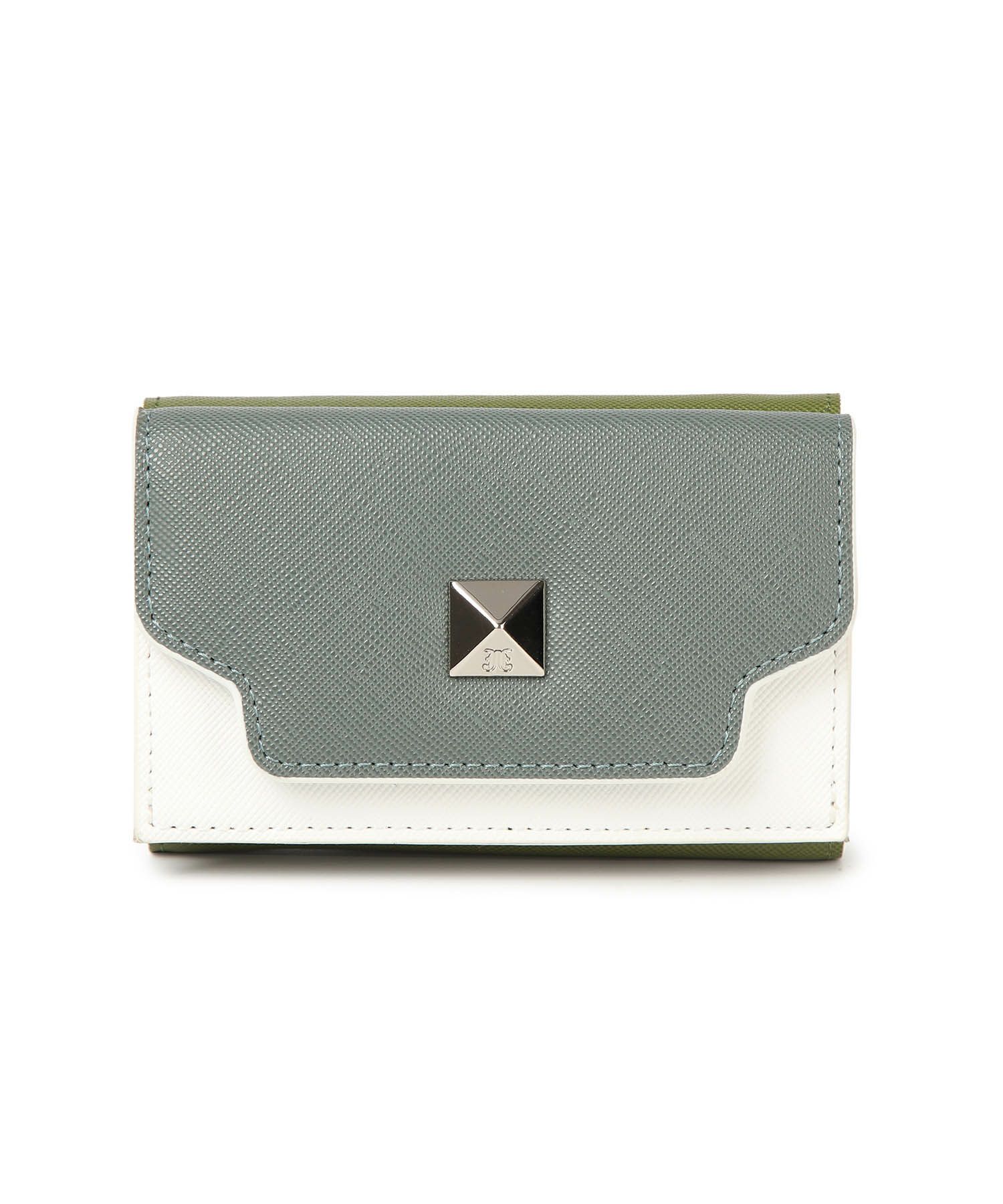 配色を入れ、エッジを効かせたデザインにピラミッドスタッズがアクセントのキーケース付き財布。