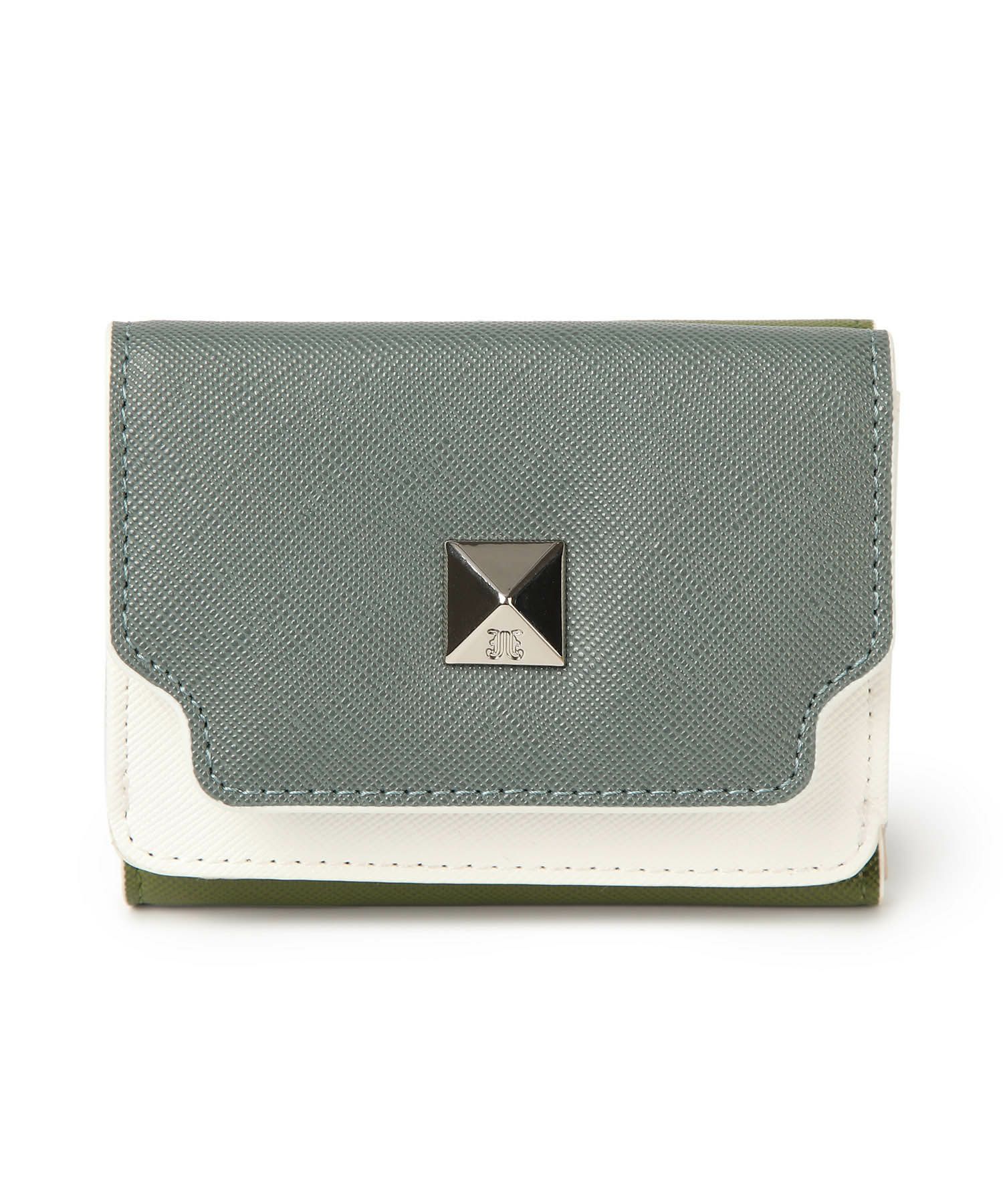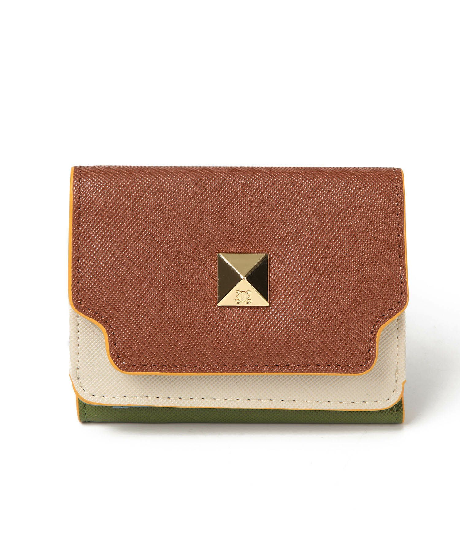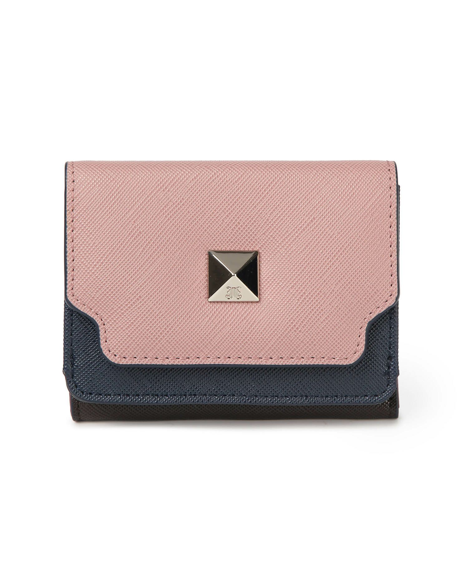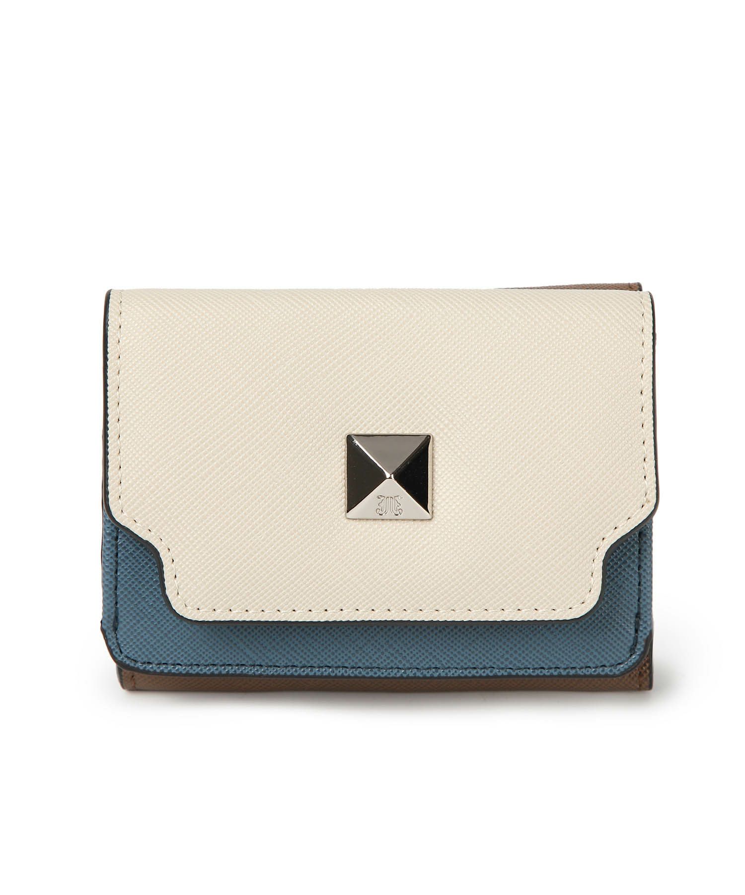 配色を入れ、エッジを効かせたデザインにピラミッドスタッズがアクセントのキーケース付き財布。