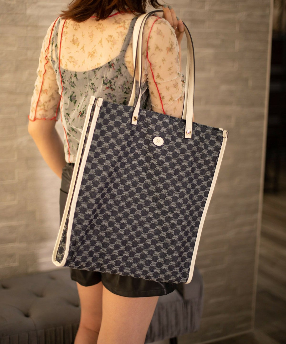 JJモノグラム織り レトロ クラシックラージトートバッグ