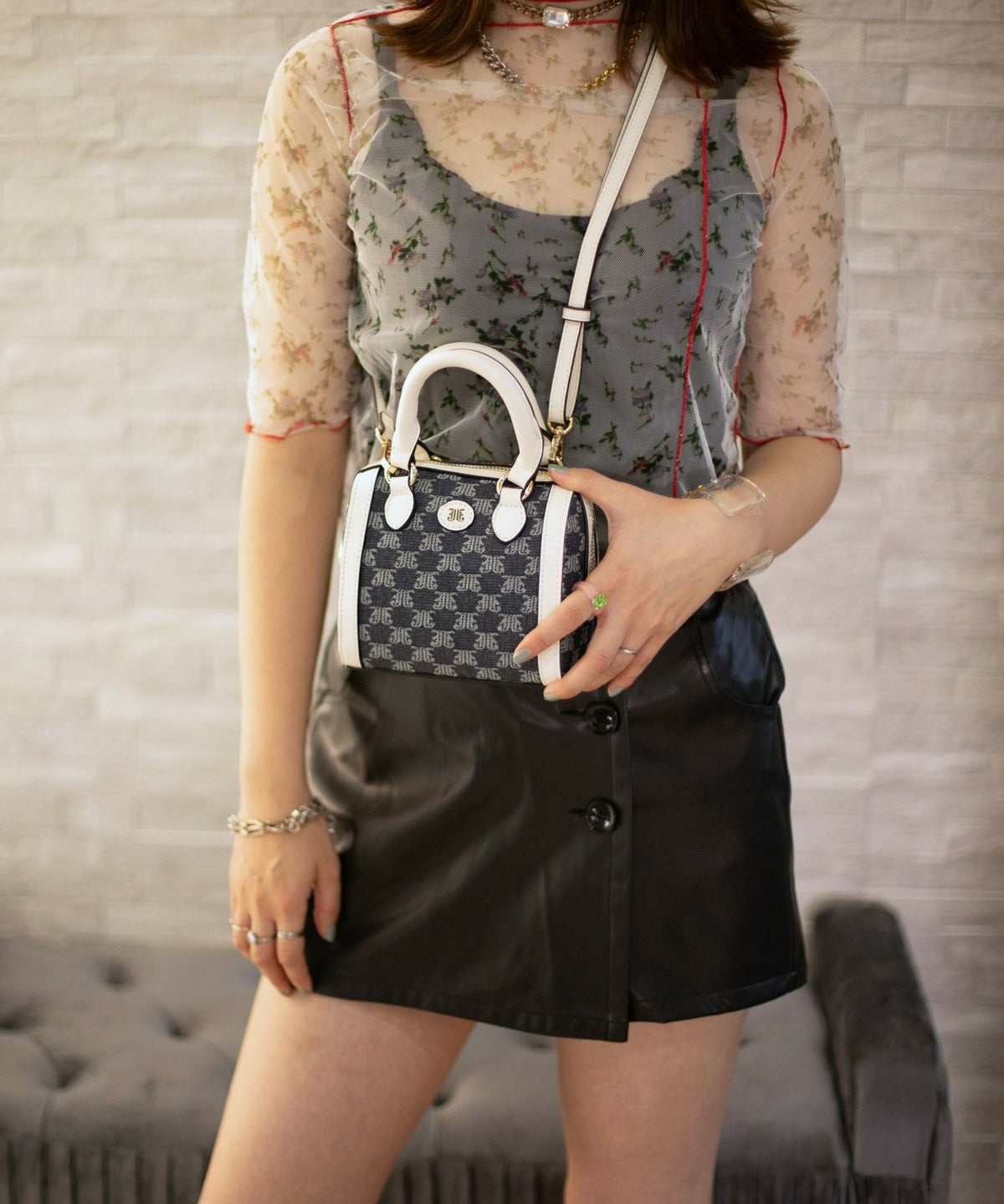 JJモノグラムジャガード マイクロ ミニボストンバッグ