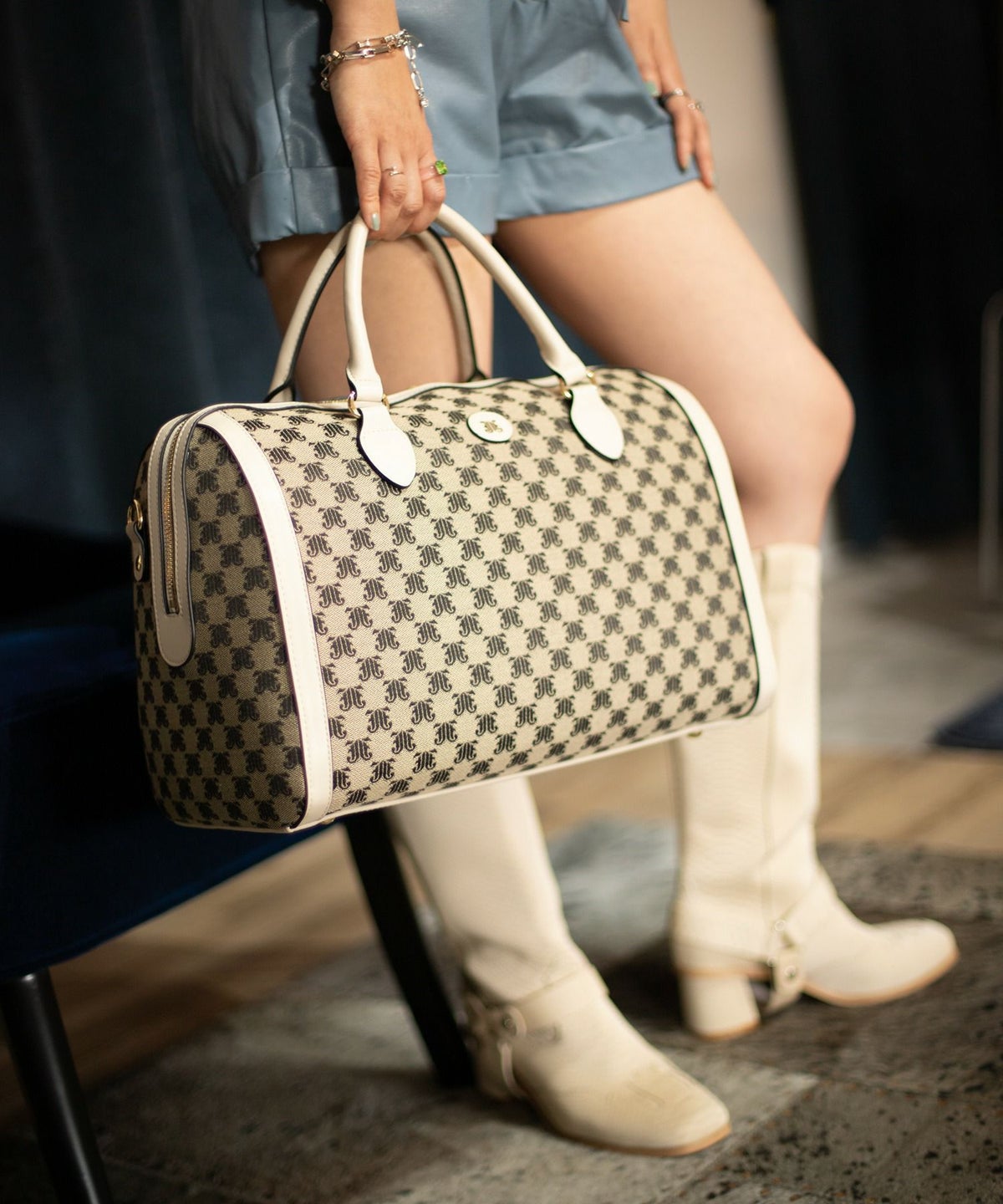 JJモノグラムジャガード ミディアムボストンバッグ