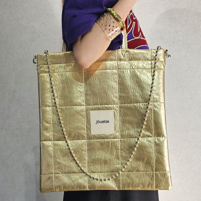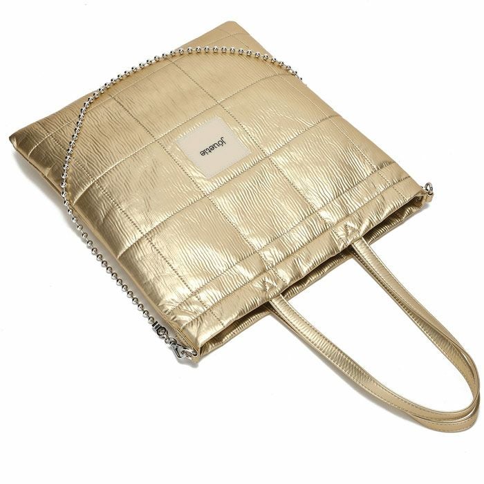 メタリックPUキルティング ラージトートバッグ