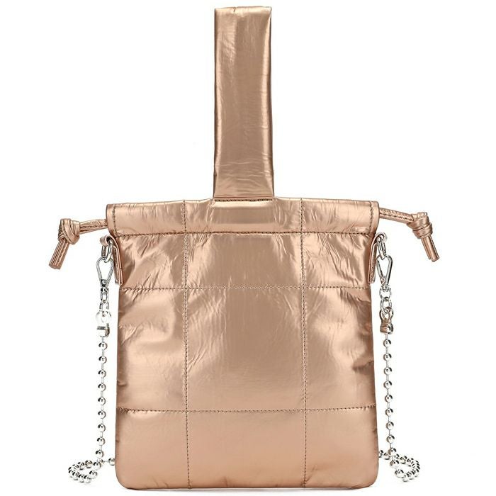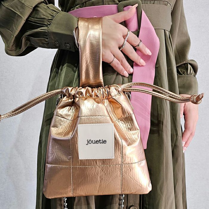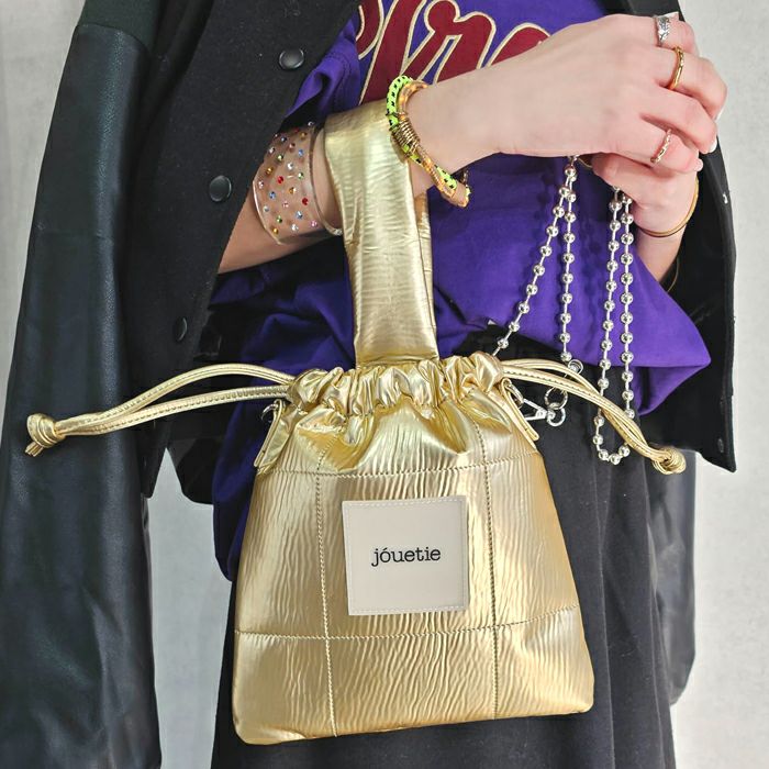 メタリックPUキルティング 巾着ショルダーバッグ