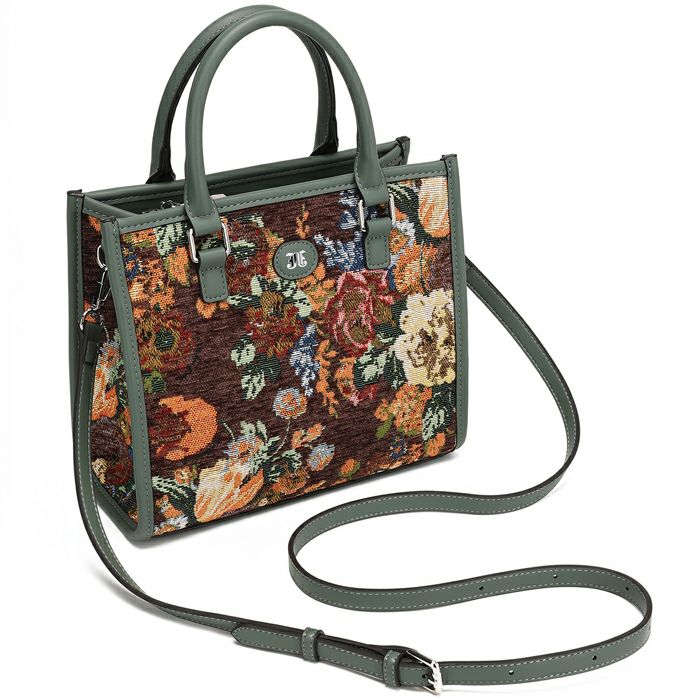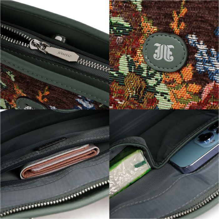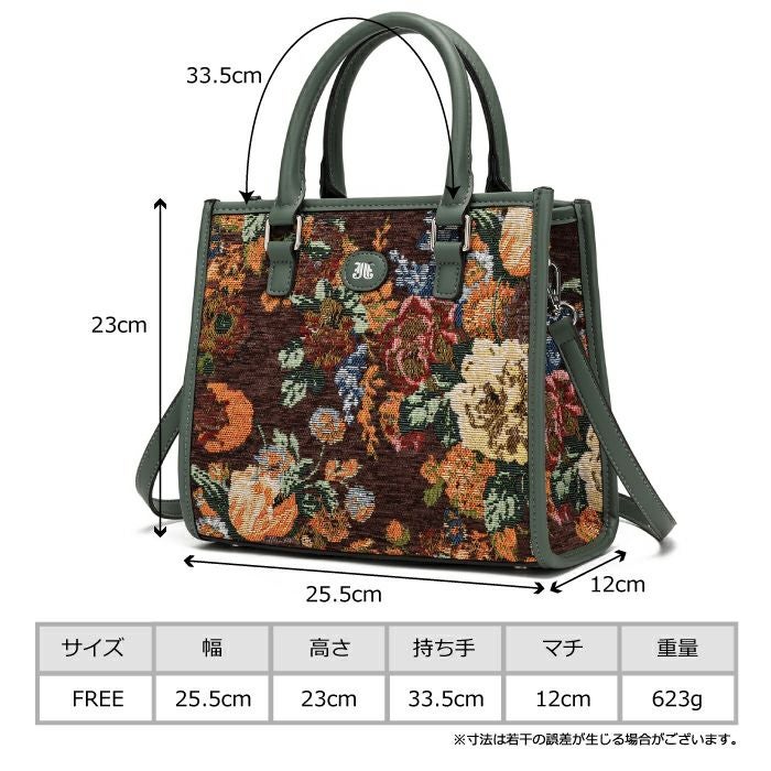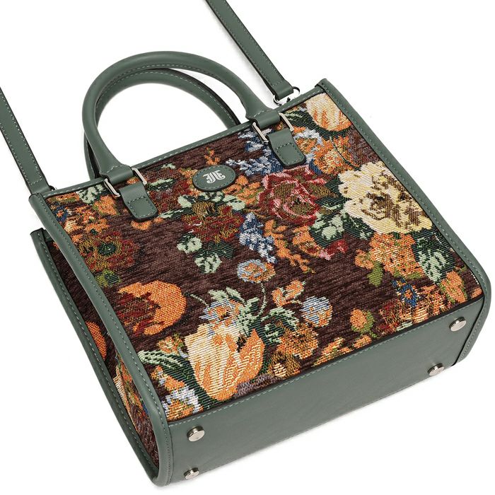 ゴブランフラワー 両アオリポケットスクエアハンドバッグ