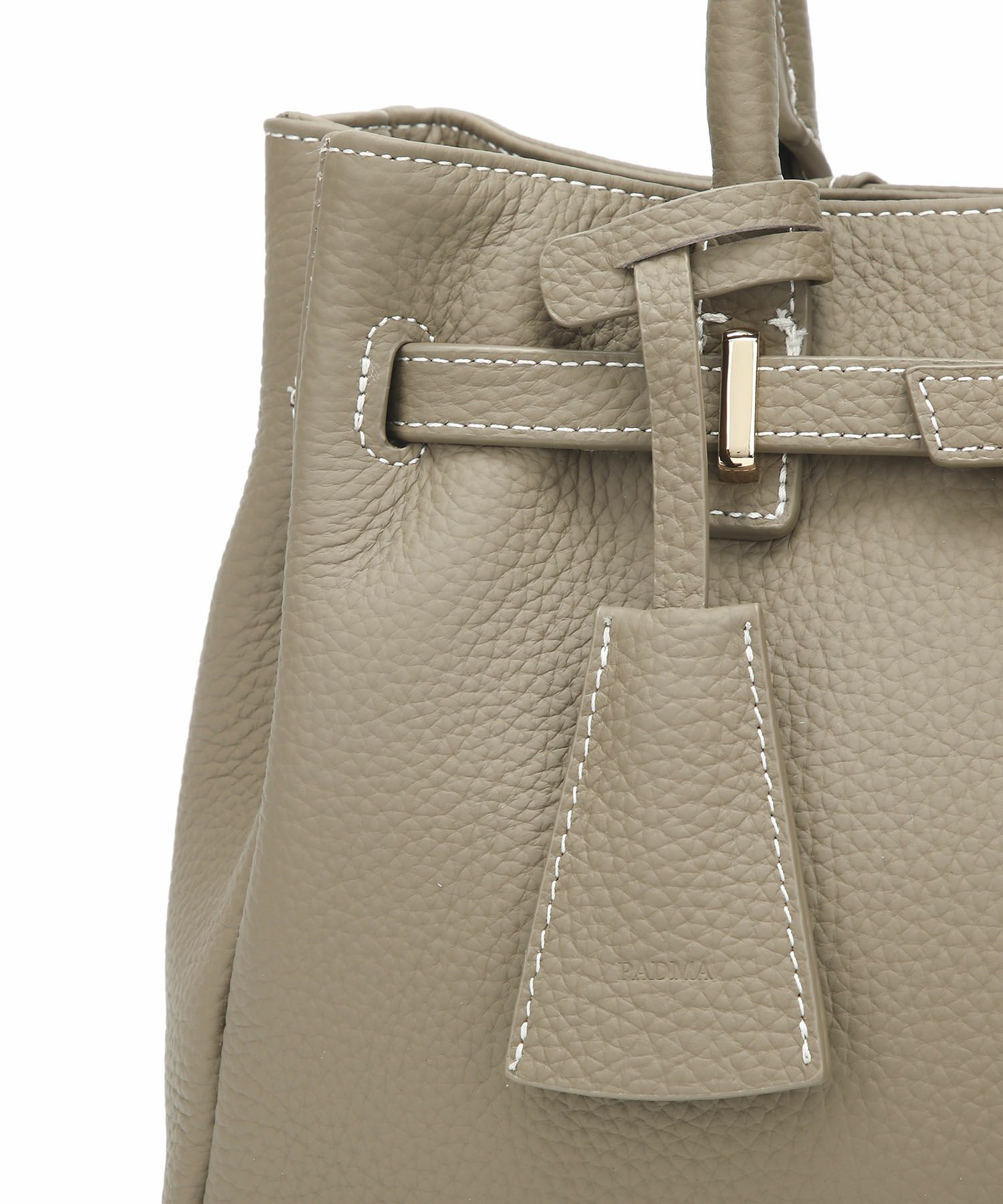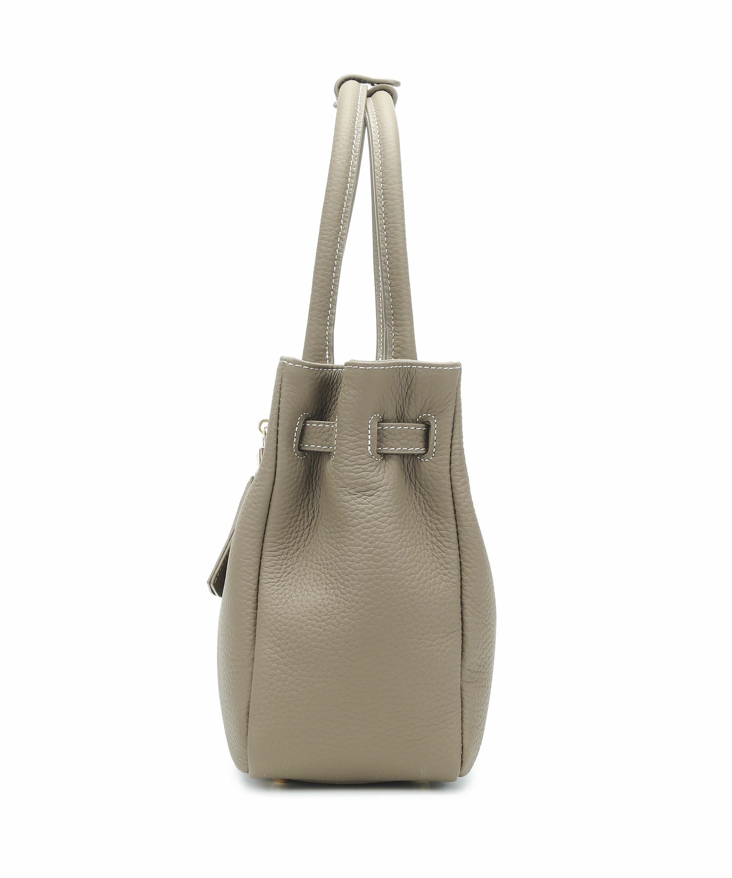 南京錠がアクセントのハンドバッグは上質で柔らかな牛革を使ったバッグはシボの質感が肌なじみよく、高級感を感じさせます。