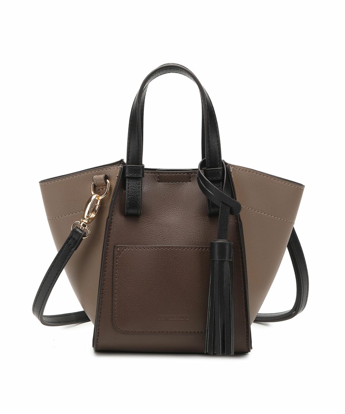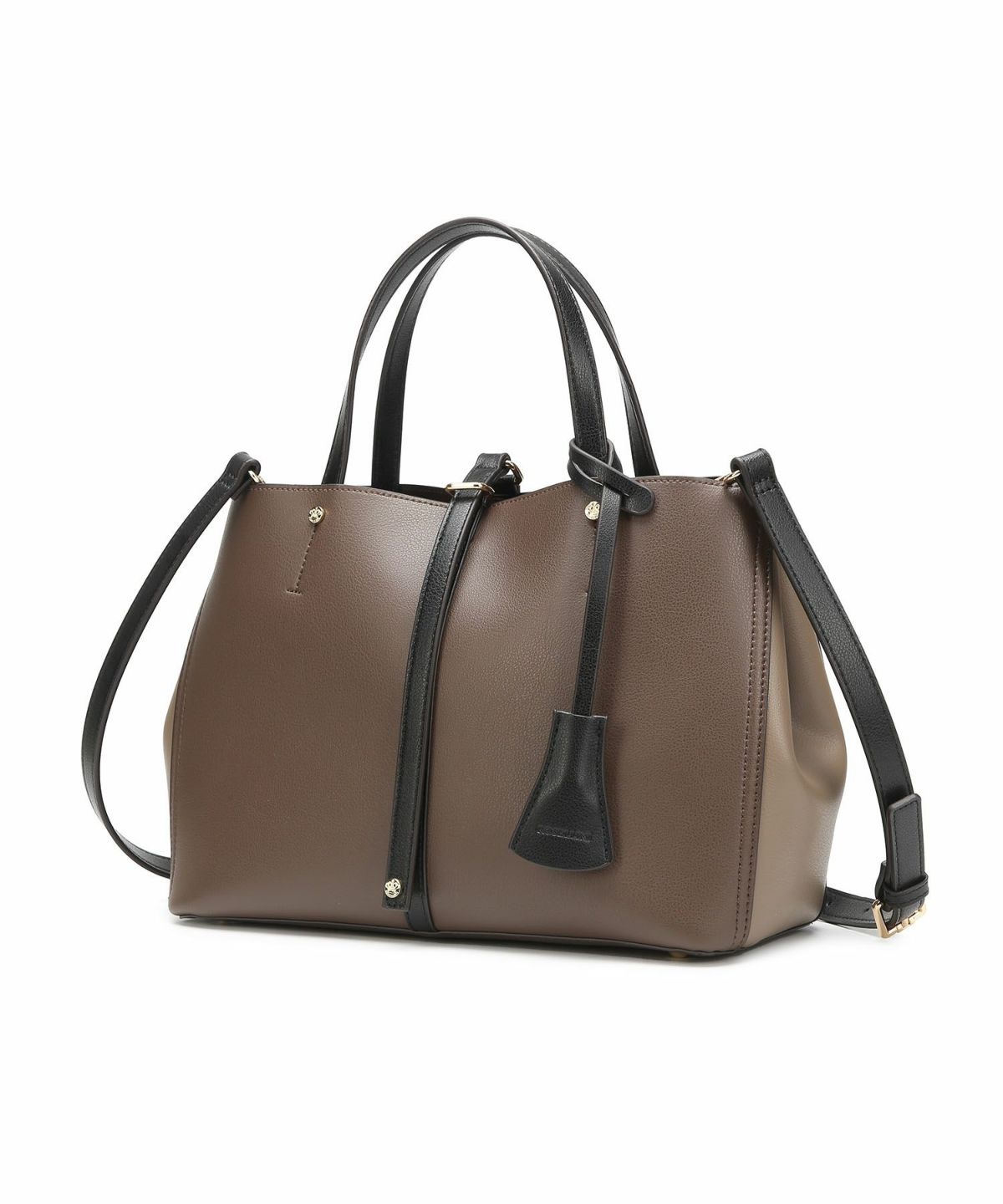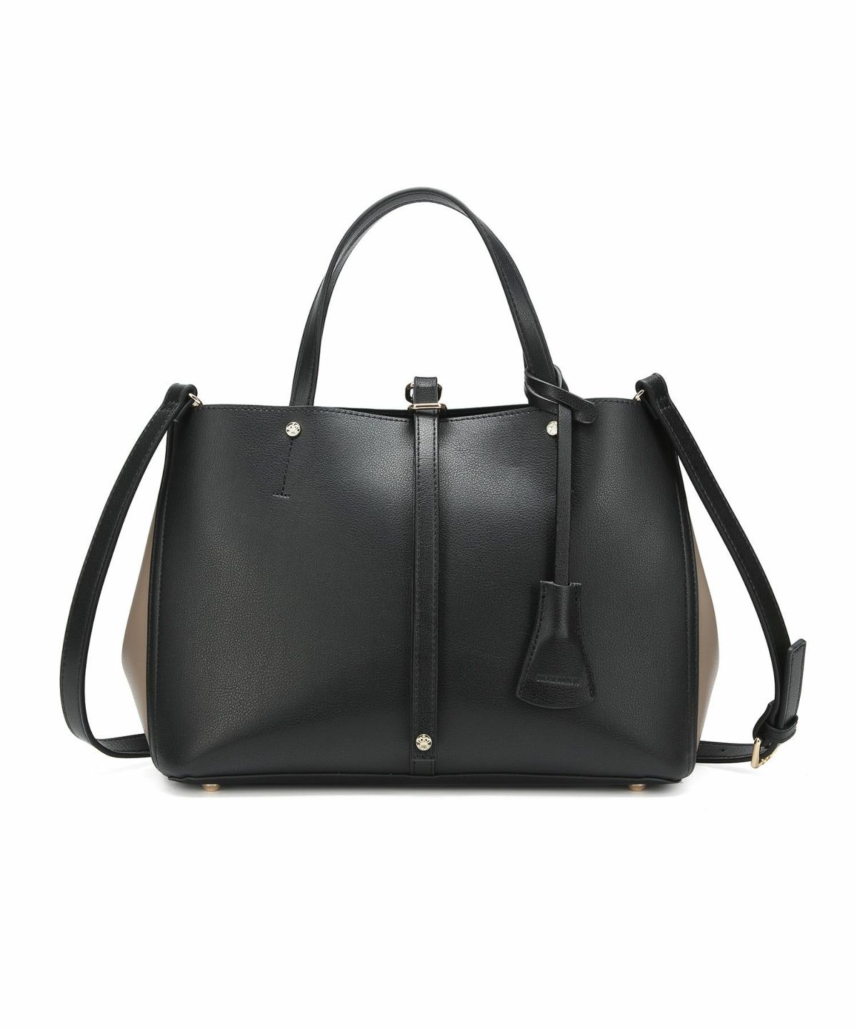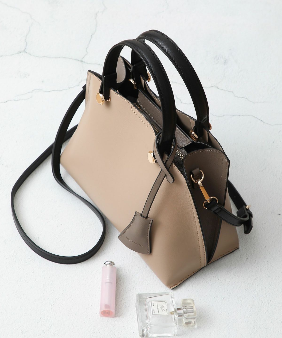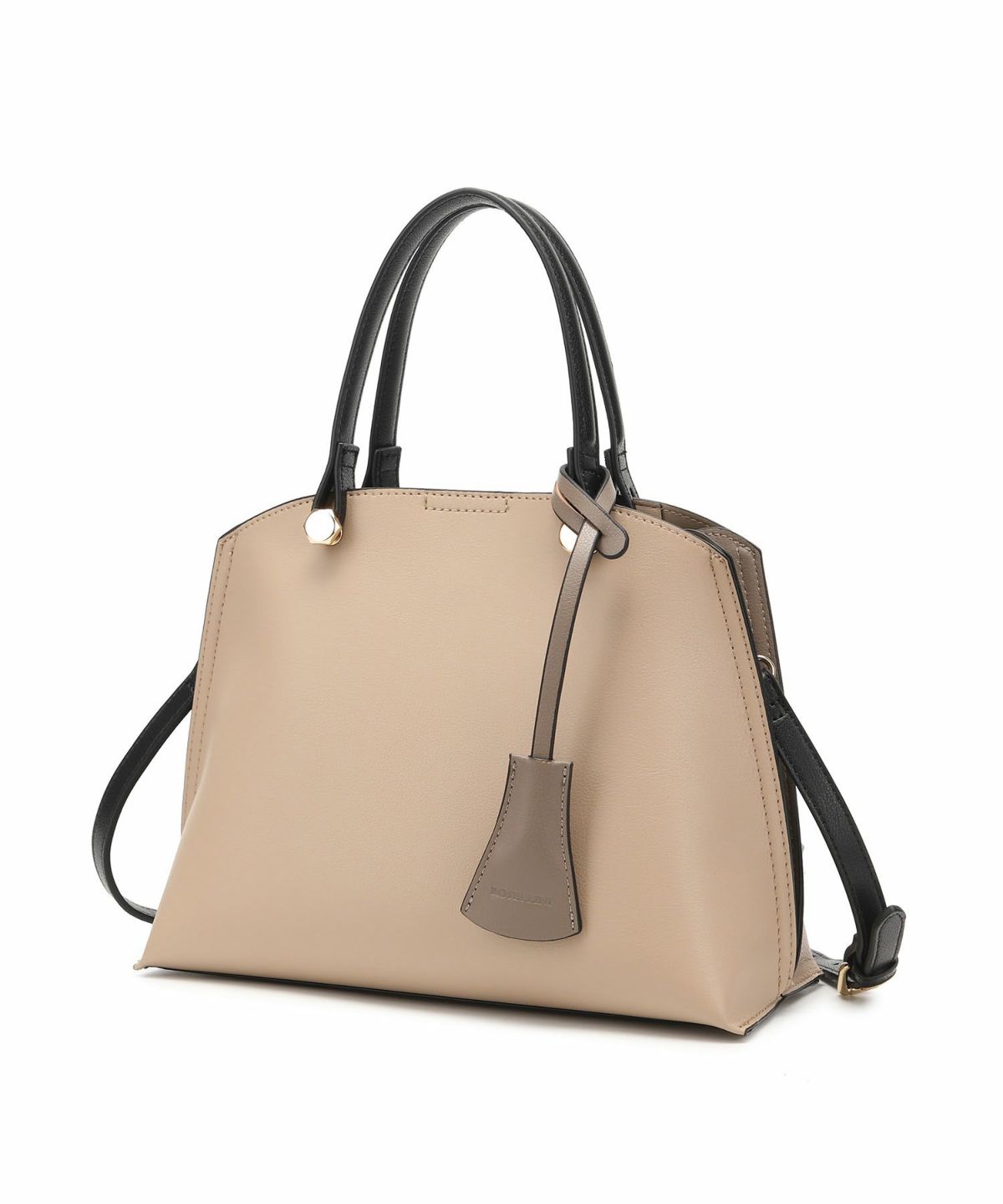キーチャーム付 軽量縦型配色アオリハンドバッグ