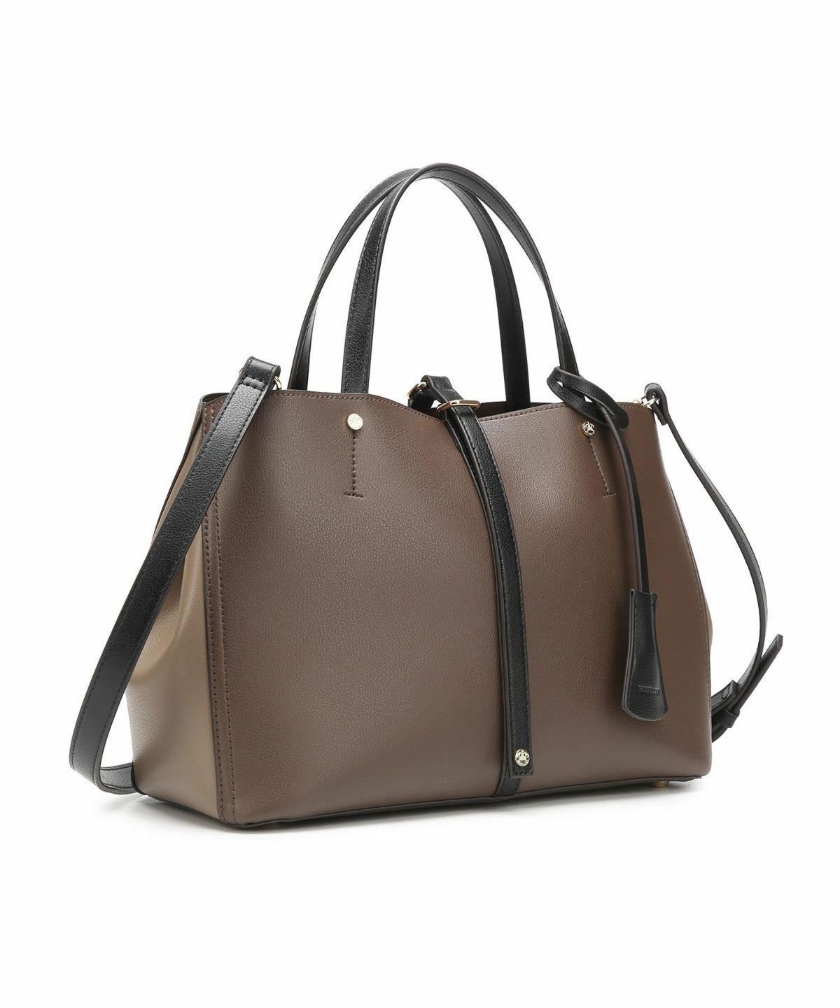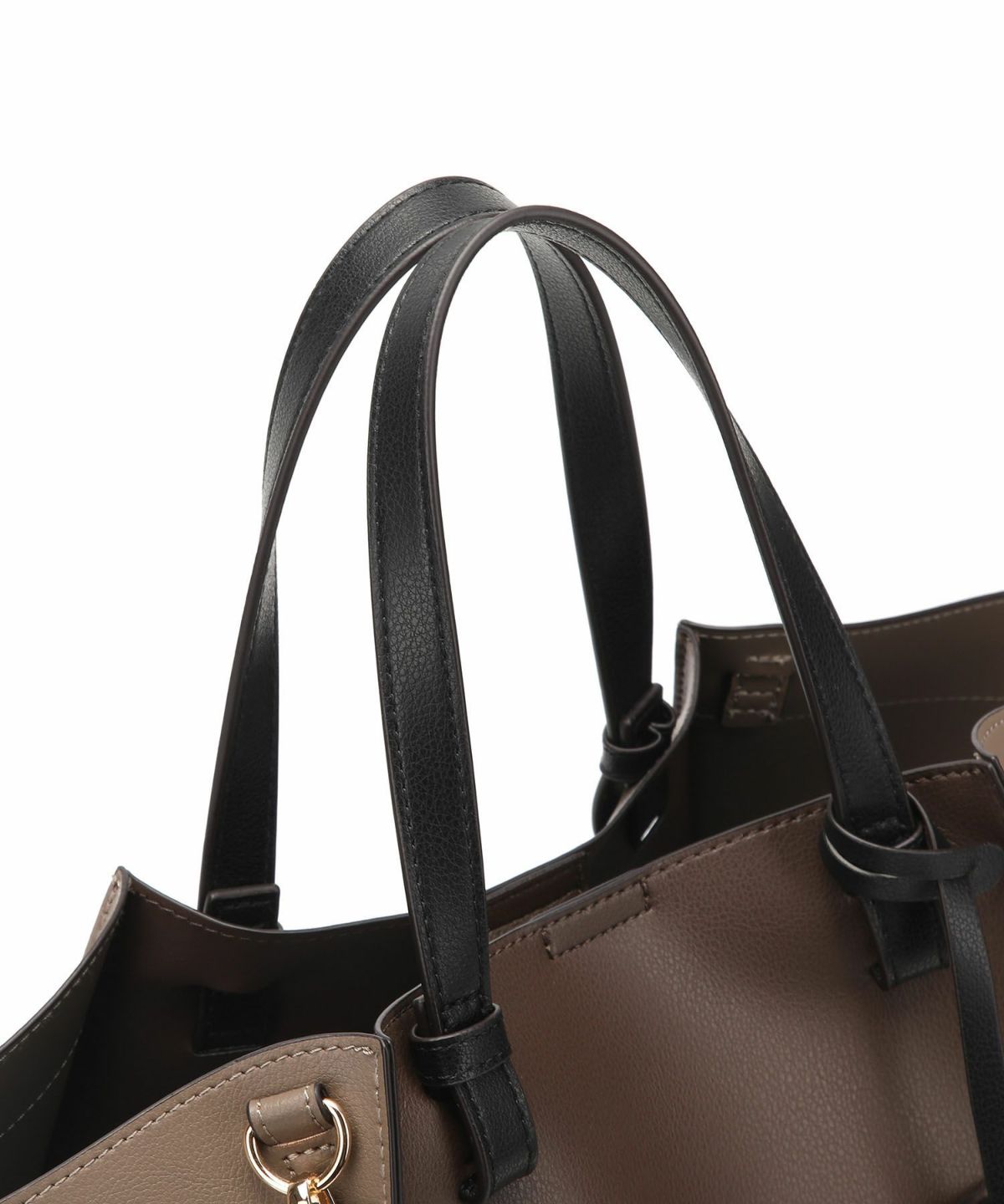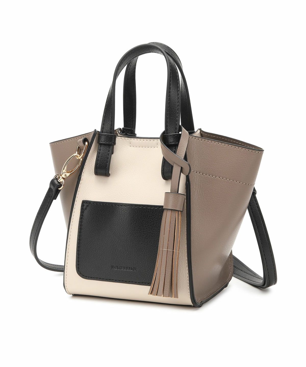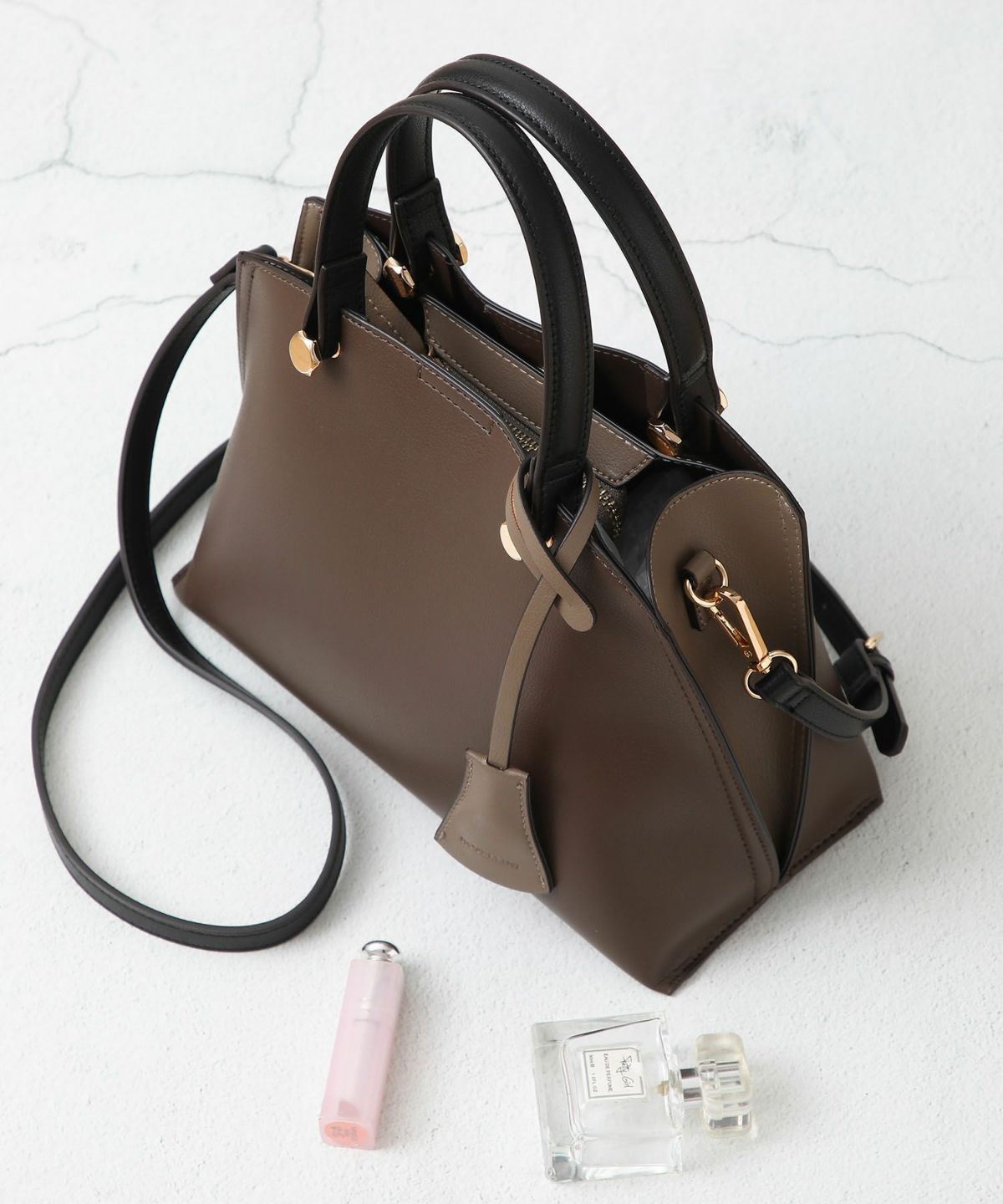 キーチャーム付 軽量縦型配色アオリハンドバッグ