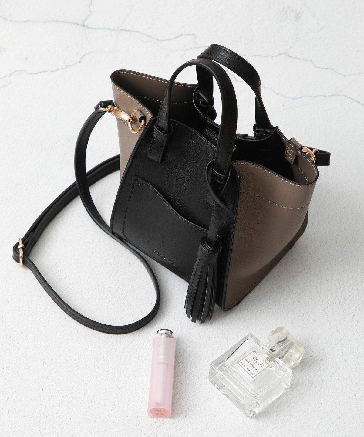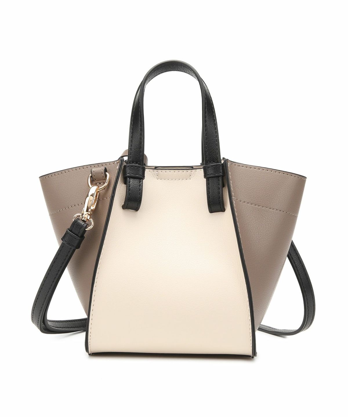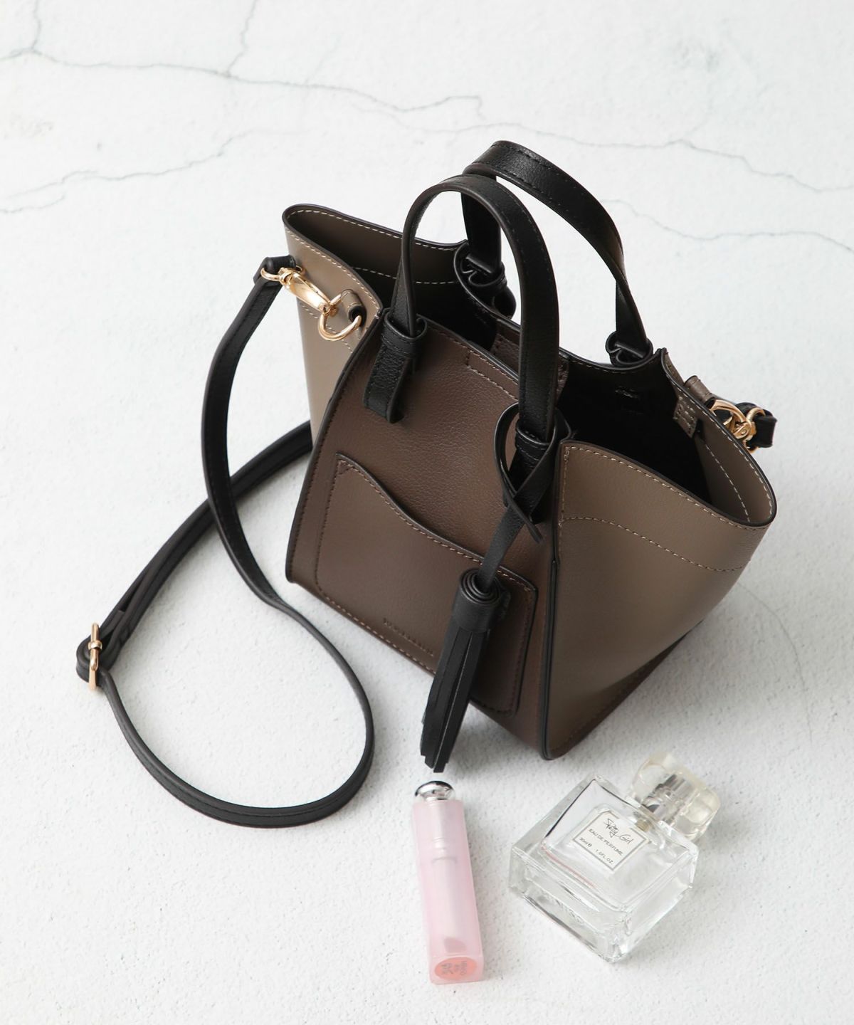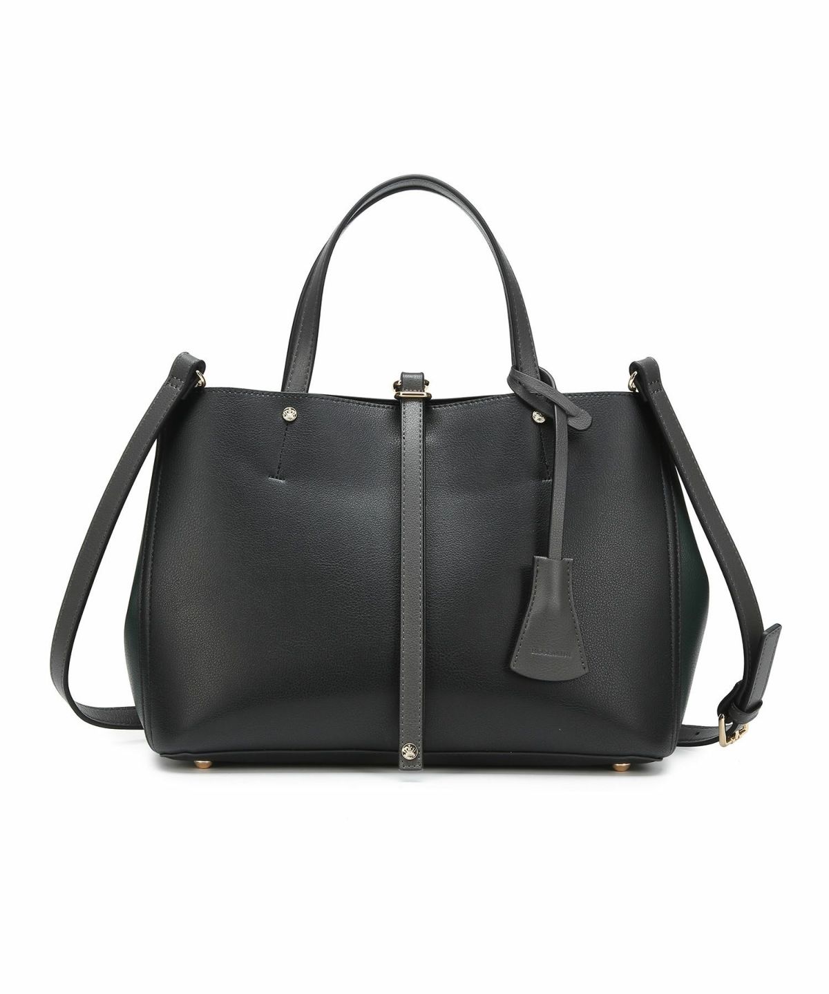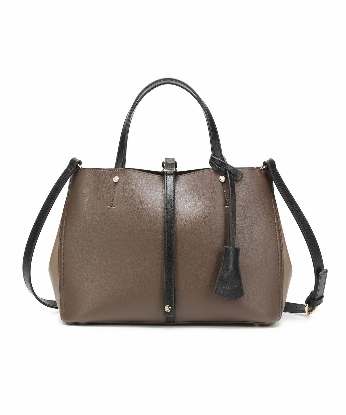 キーチャーム付 軽量縦型配色アオリハンドバッグ
