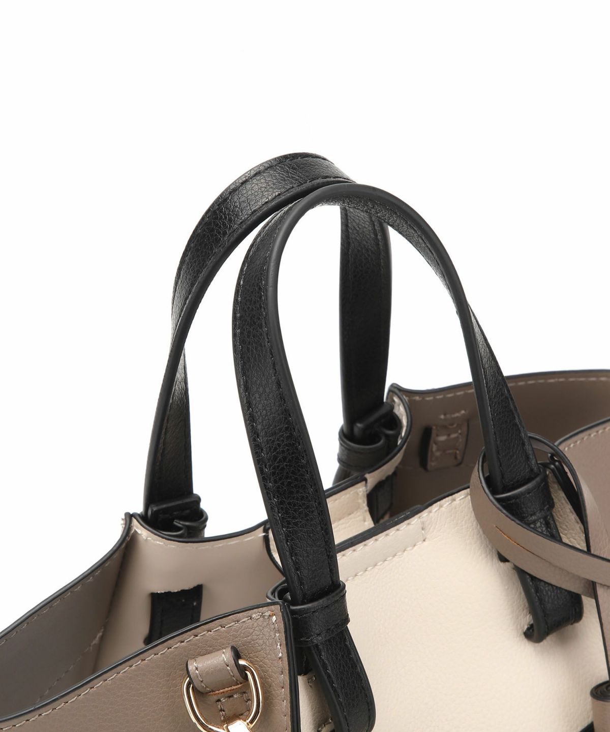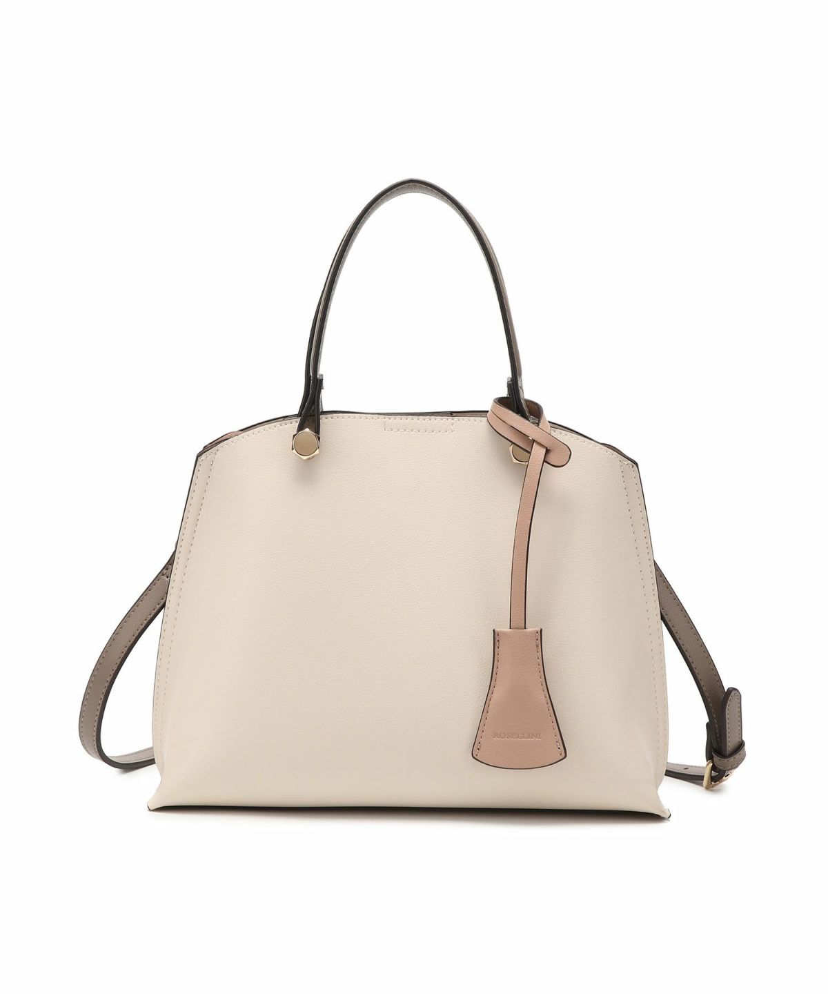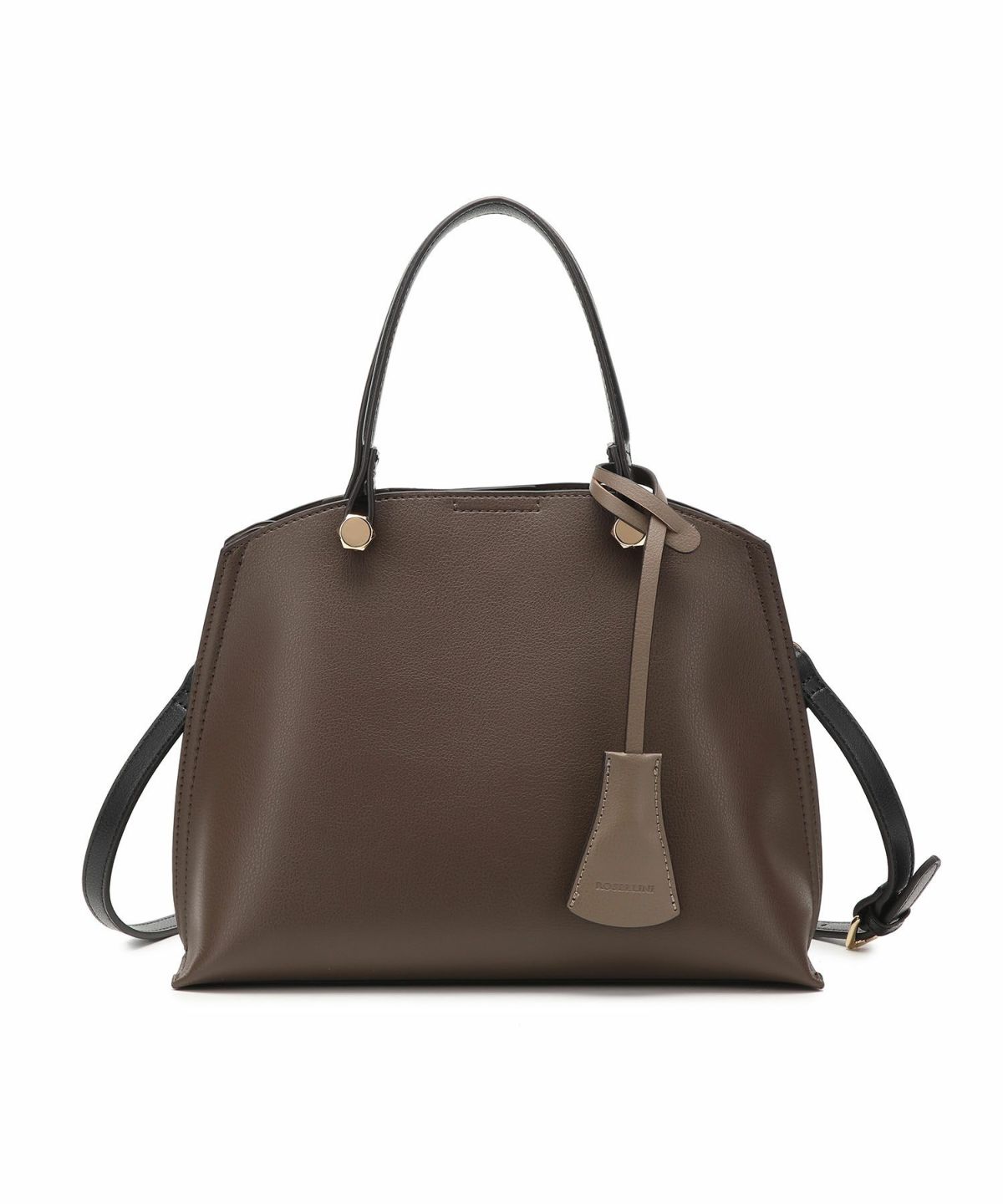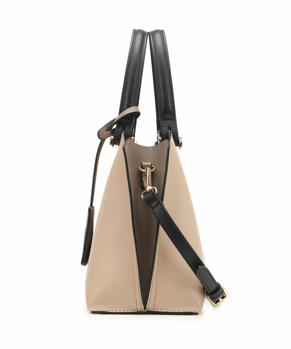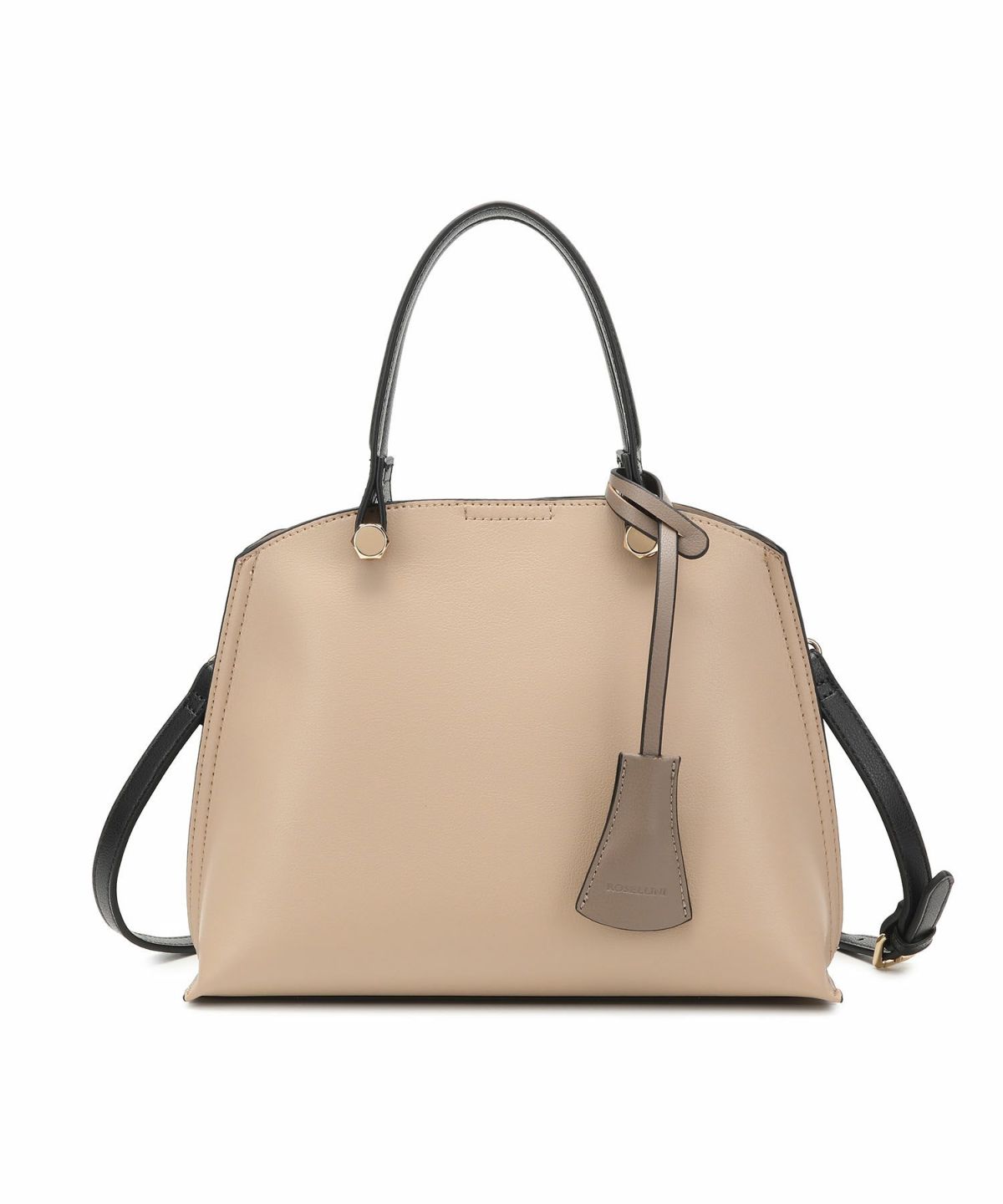 キーチャーム付 軽量縦型配色アオリハンドバッグ