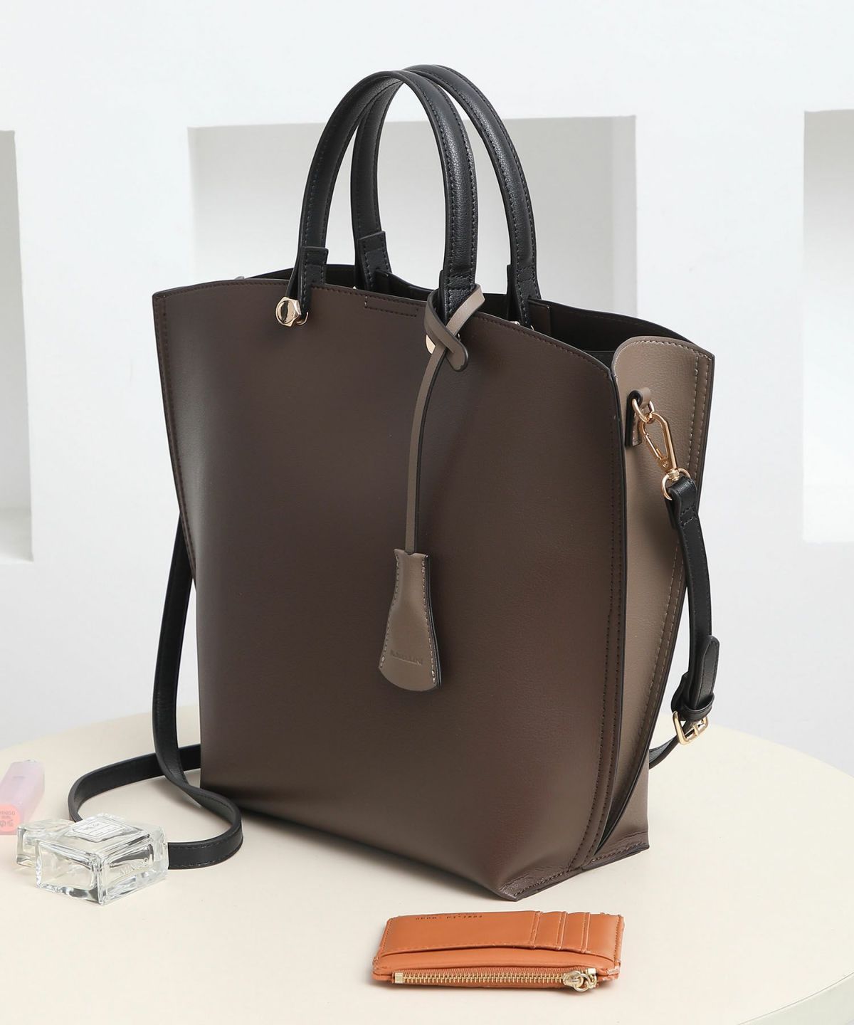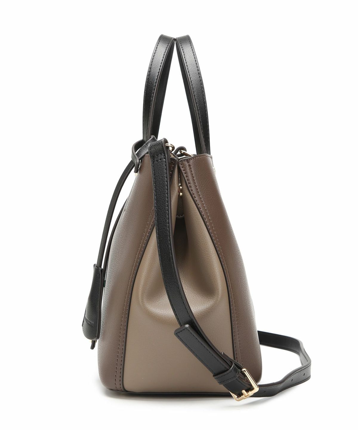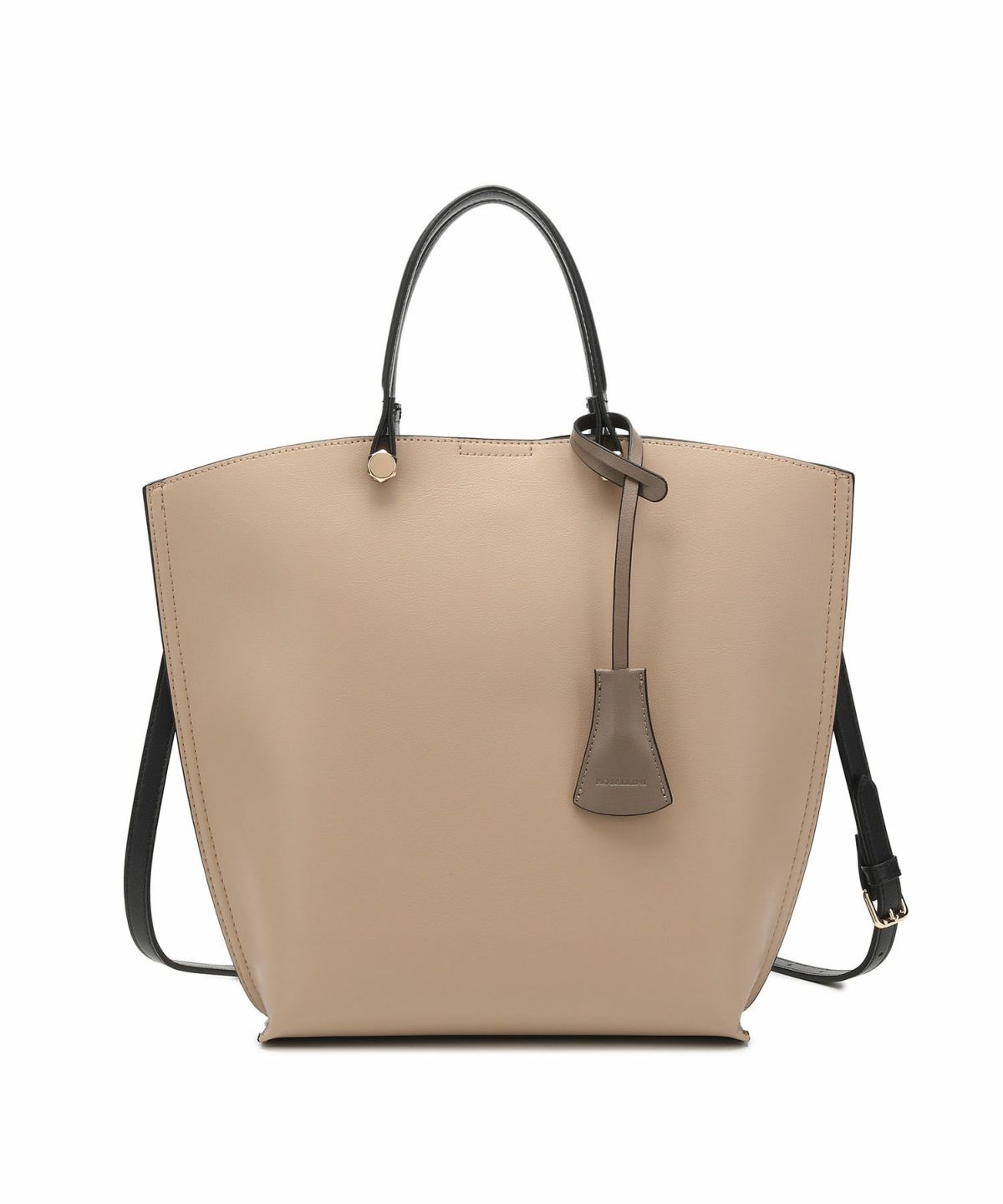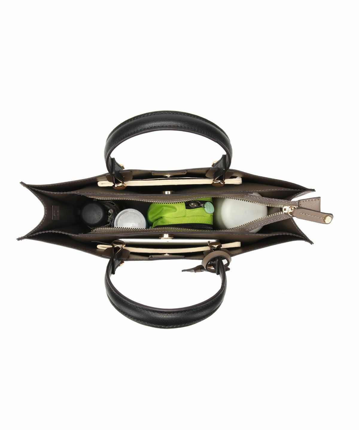 キーチャーム付 軽量縦型配色アオリハンドバッグ