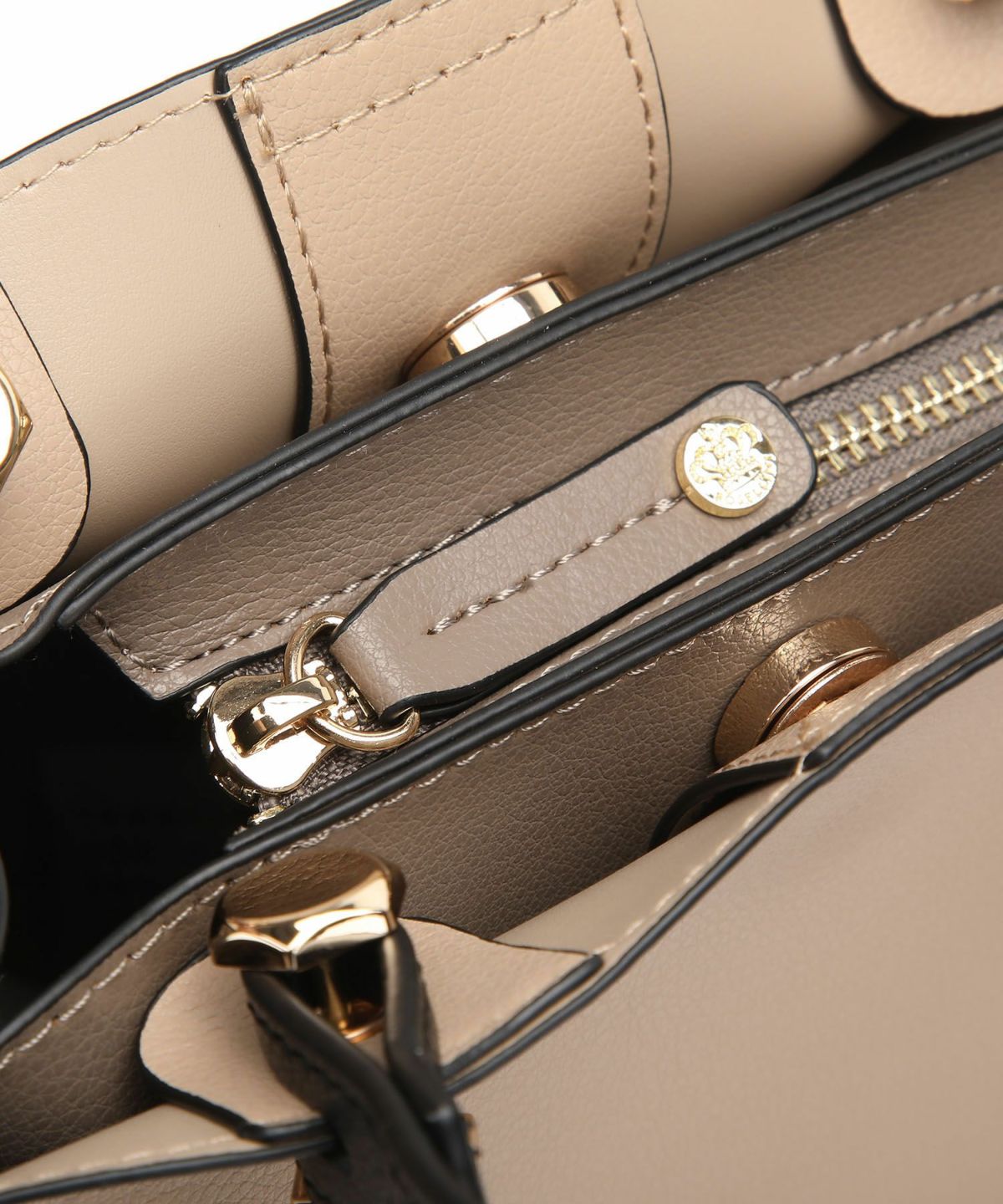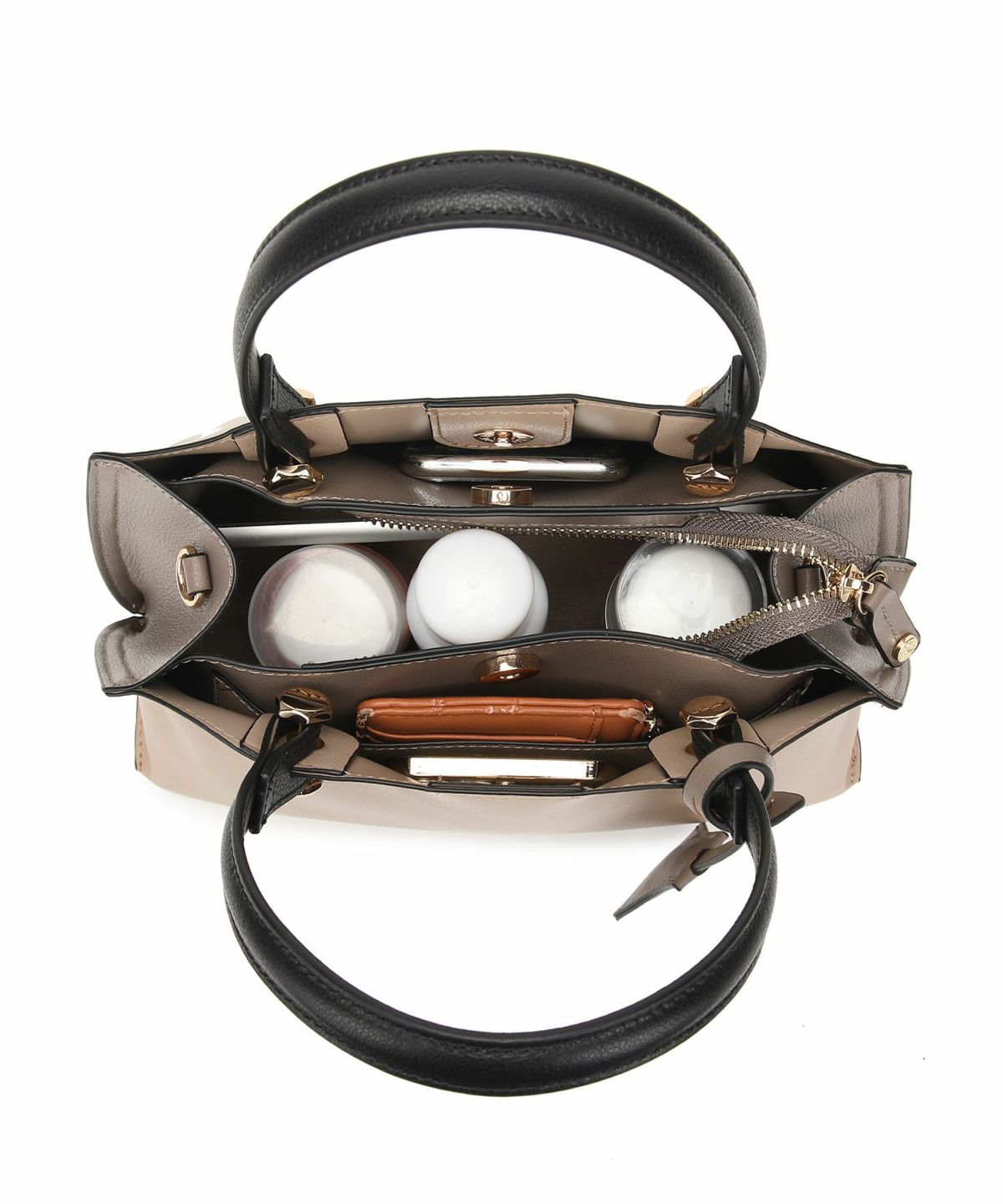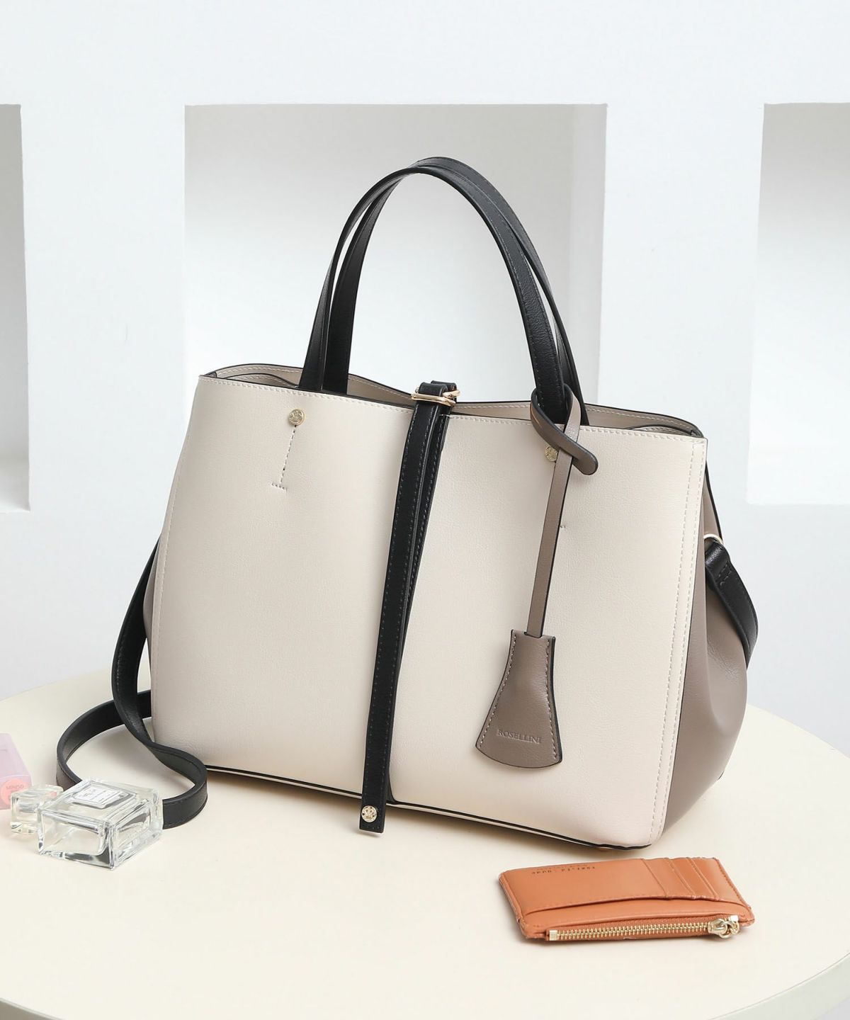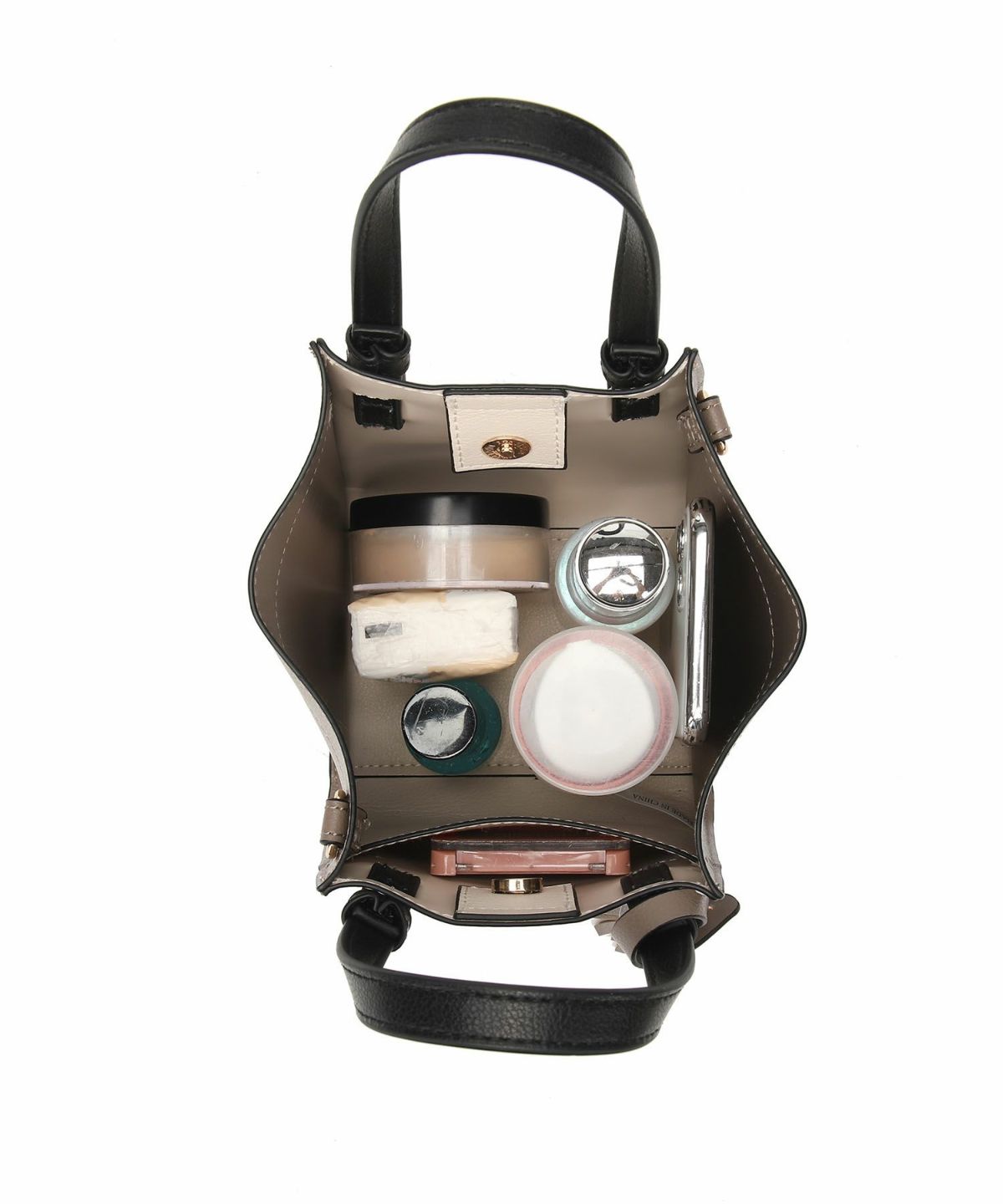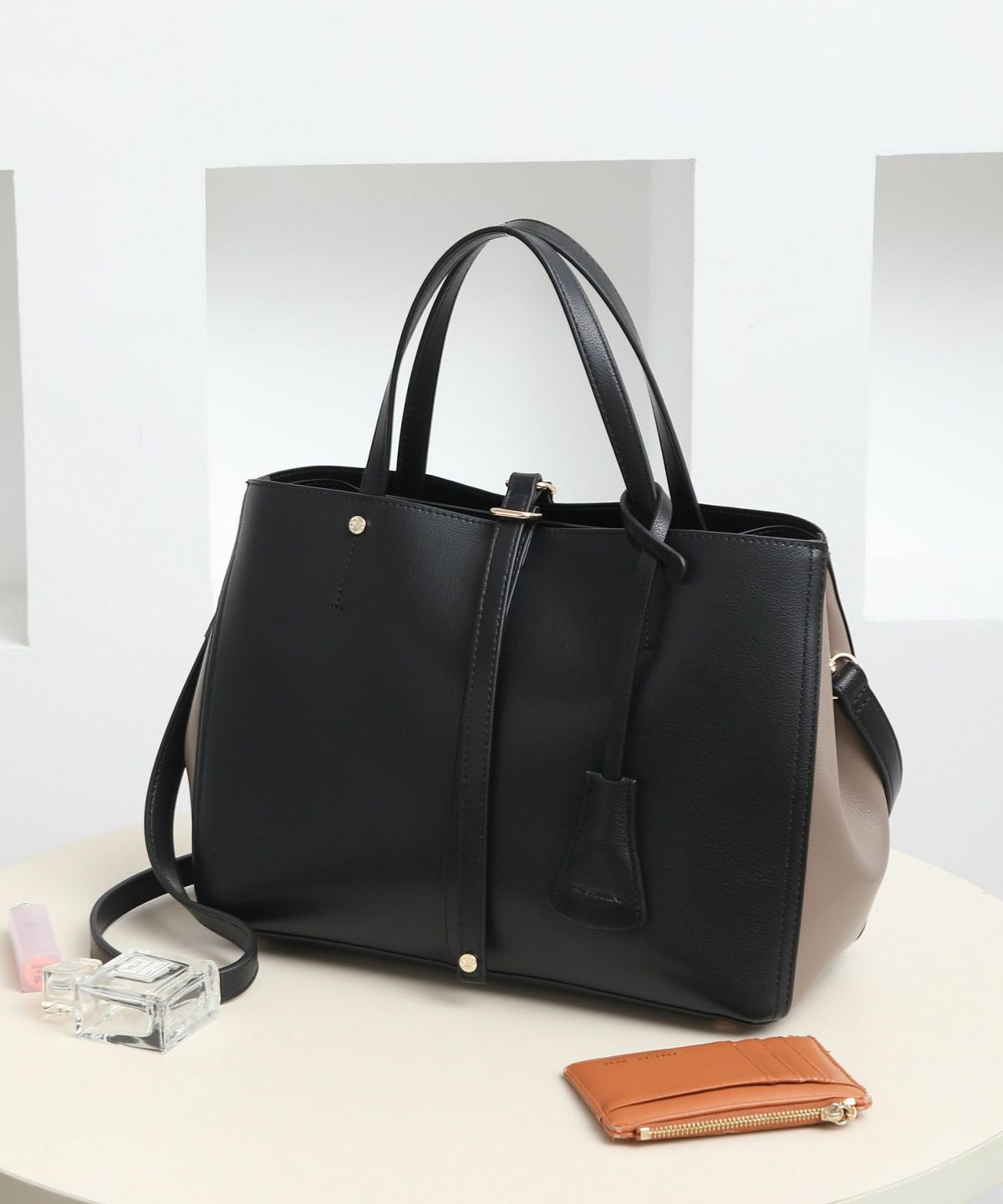 キーチャーム付 軽量縦型配色アオリハンドバッグ