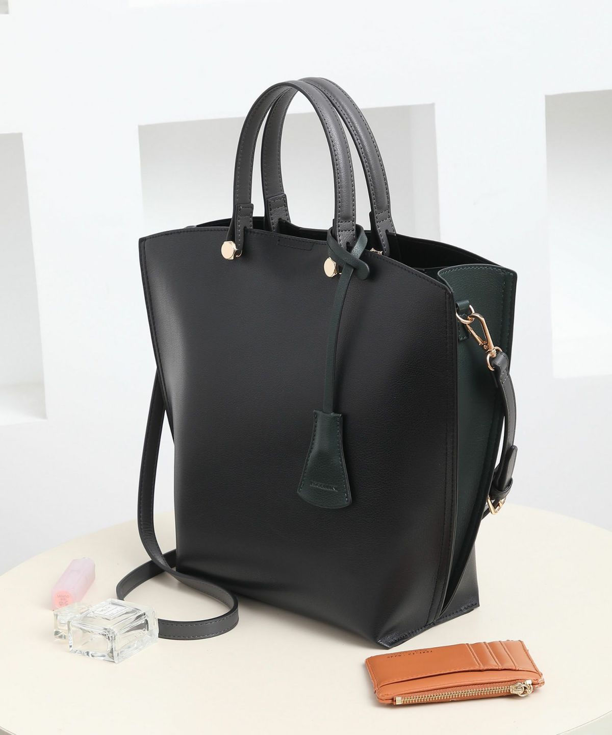 キーチャーム付 軽量縦型配色アオリトートバッグ