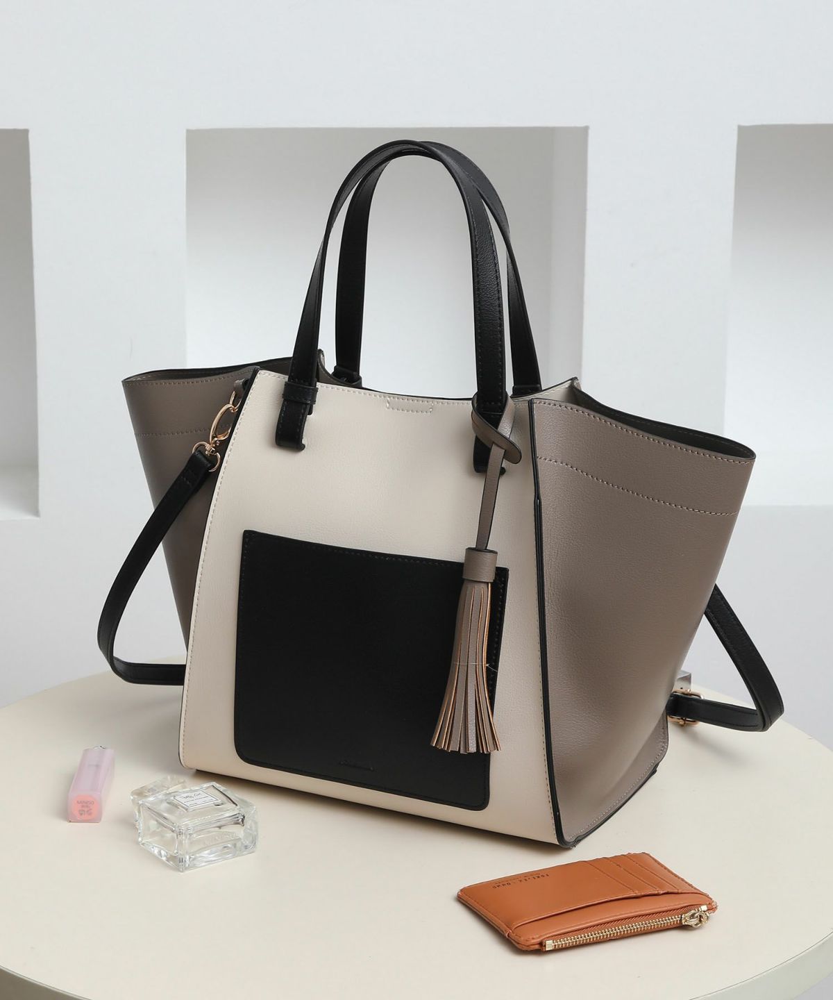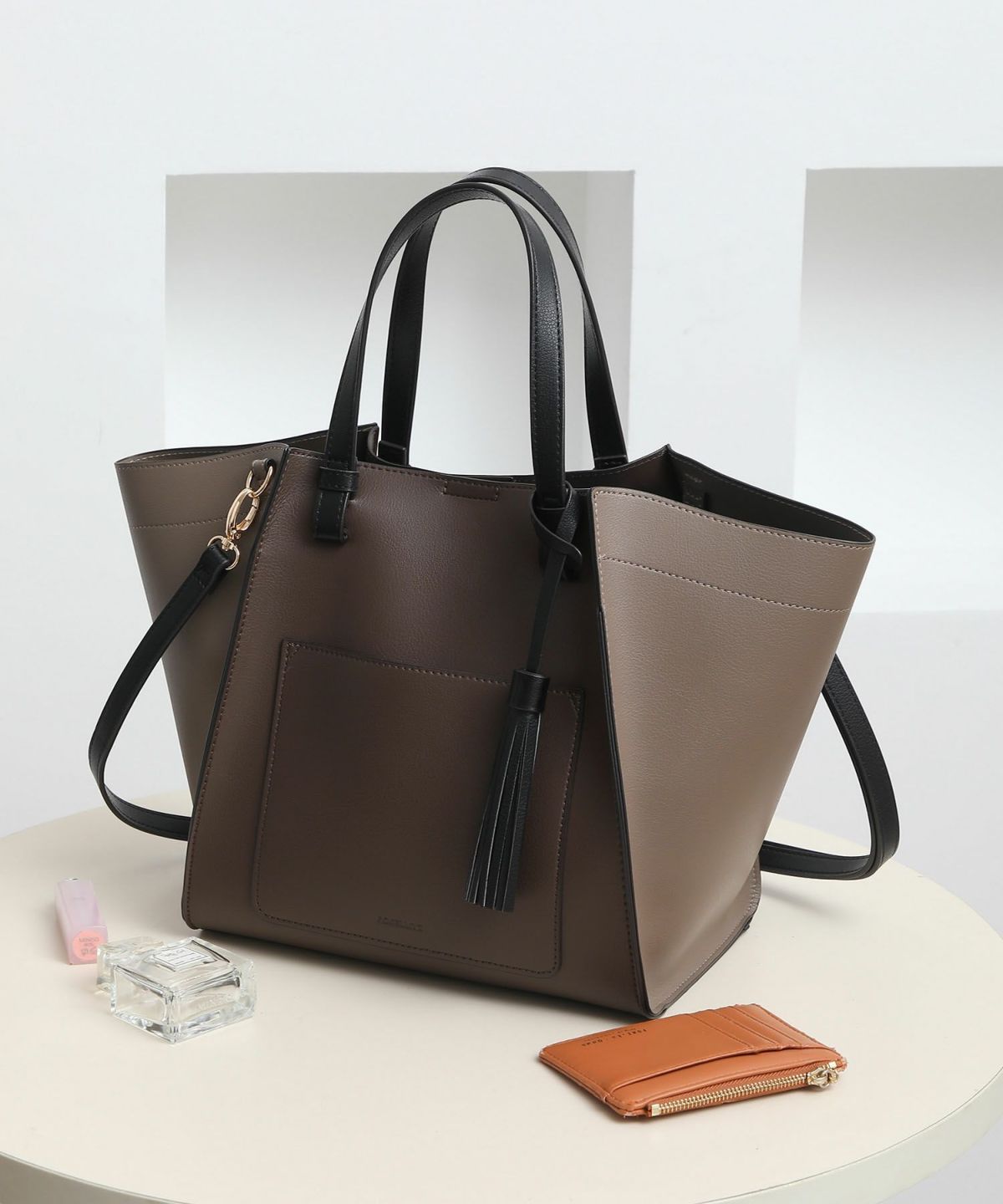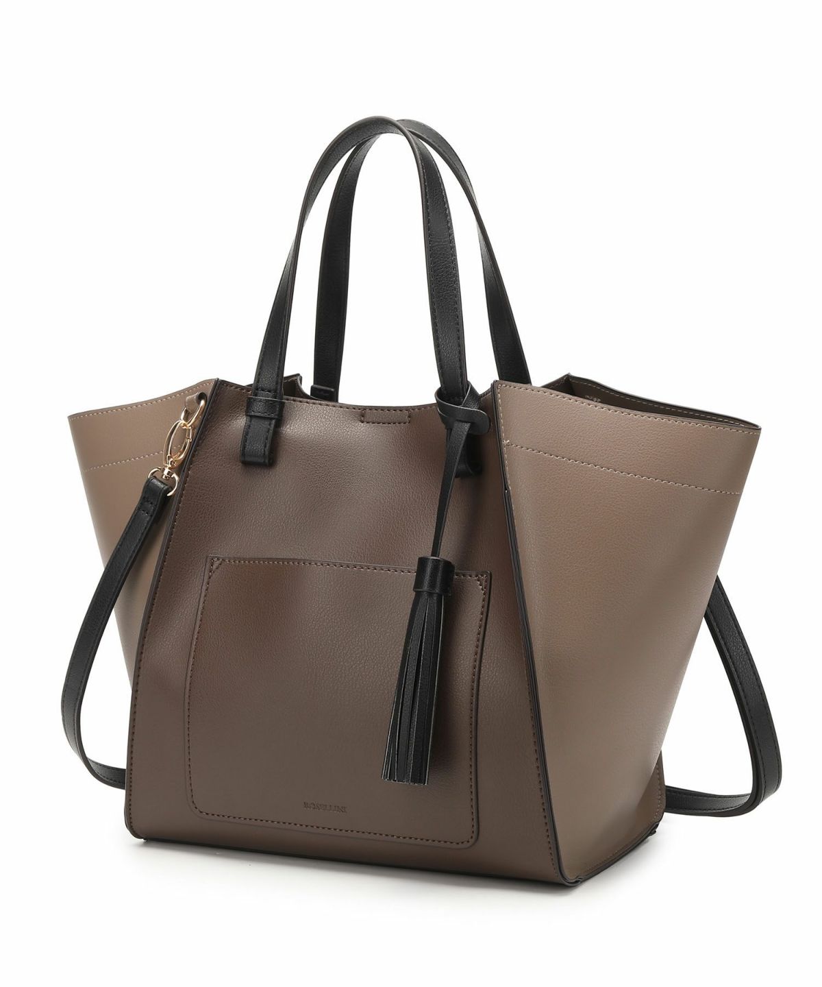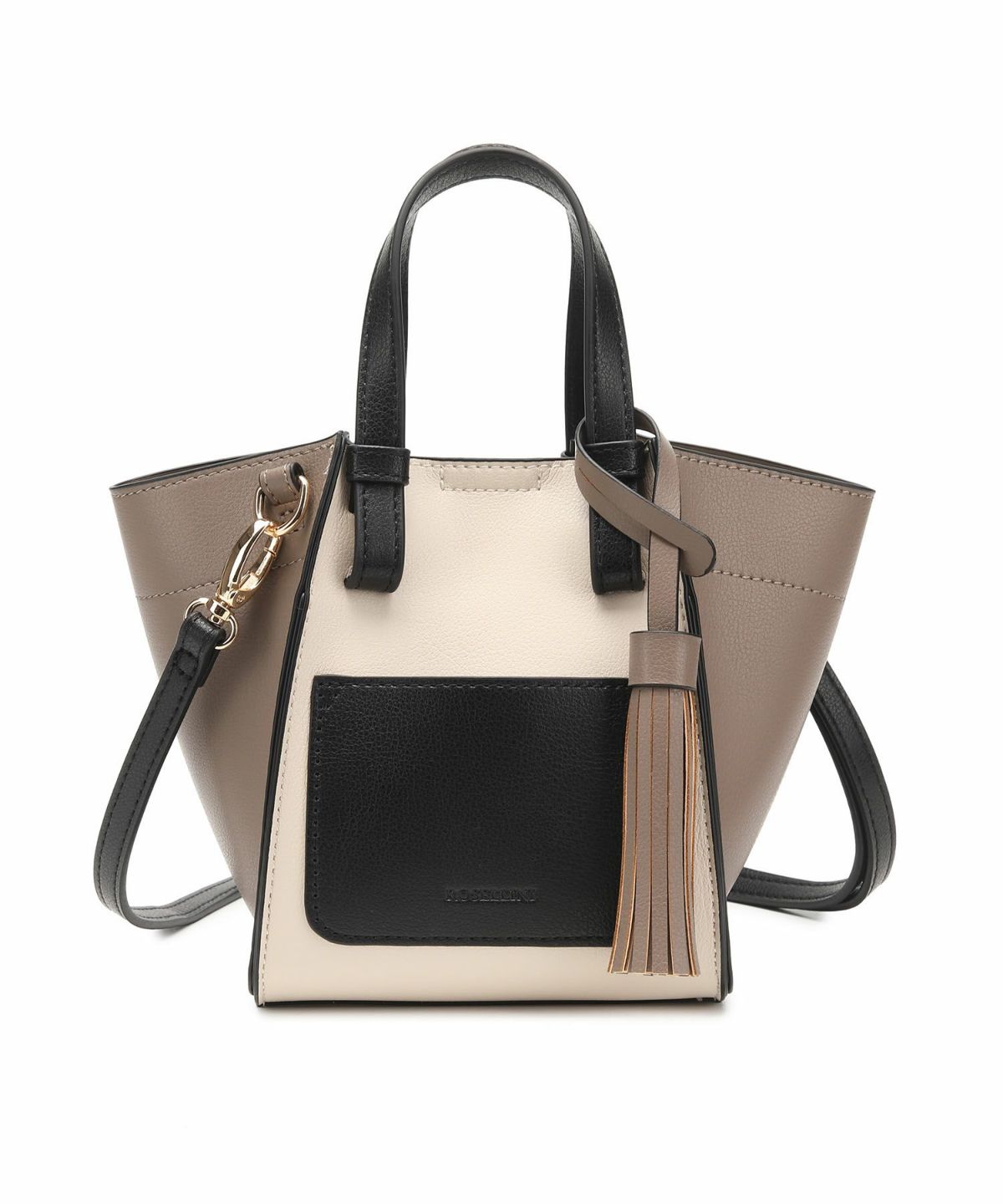 タッセルチャーム付 軽量配色タッセルポケットトートバッグSグS