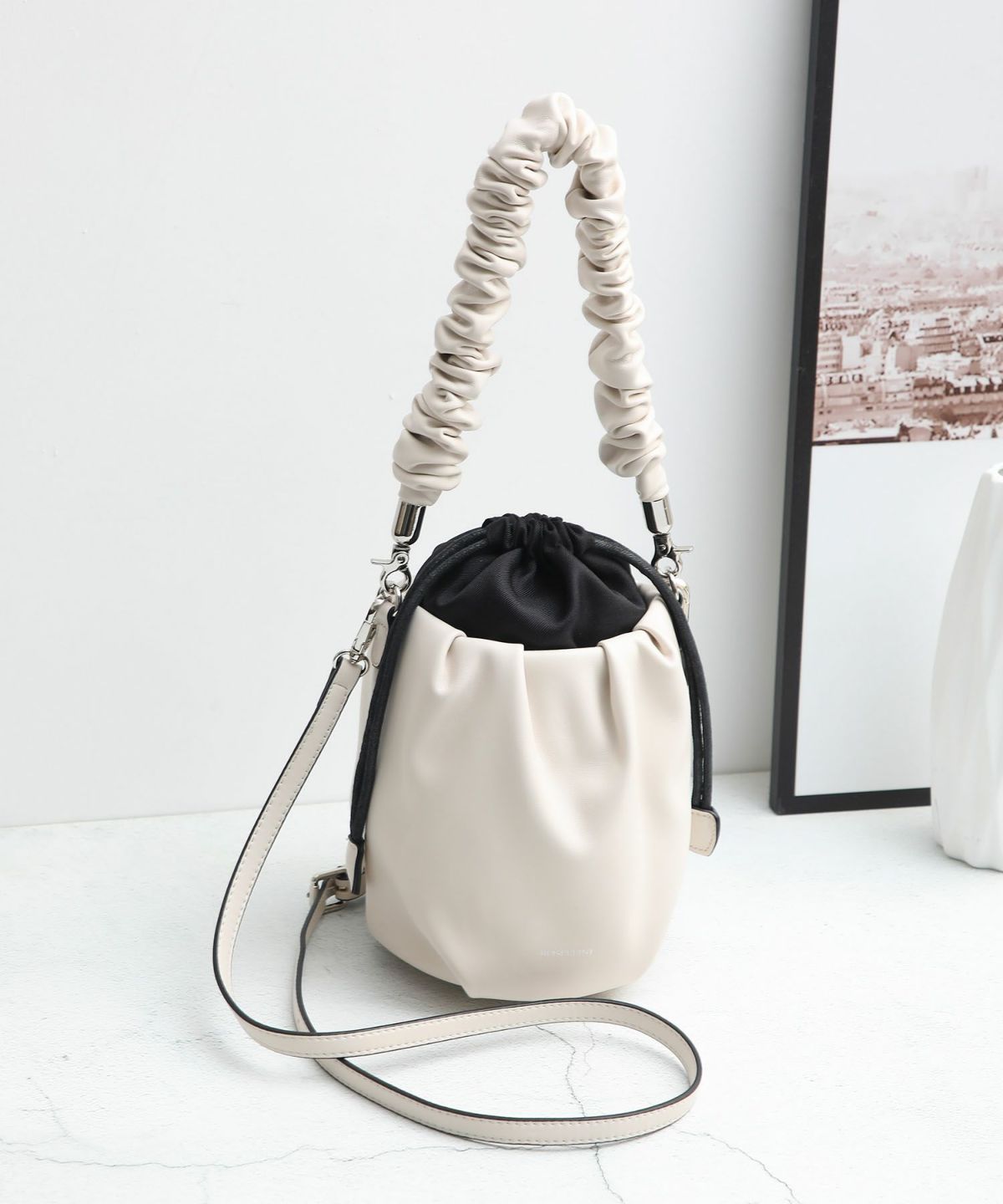 ラム調ギャザーハンドルミニ巾着バッグ