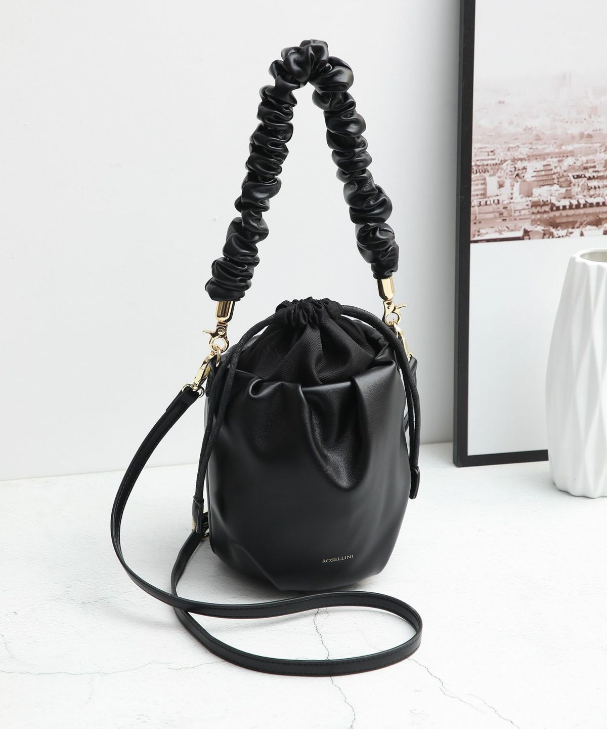 バケツ型のレザー巾着バッグでコーデが決まる!