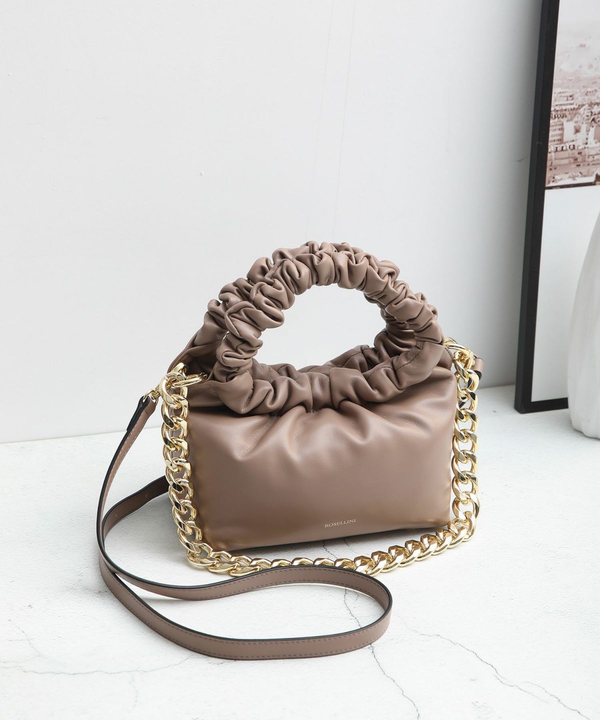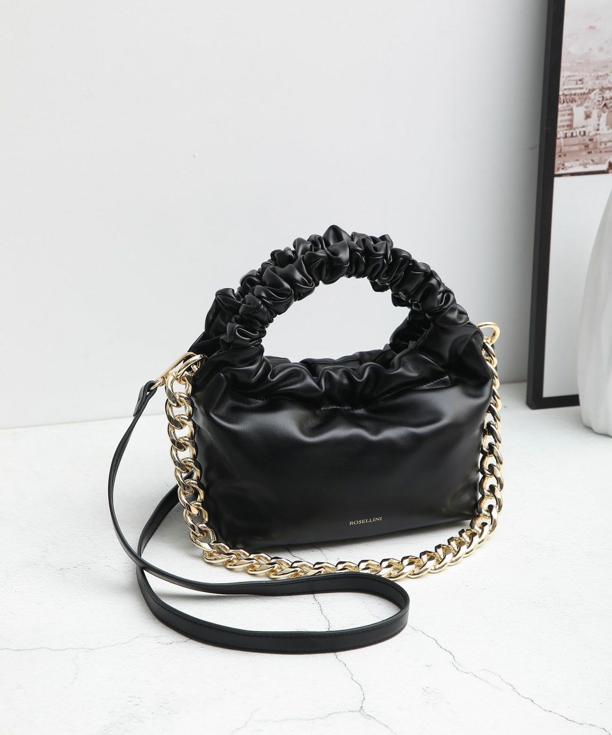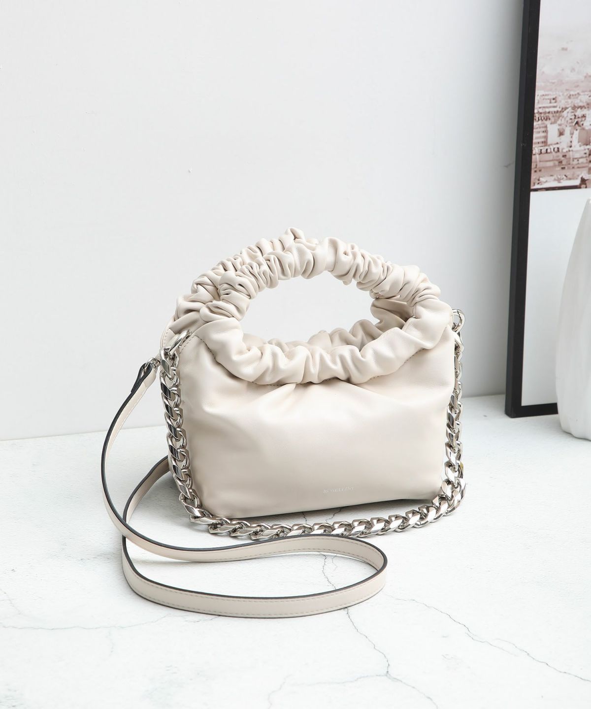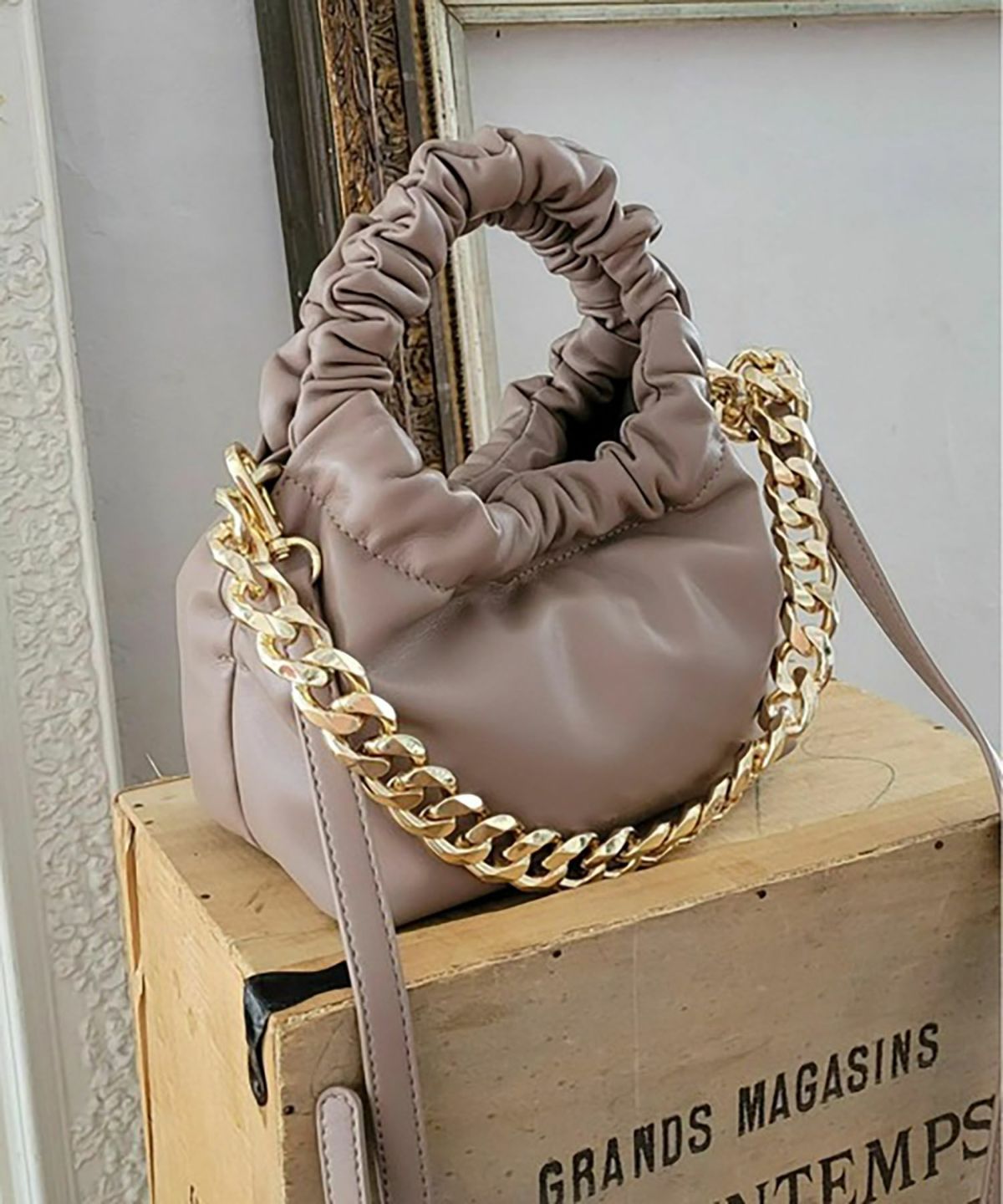 ラム調ギャザーハンドルチェーンミニショルダーバッグ