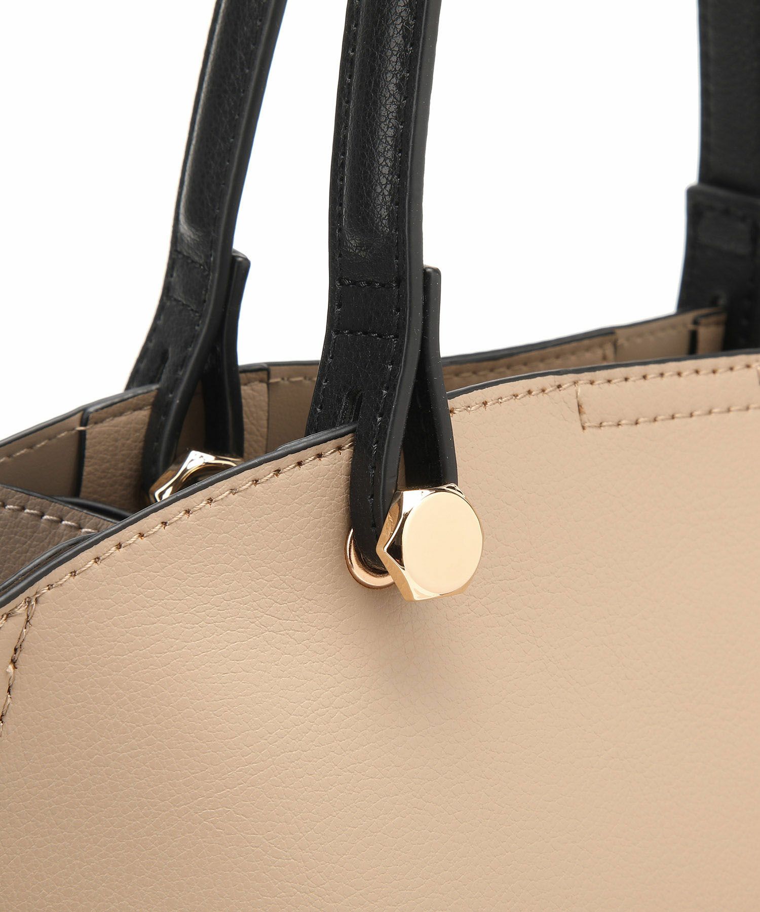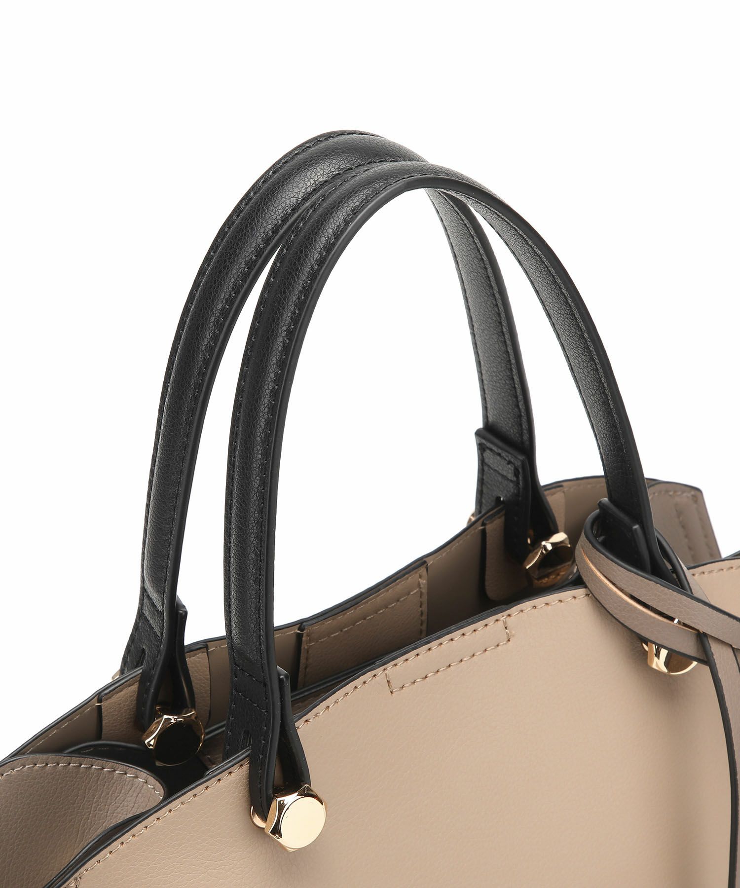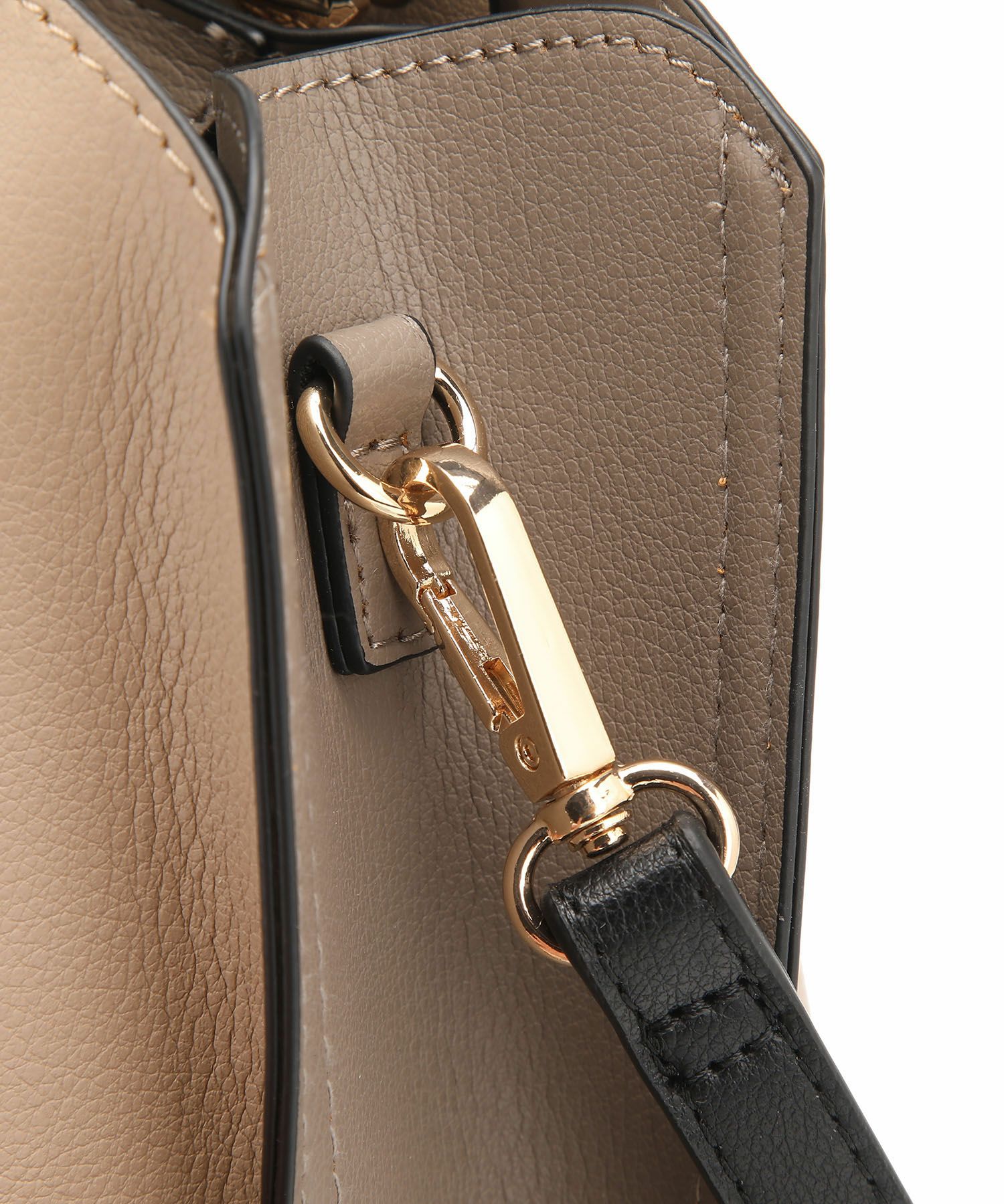遊び心がある両サイドのバイカラー配色と同色のキーチャームがポイントのハンドバッグ。