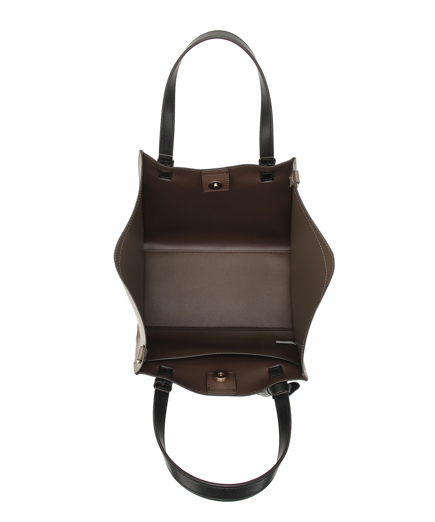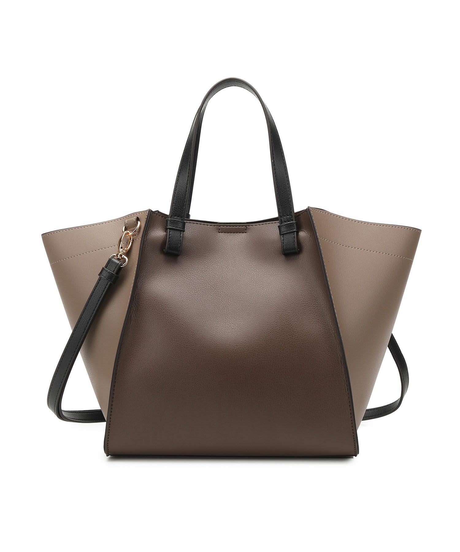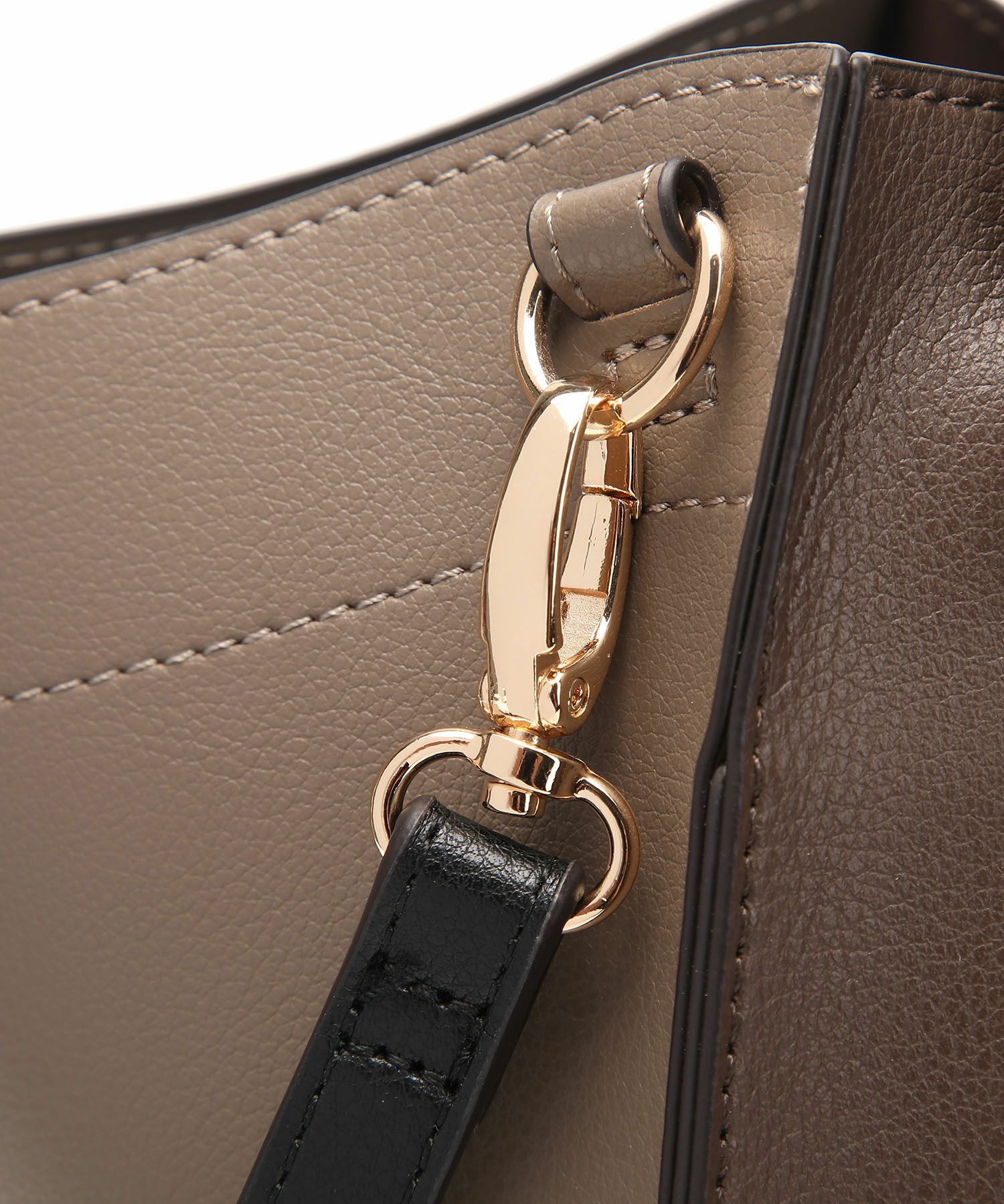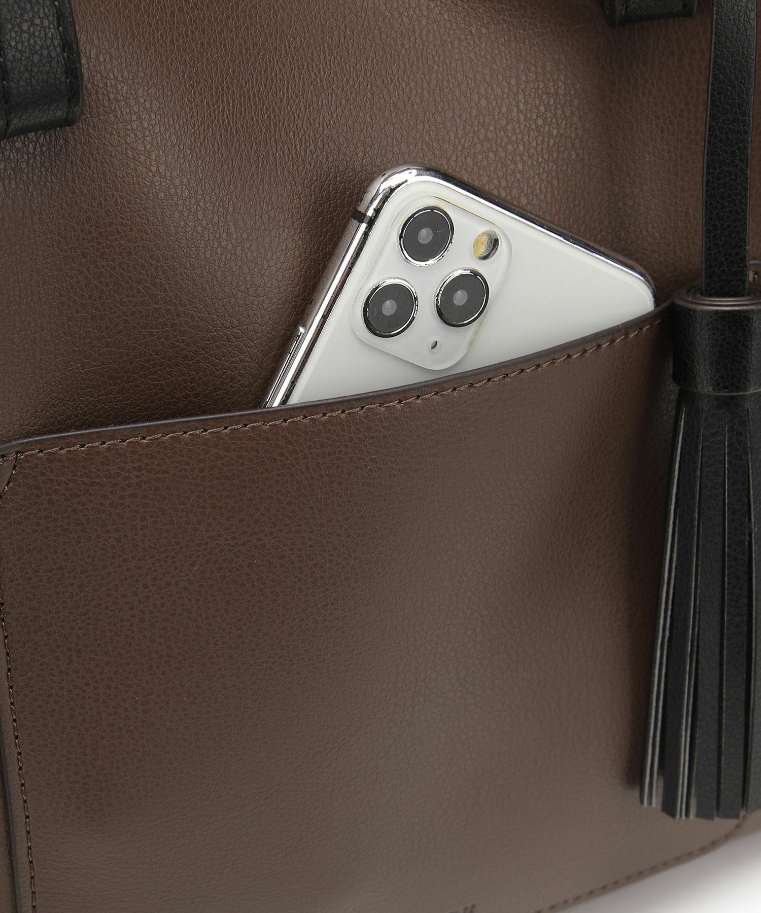 シンプルなデザインながらバイカラーと取り外し可能のタッセルチャームがアクセントになったバッグ。