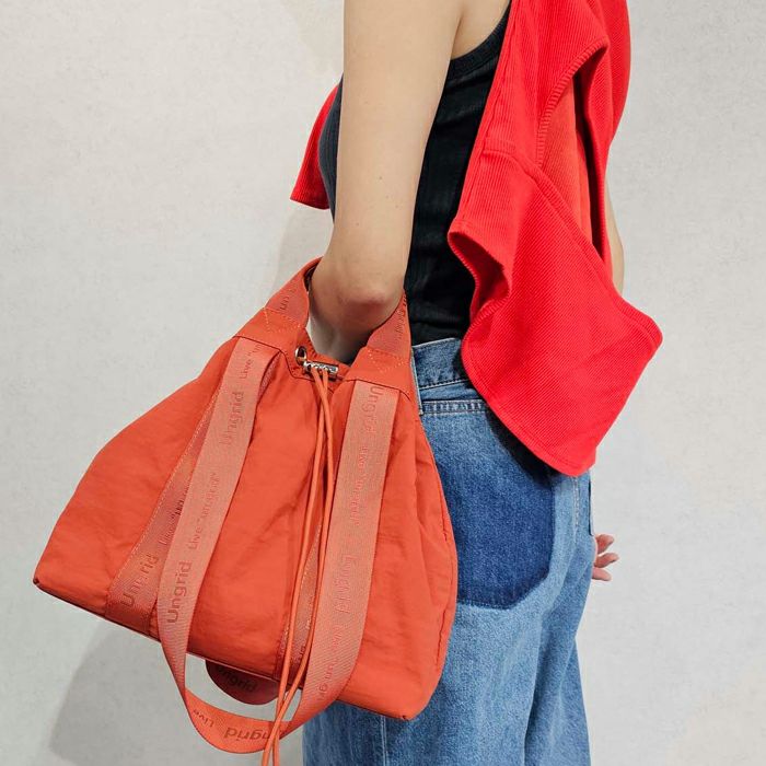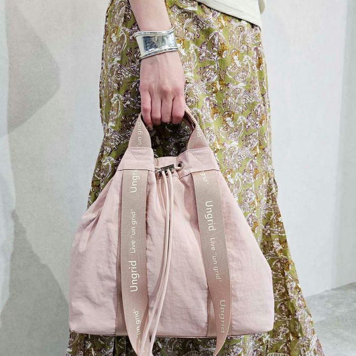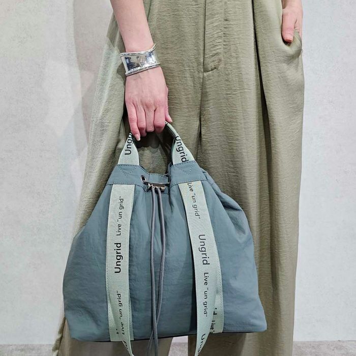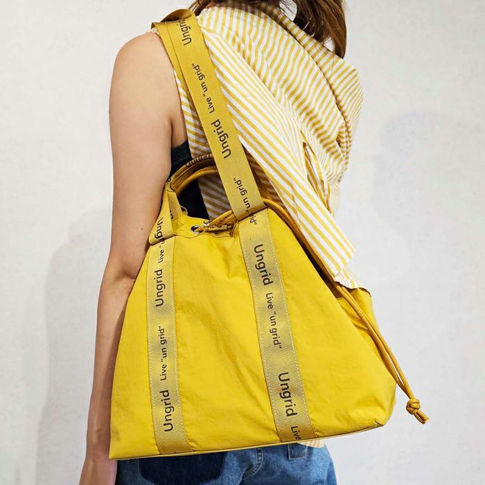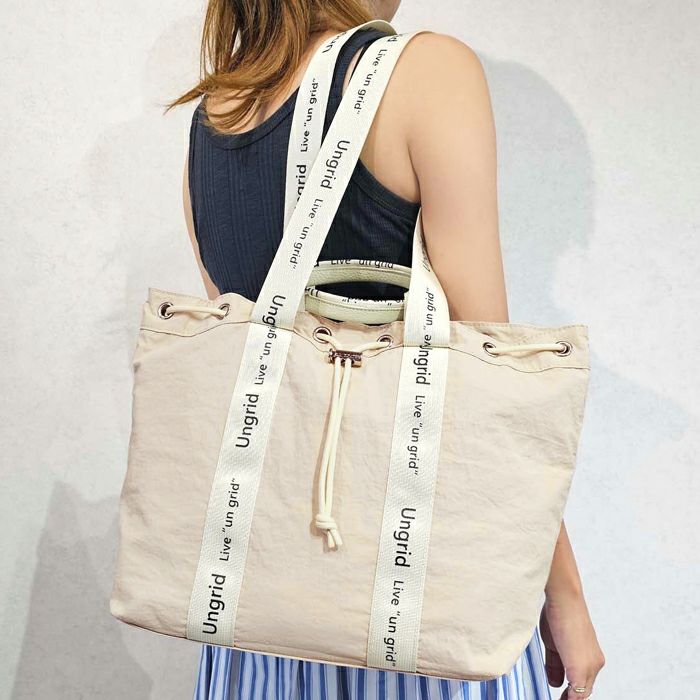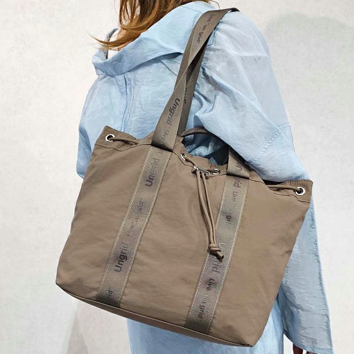 撥水軽量ソフトナイロン ロゴテープ 巾着トートバッグ