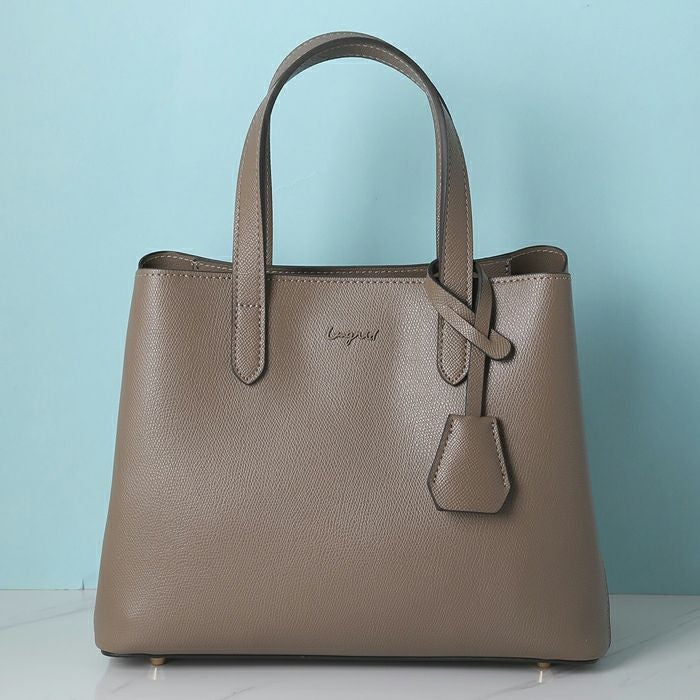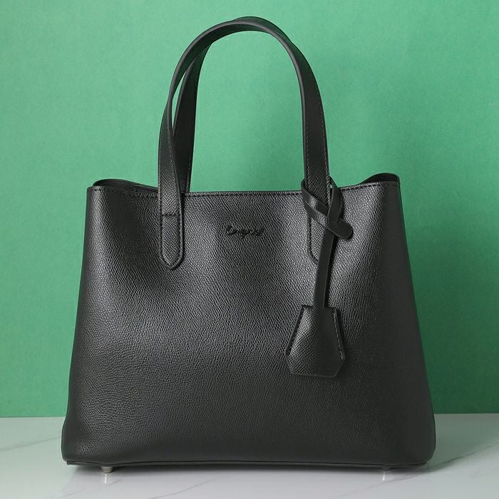 ロゴ金具 キーハウス付き 両アオリポケット ハンドバッグ(ショルダーストラップ付)