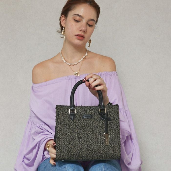 ヘリンボーンファブリック スクエア2WAYバッグ