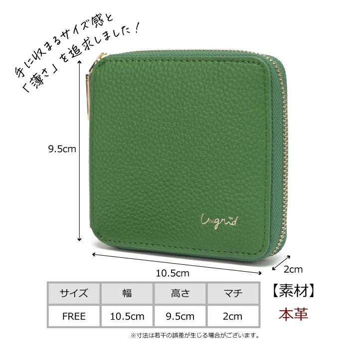牛革 薄型 ラウンドファスナー 二つ折り ミニ財布
