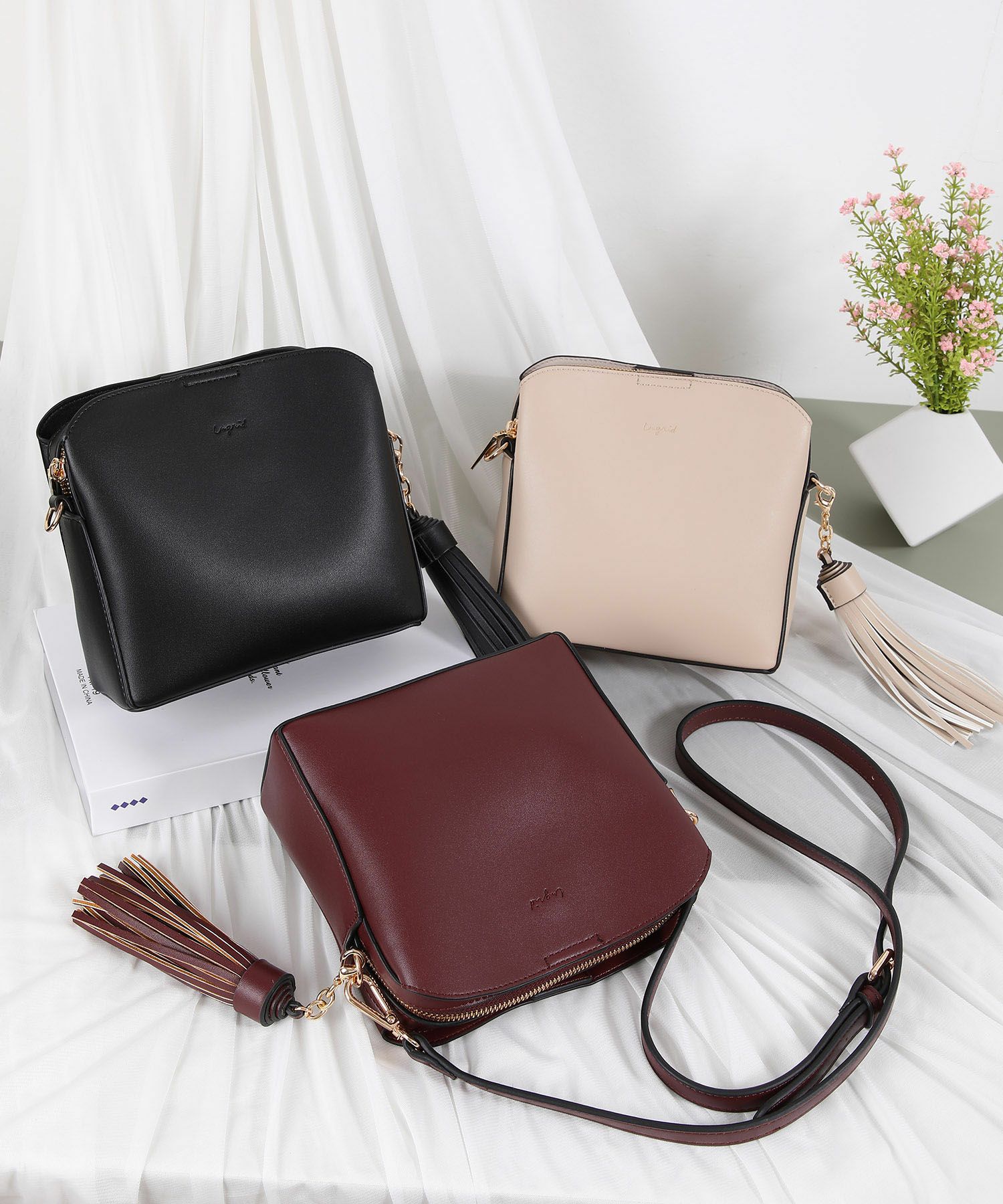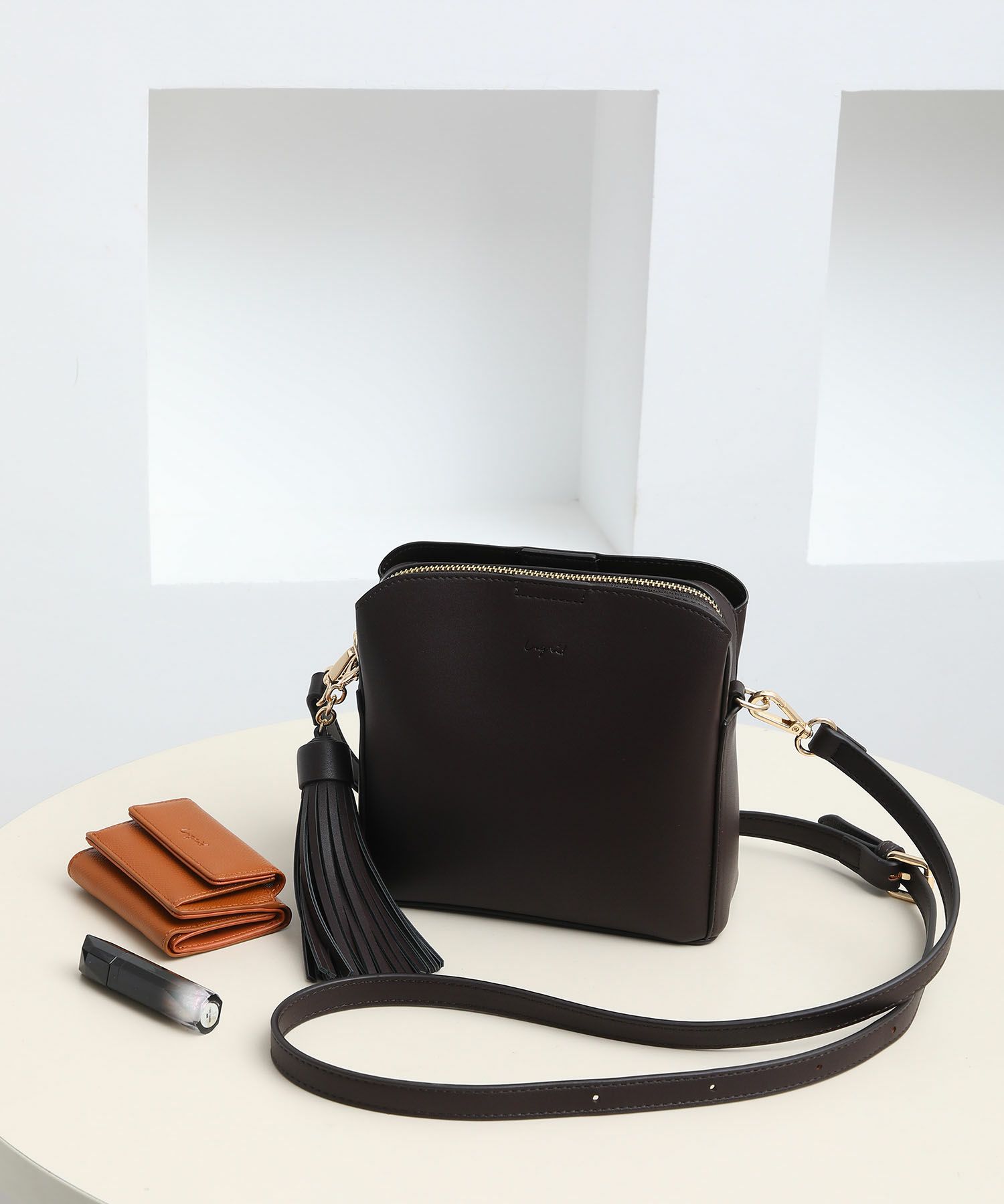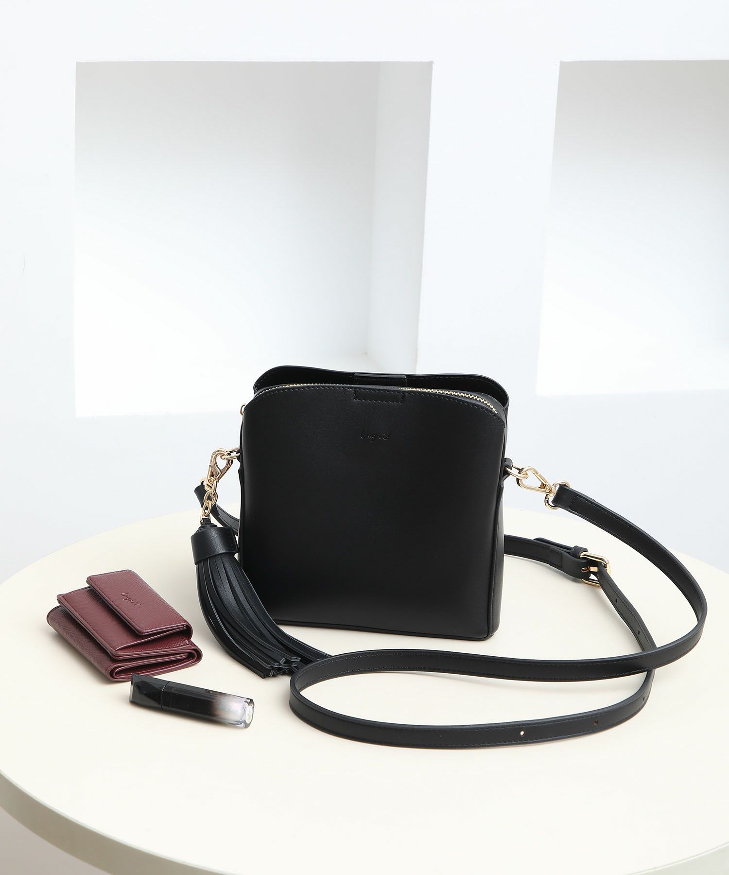 滑らかで品の良いスムースレザーに大きなタッセルがアクセントになったショルダーバッグ。