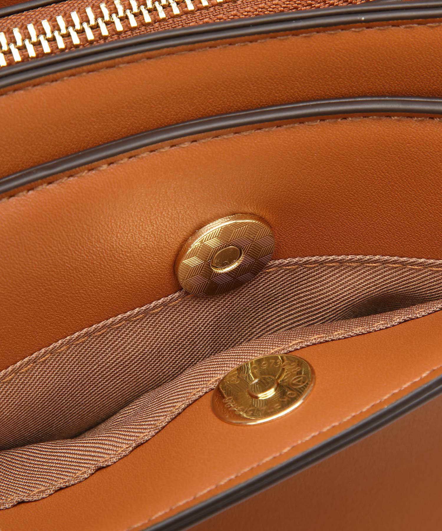 さらに大きく開くのでお荷物をガシガシ収納できるメインファスナーを開けると、B5ノートや手帳、長財布、大きめなコスメポーチ類大き目なストールがちょうど良く入る大きさを実現しました。
