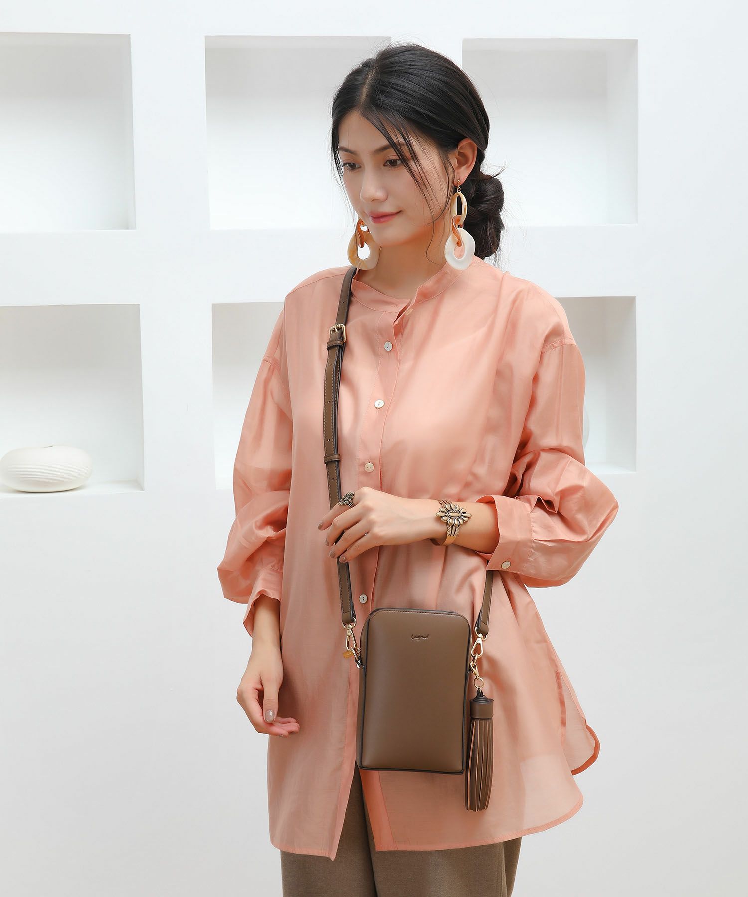 トレンドの縦長サイズ、程よいマチで財布やスマートフォンはもちろん小物類もしっかり収納可能。