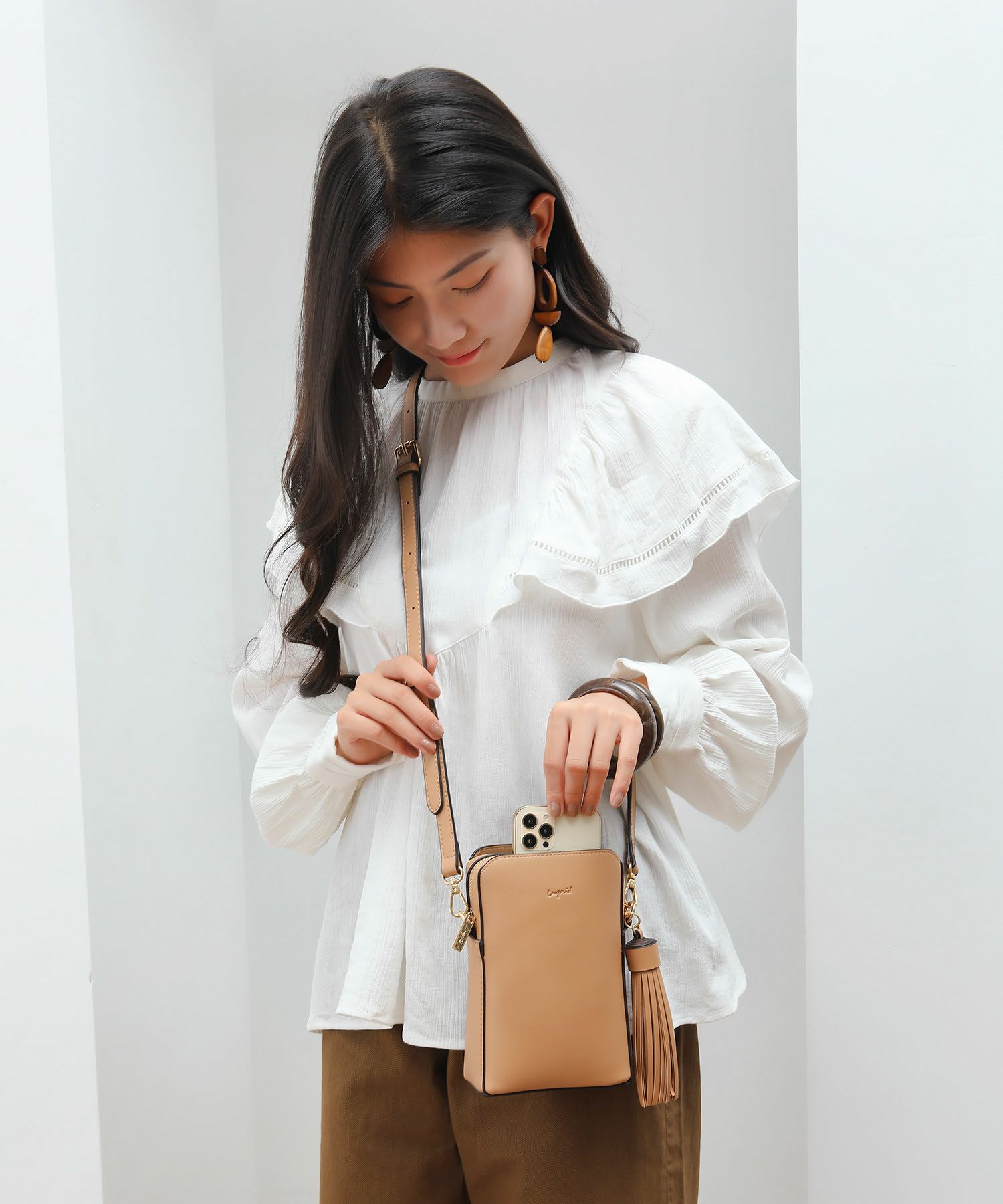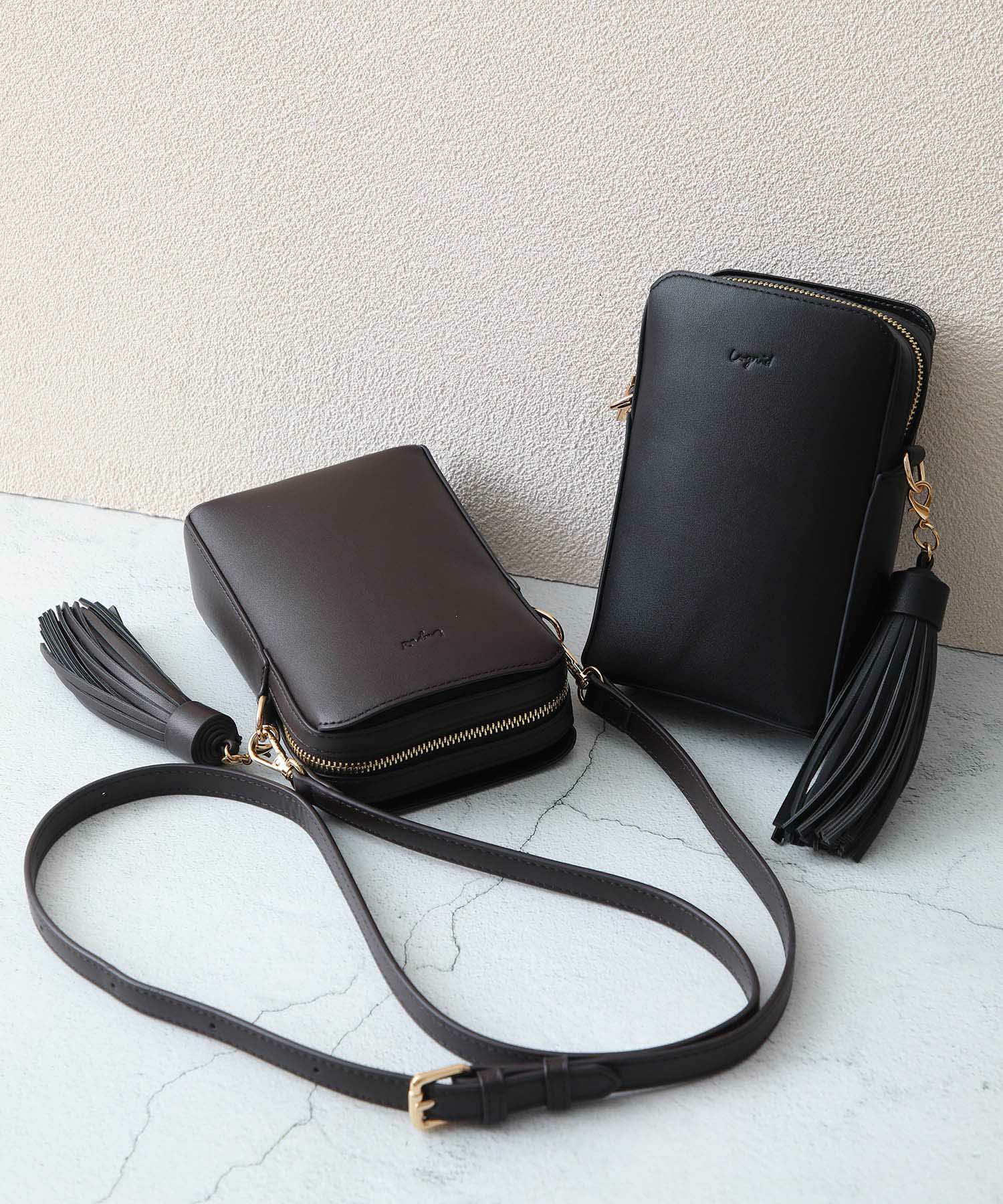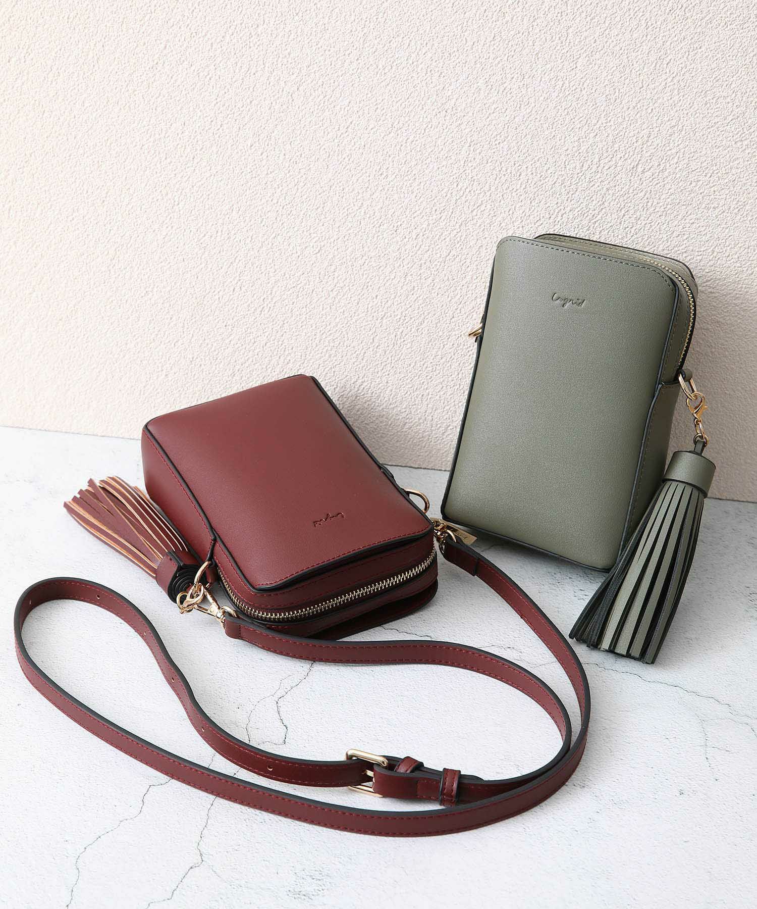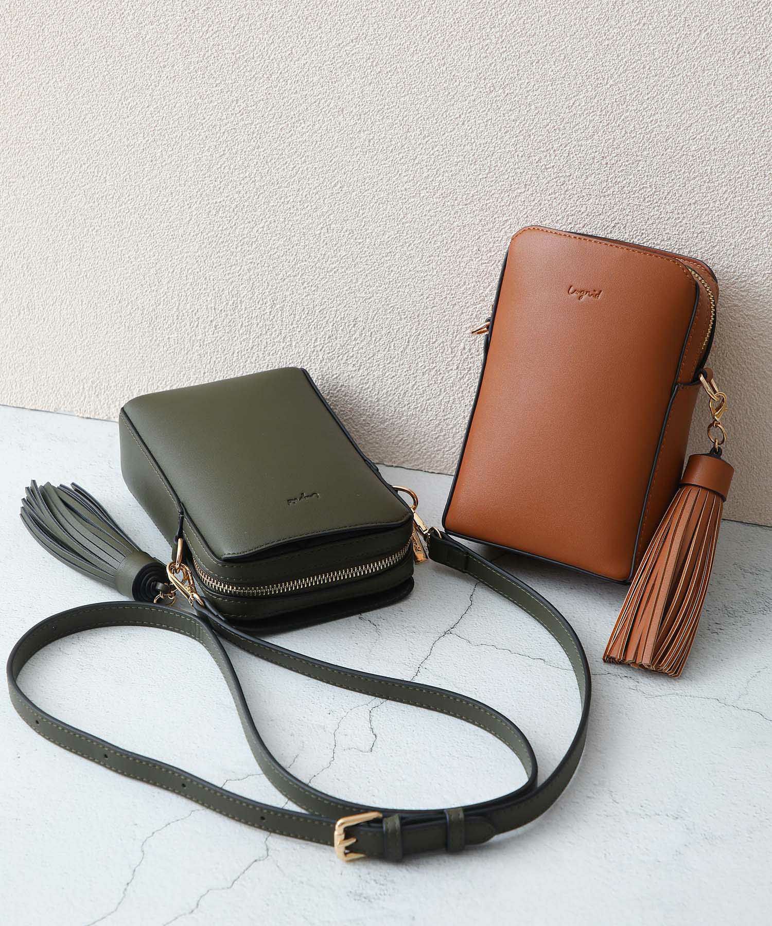 大人気のスムースビッグタッセルショルダーバッグのスリムバージョン。縦長ミニスリムポシェットが新登場!