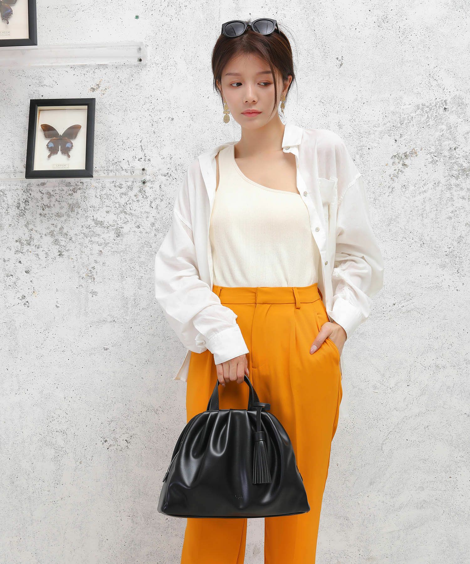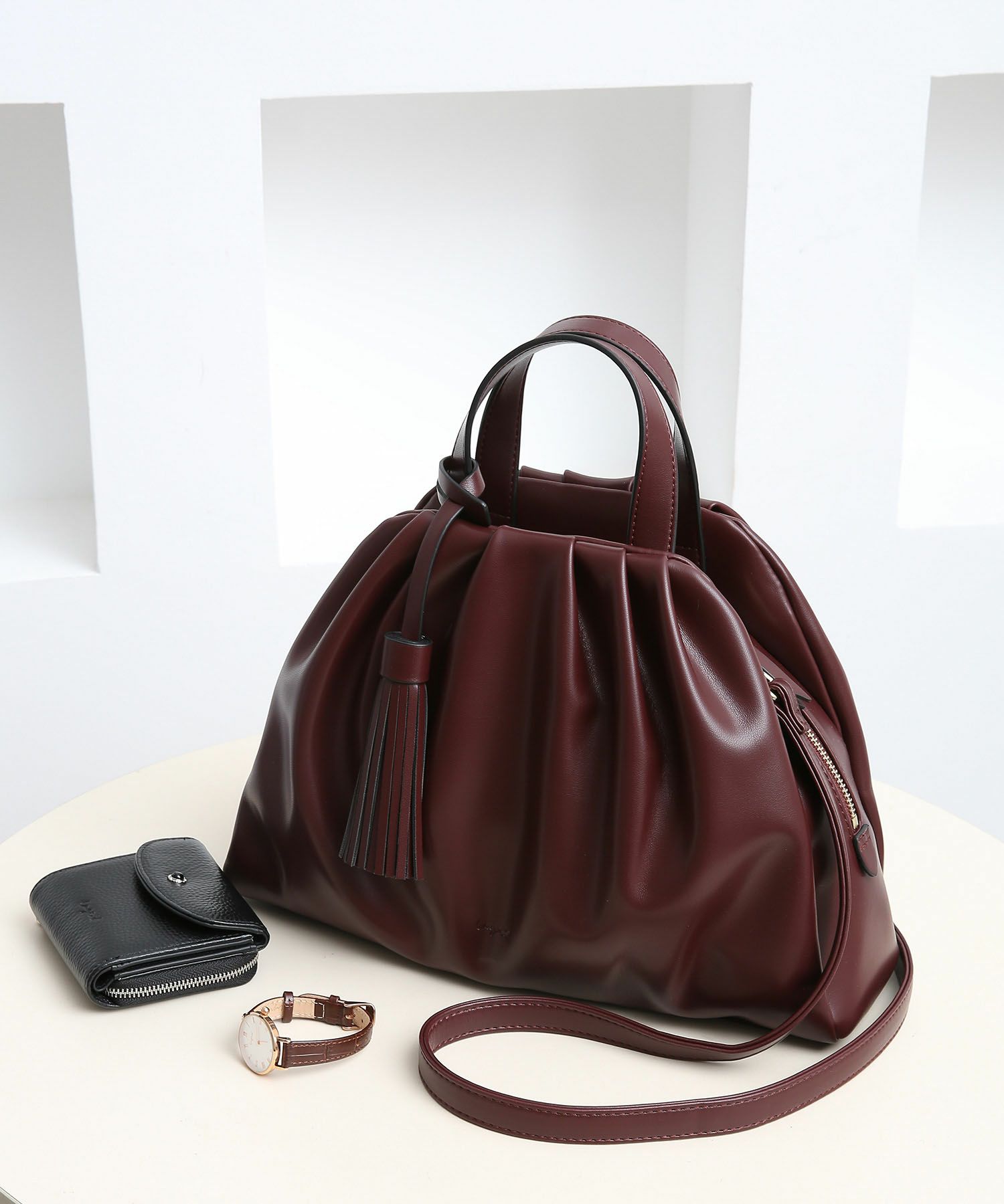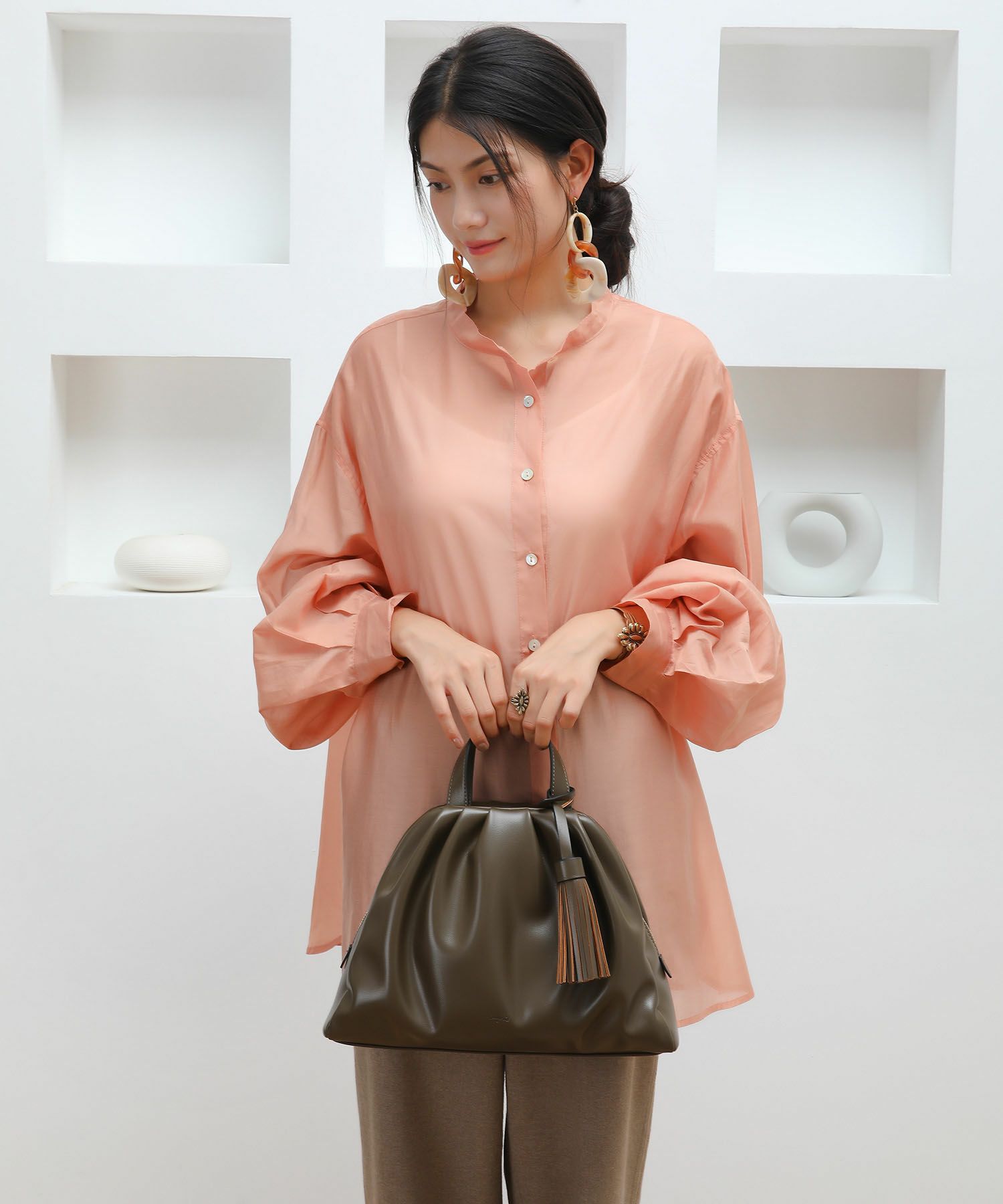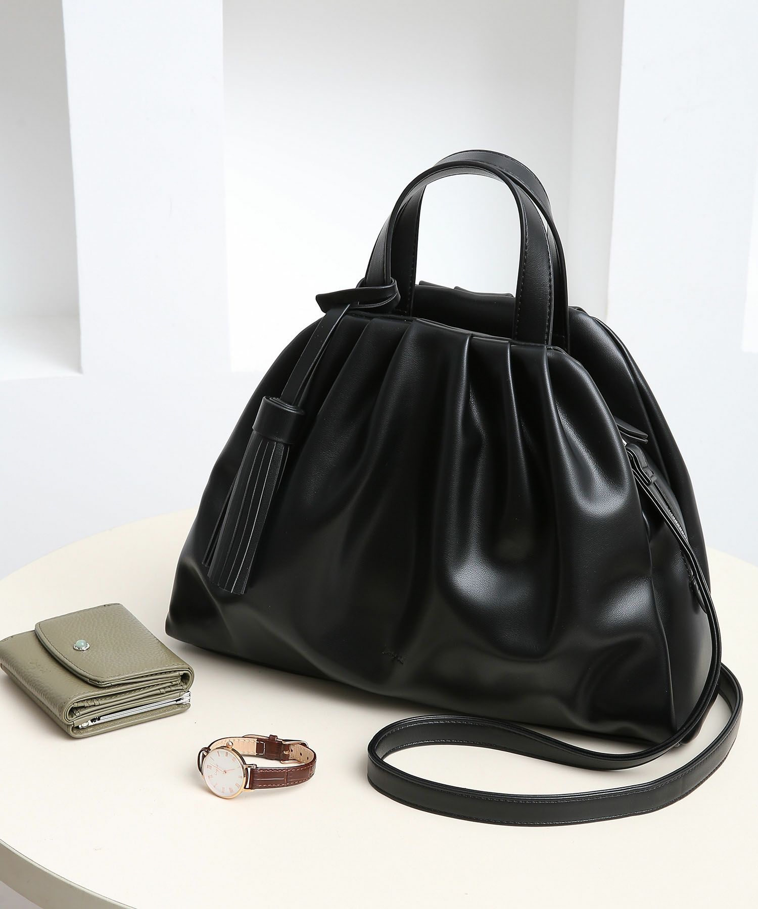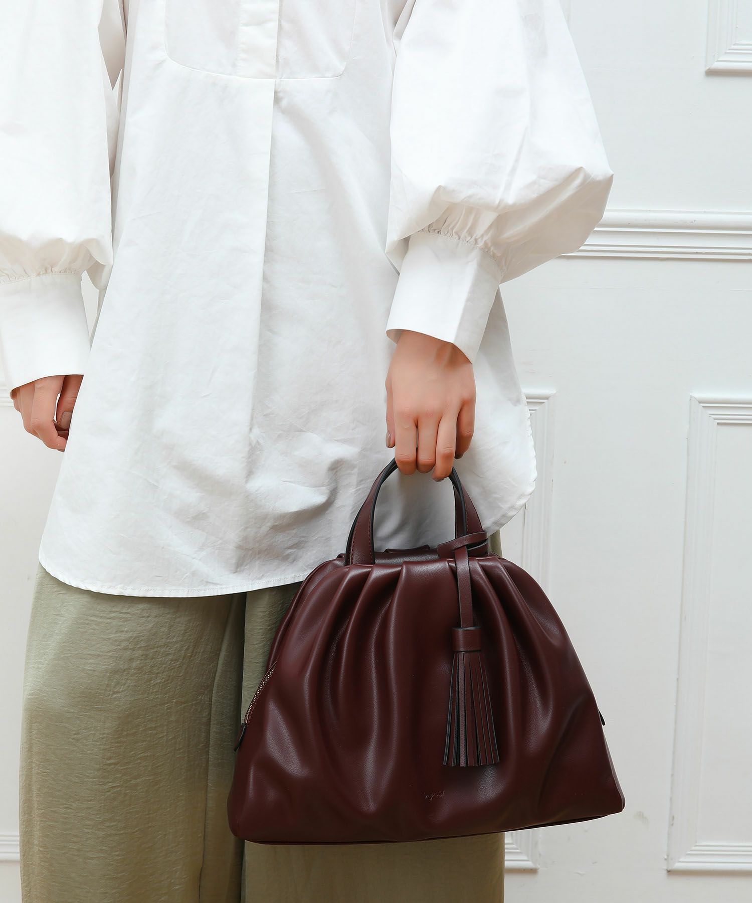 トレンドとしても注目を集める、立体感のあるギャザーを寄せたディテールが洒落感たっぷりギャザーバッグ。