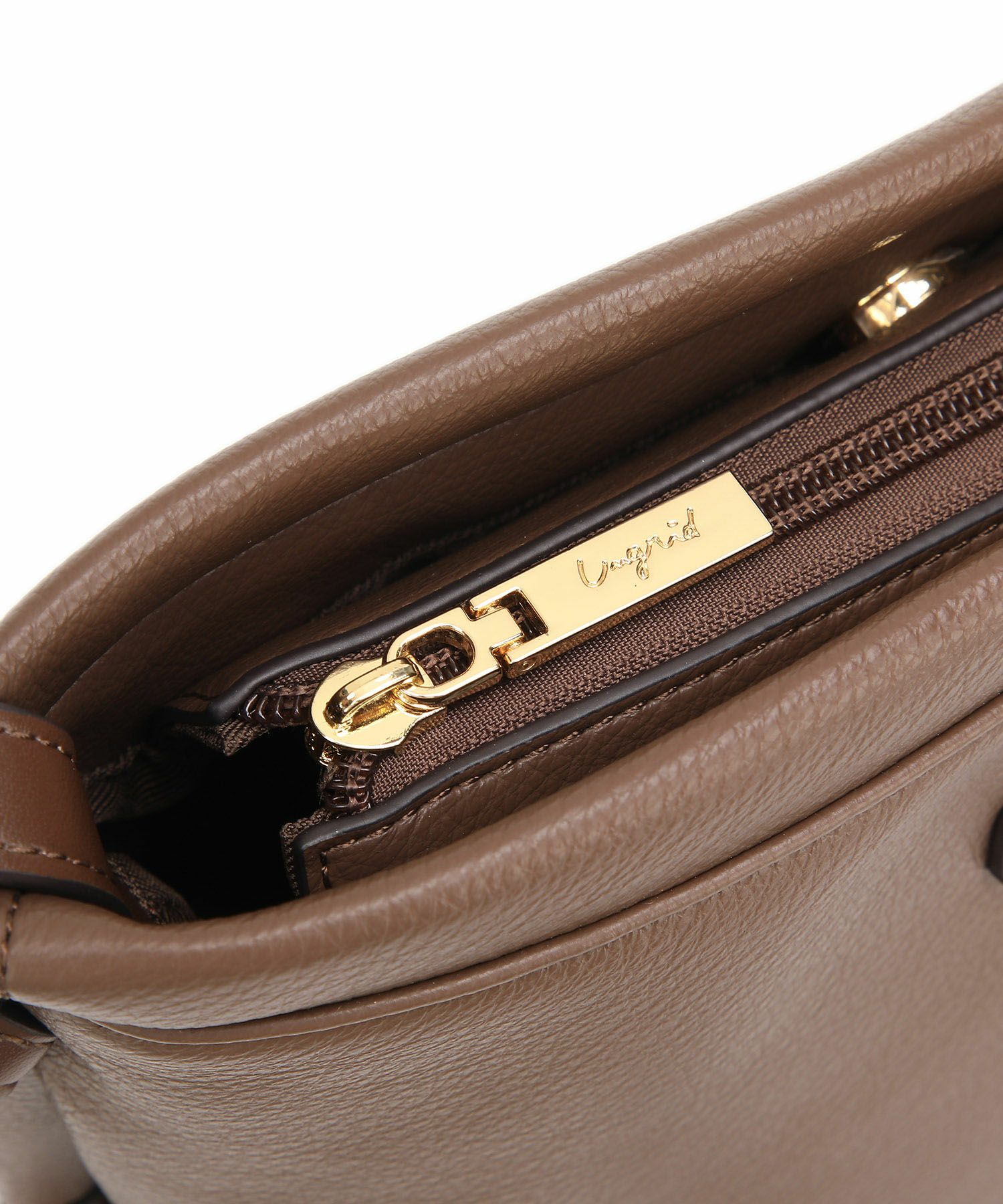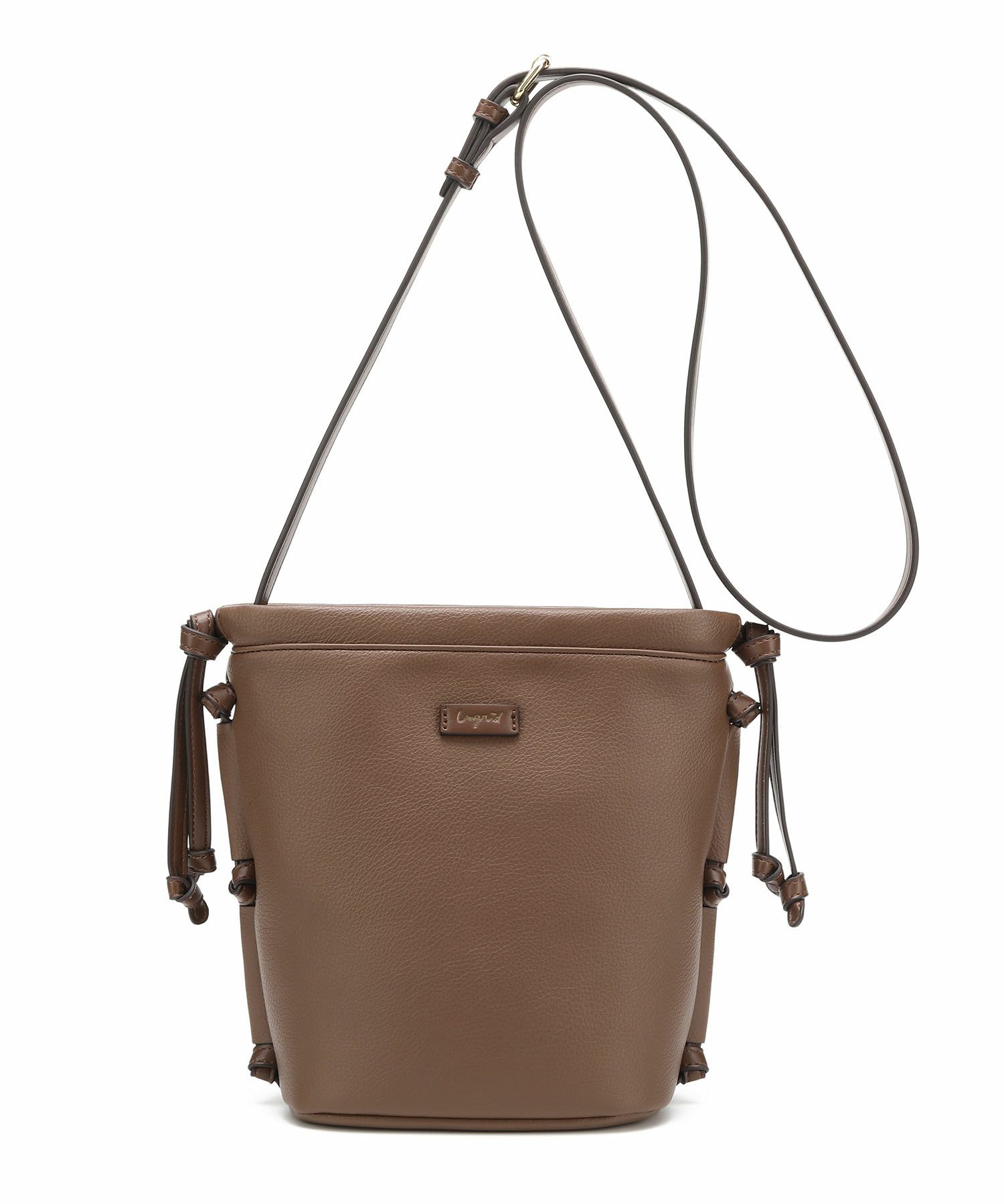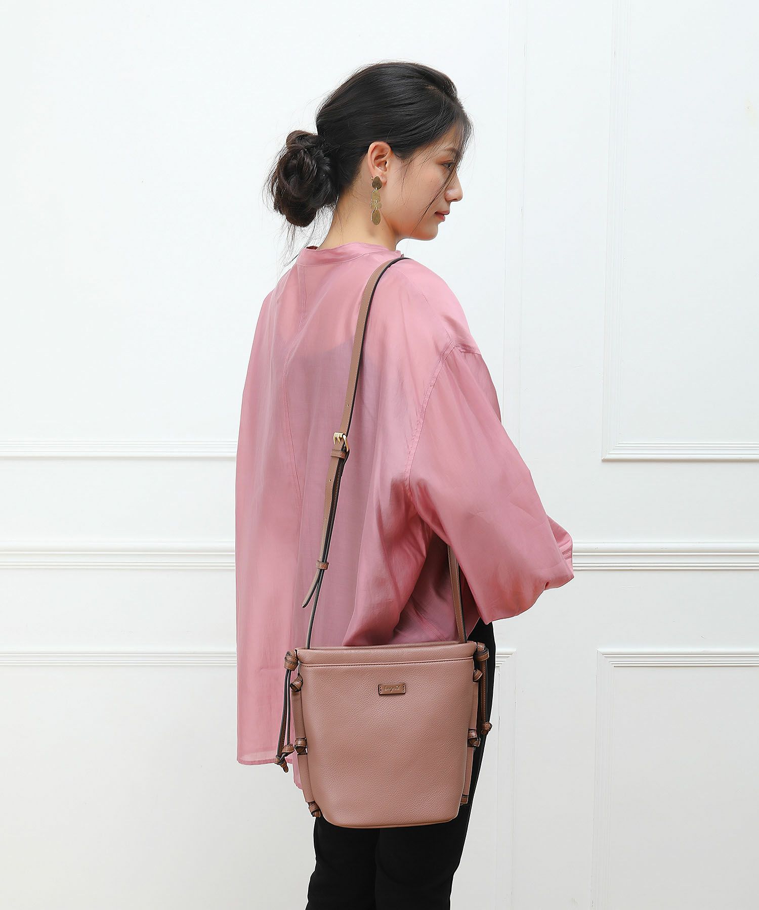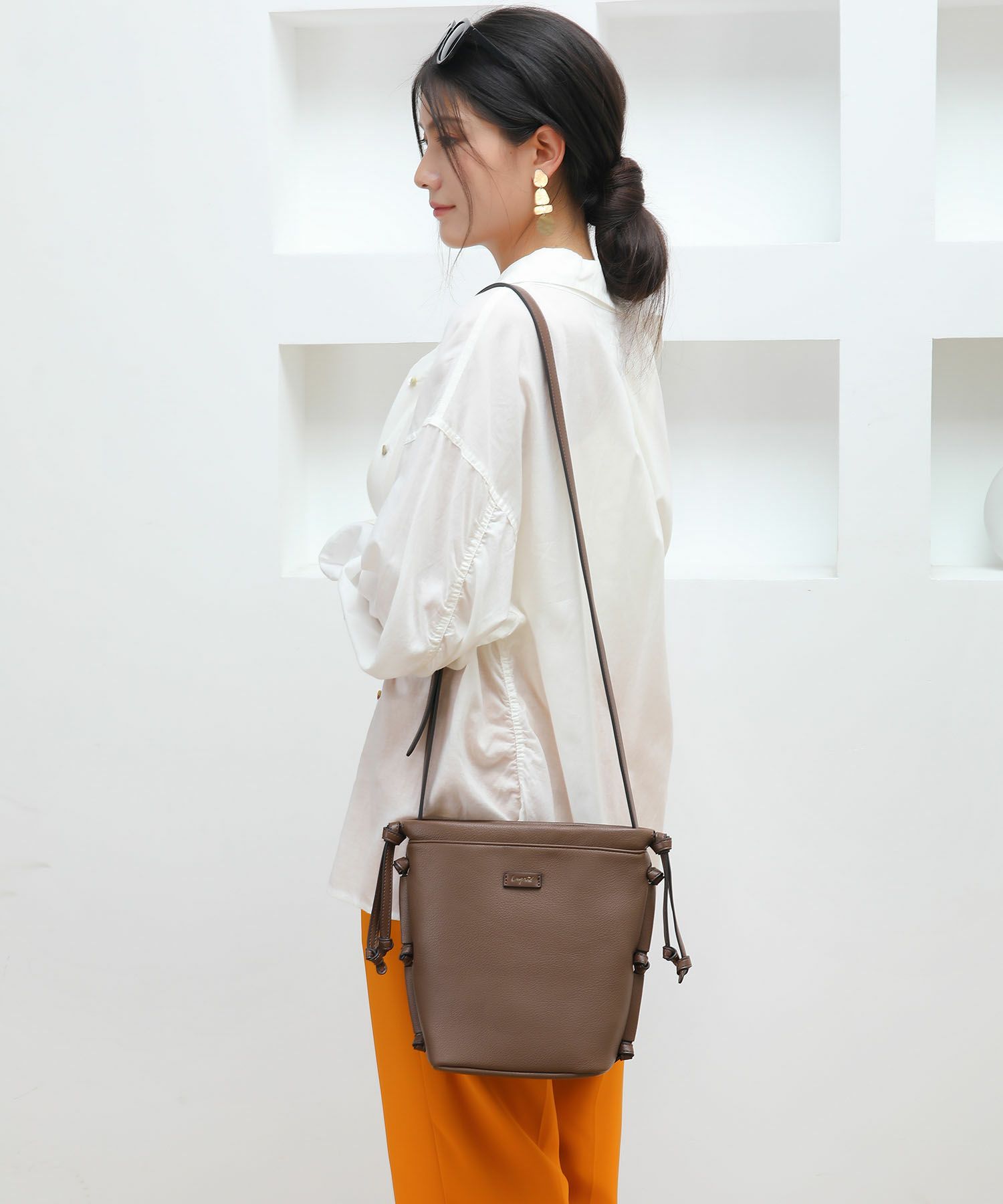 シックな色合いにショルダー部分をバッグに組み込んだ遊び心を効かせたデザインの両アオリポケットショルダーバッグ。_x005F_x000B_歩くたび揺れる両サイドの紐デザイン&配色カラーがお洒落で、