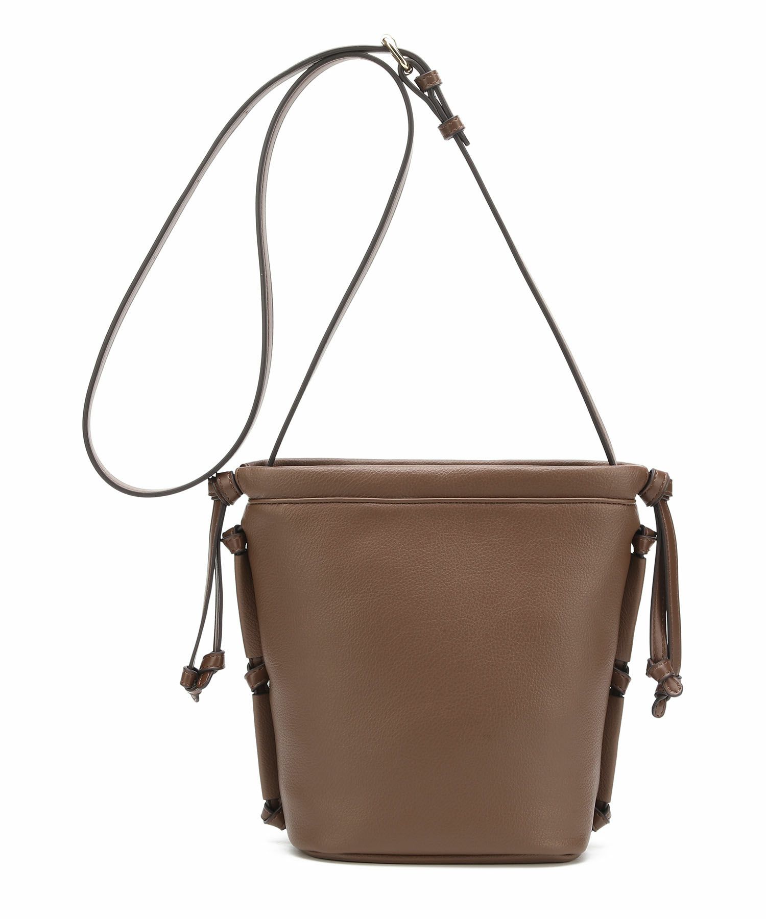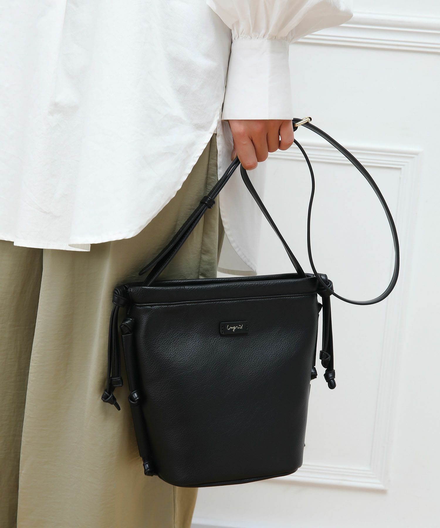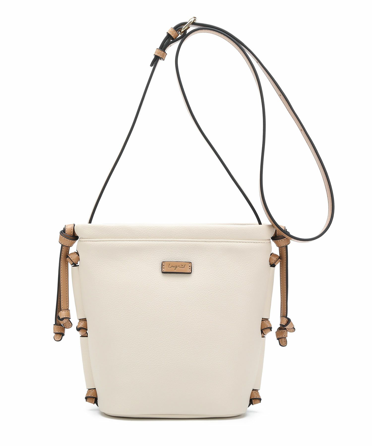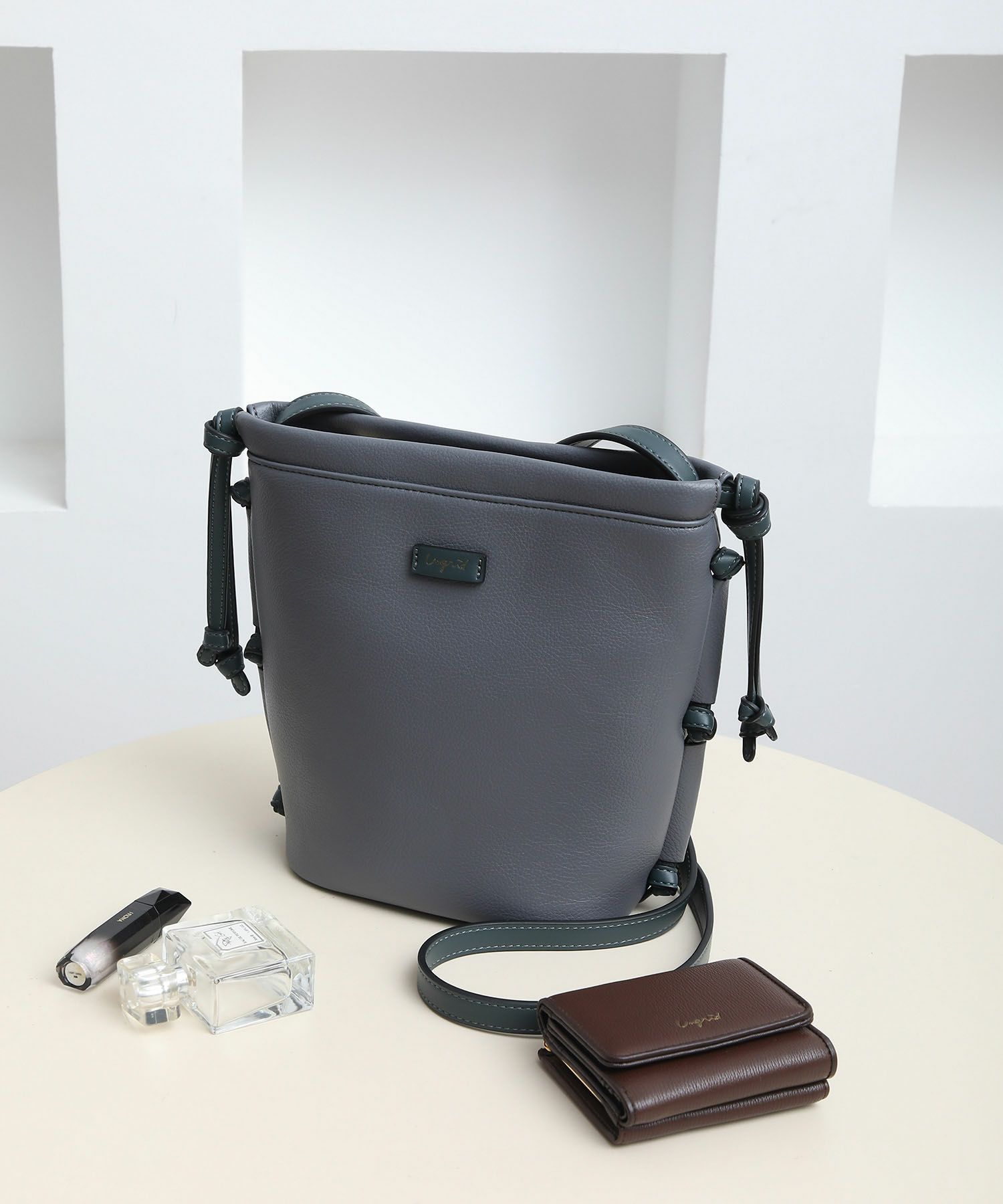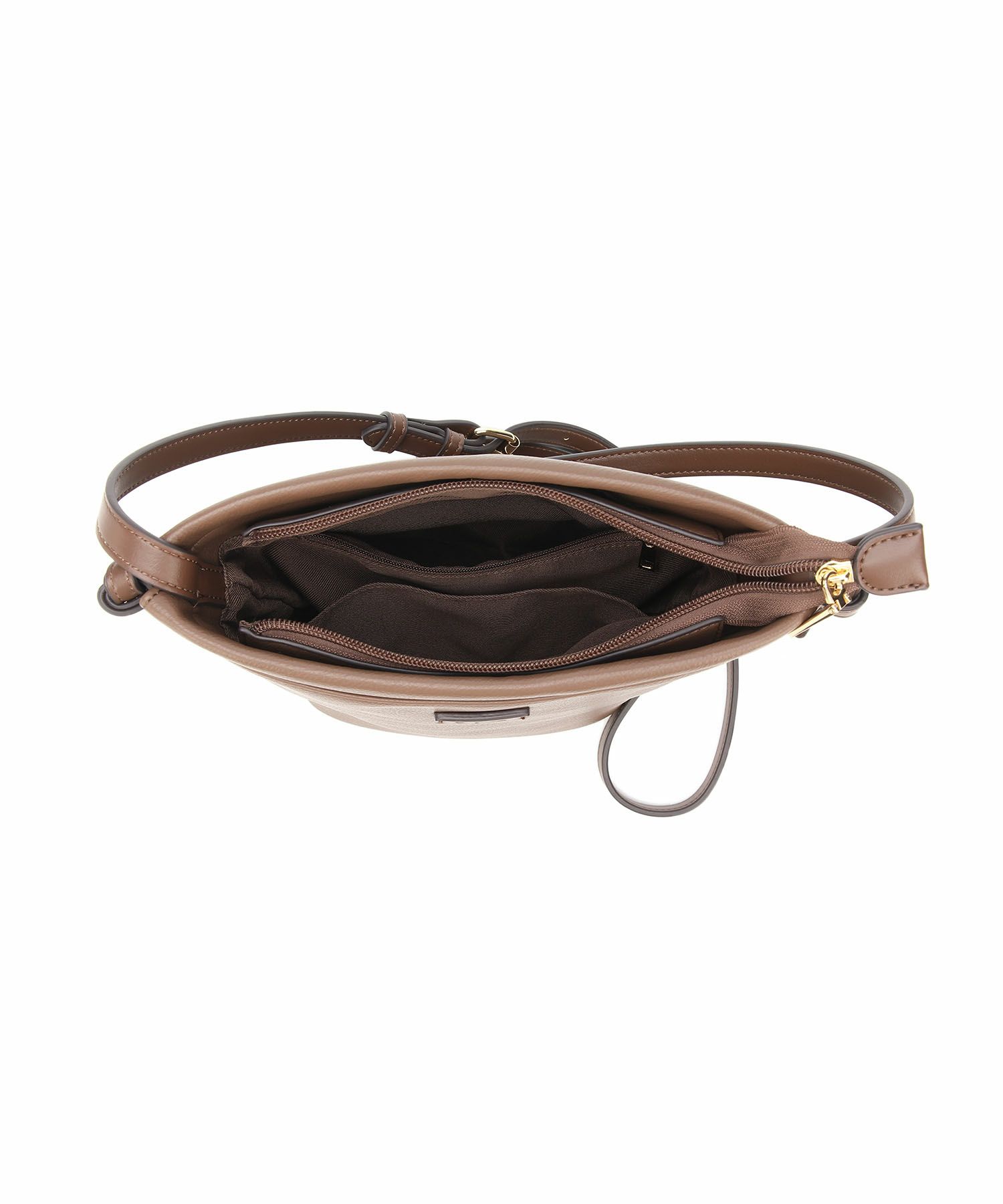 シックな色合いにショルダー部分をバッグに組み込んだ遊び心を効かせたデザインの両アオリポケットショルダーバッグ。_x005F_x000B_歩くたび揺れる両サイドの紐デザイン&配色カラーがお洒落で、