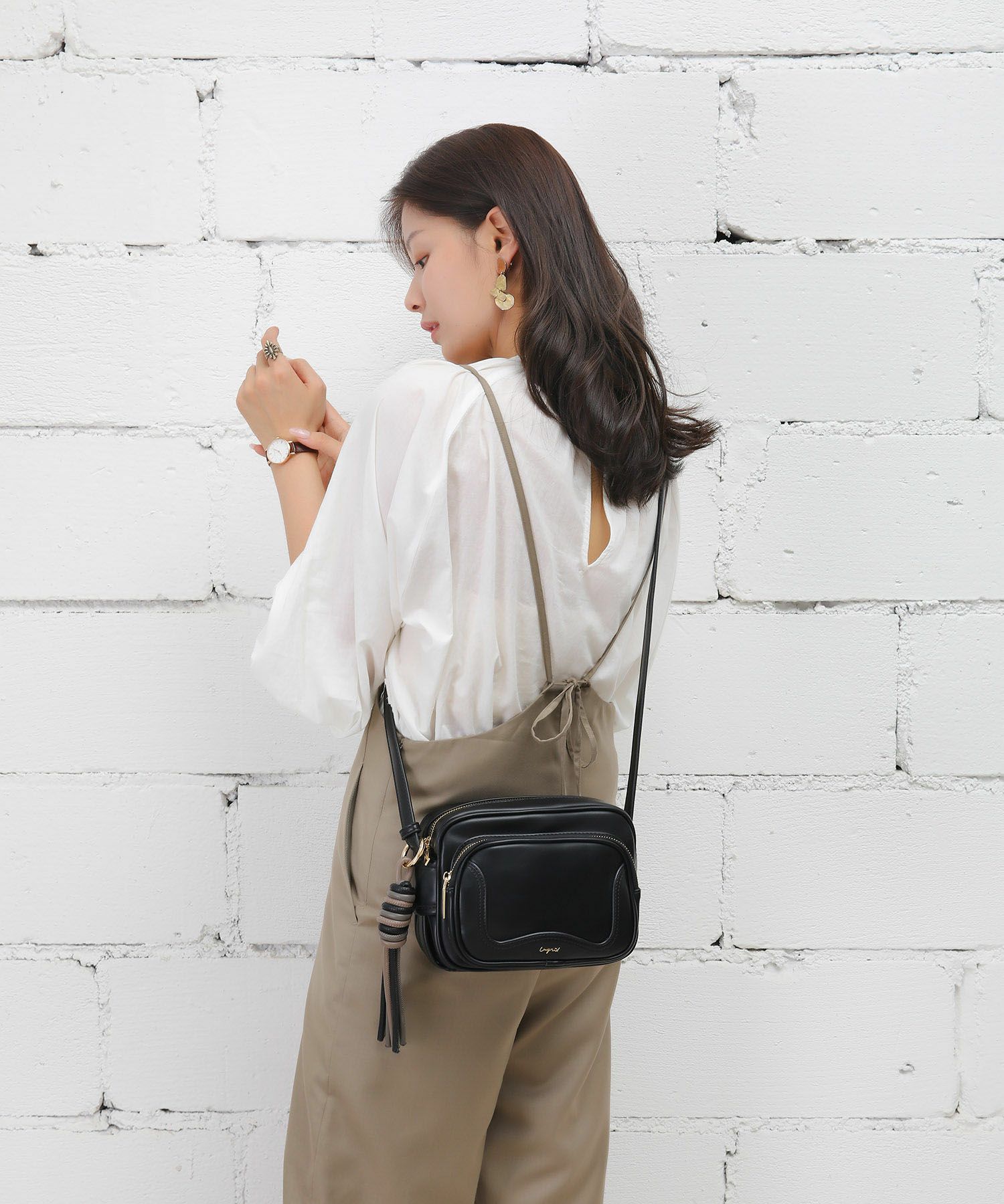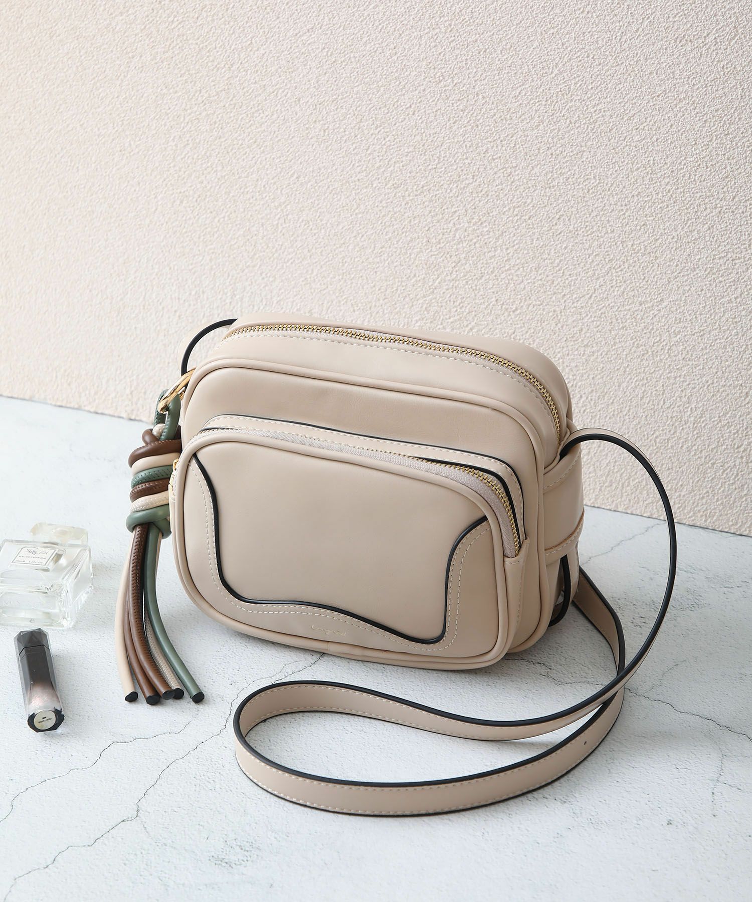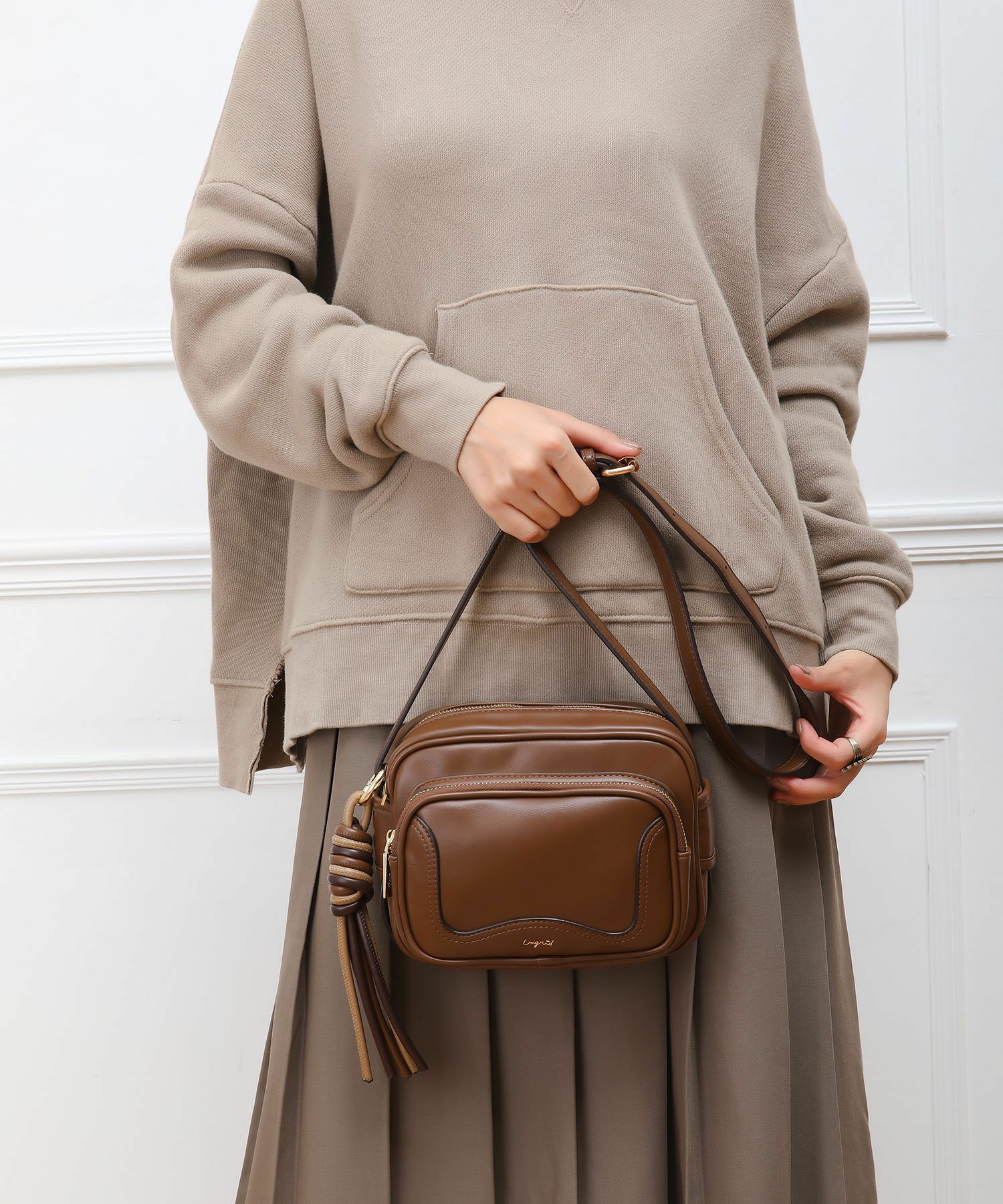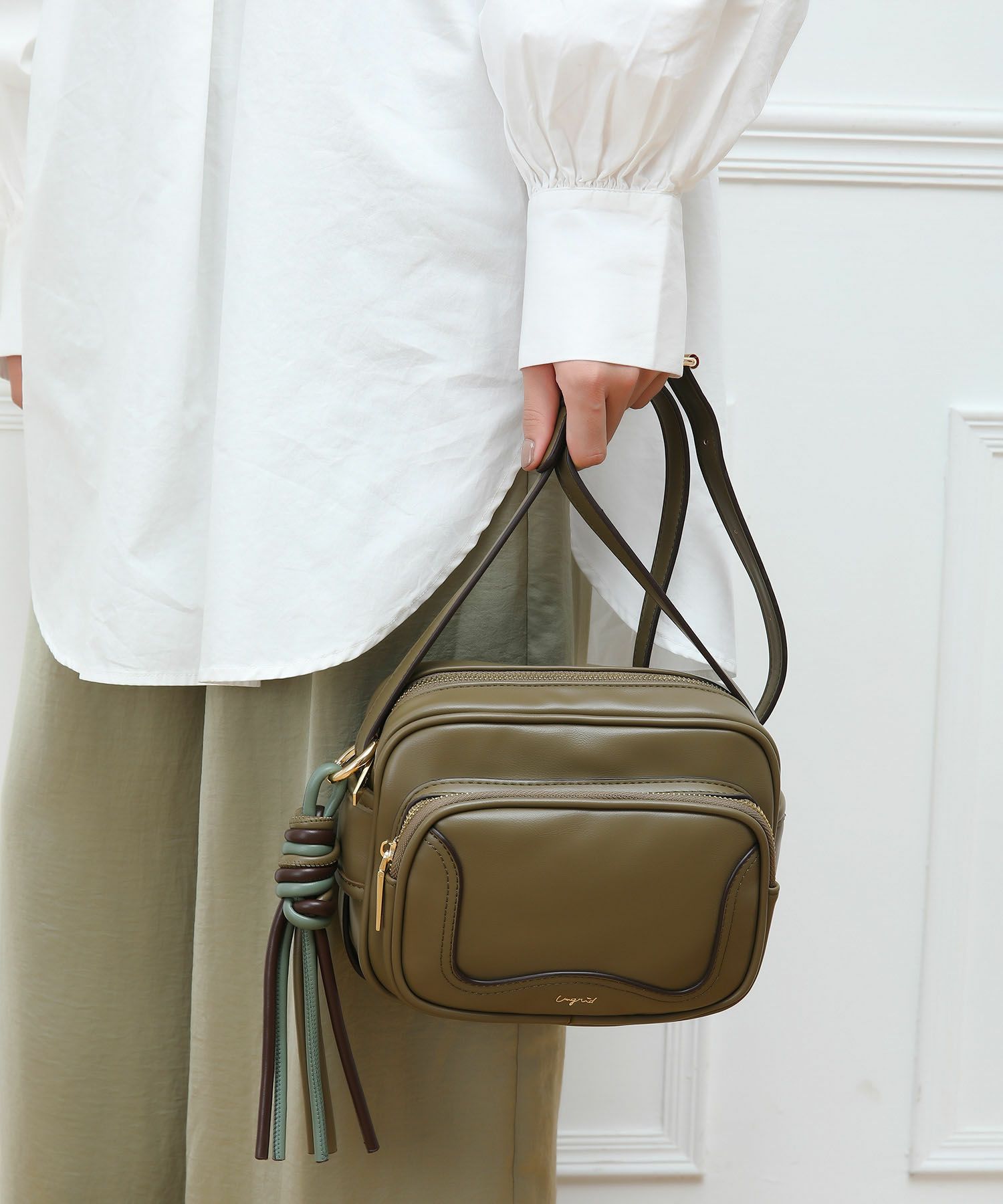 3色の色合いのツイストタッセルがパッと目を引く遊び心を効かせたショルダーバッグ。