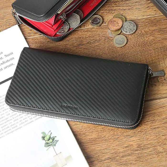 牛革カーボン ラウンドファスナー 長財布