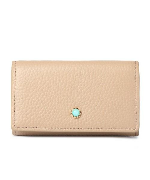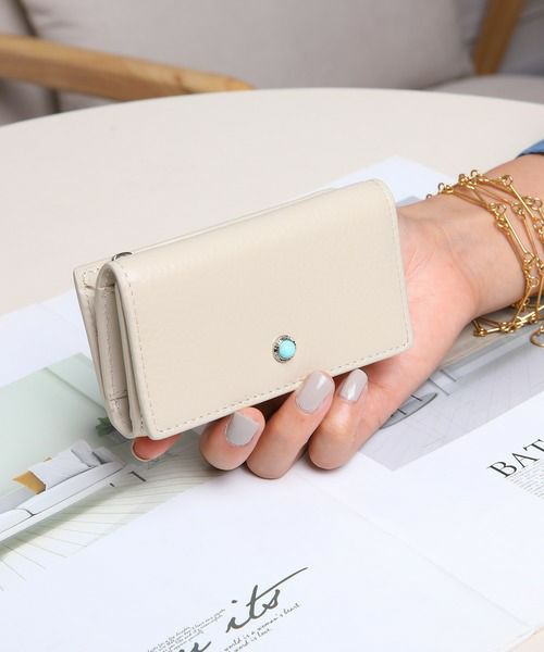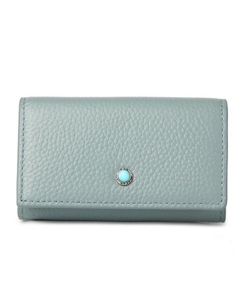 牛革天然石ブローチ L字ファスナーポケット付きキーケース