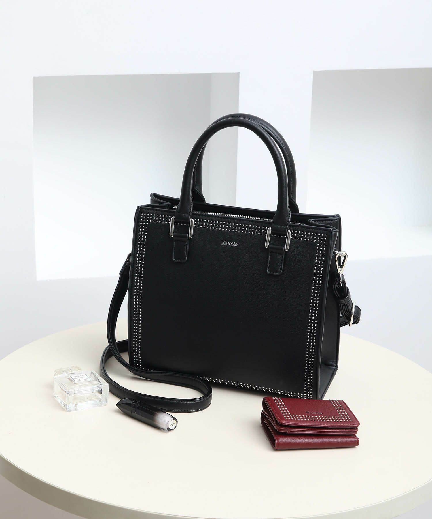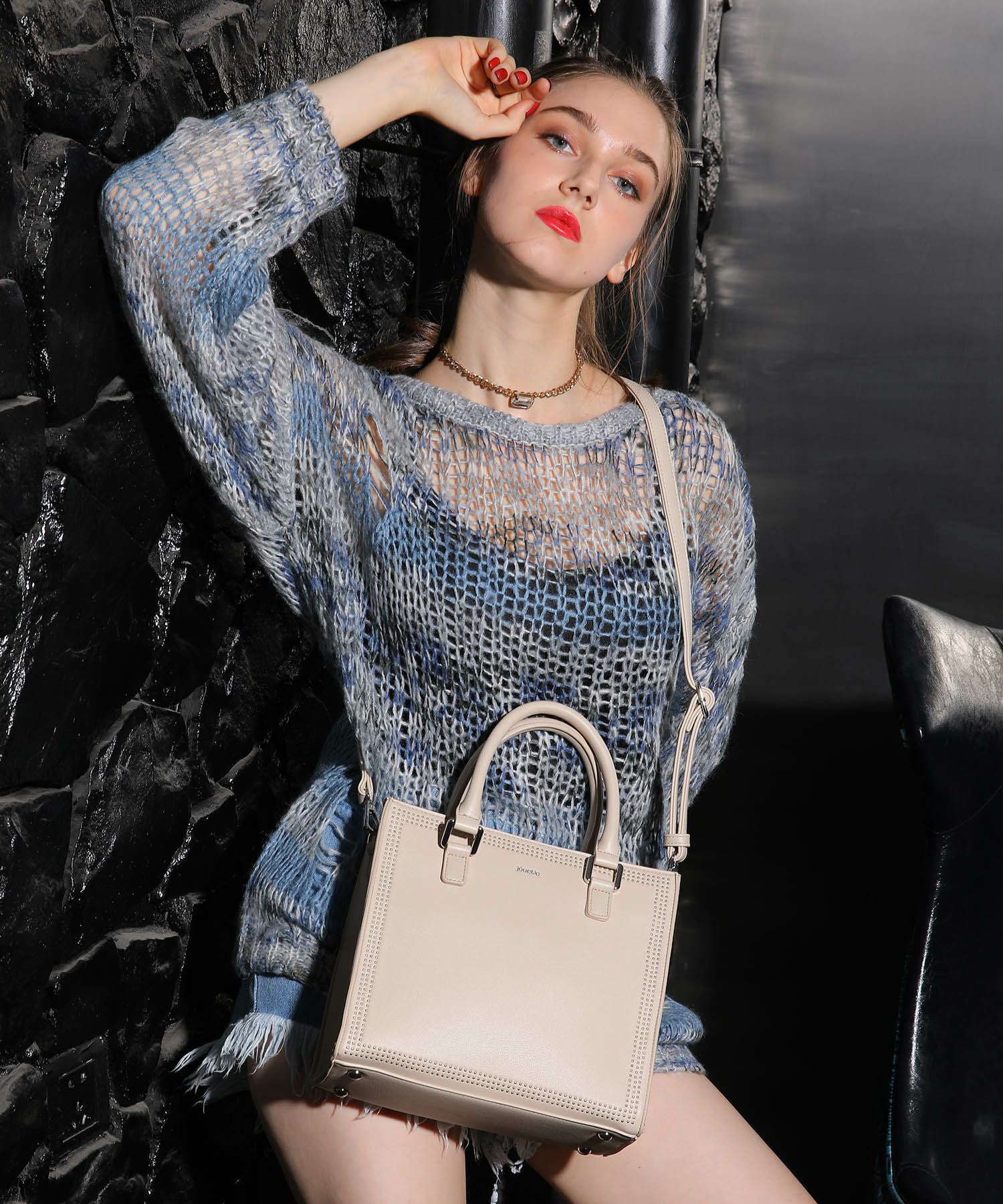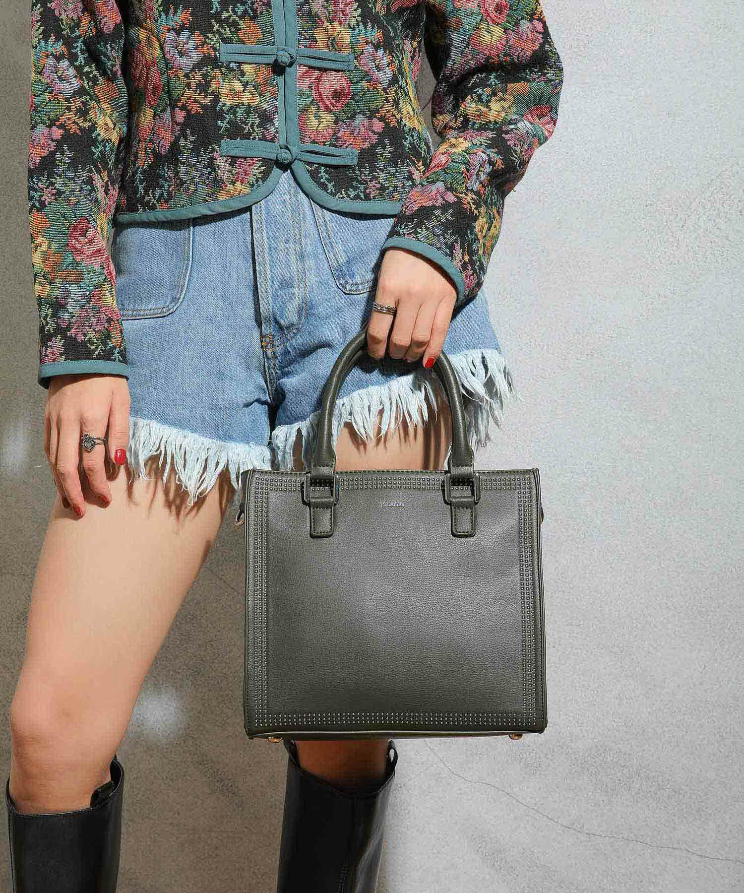 シンプルで使いやすいデザインの中にあるマイクロスタッズがjouetieらしくエッジを効かせたミニバッグ。