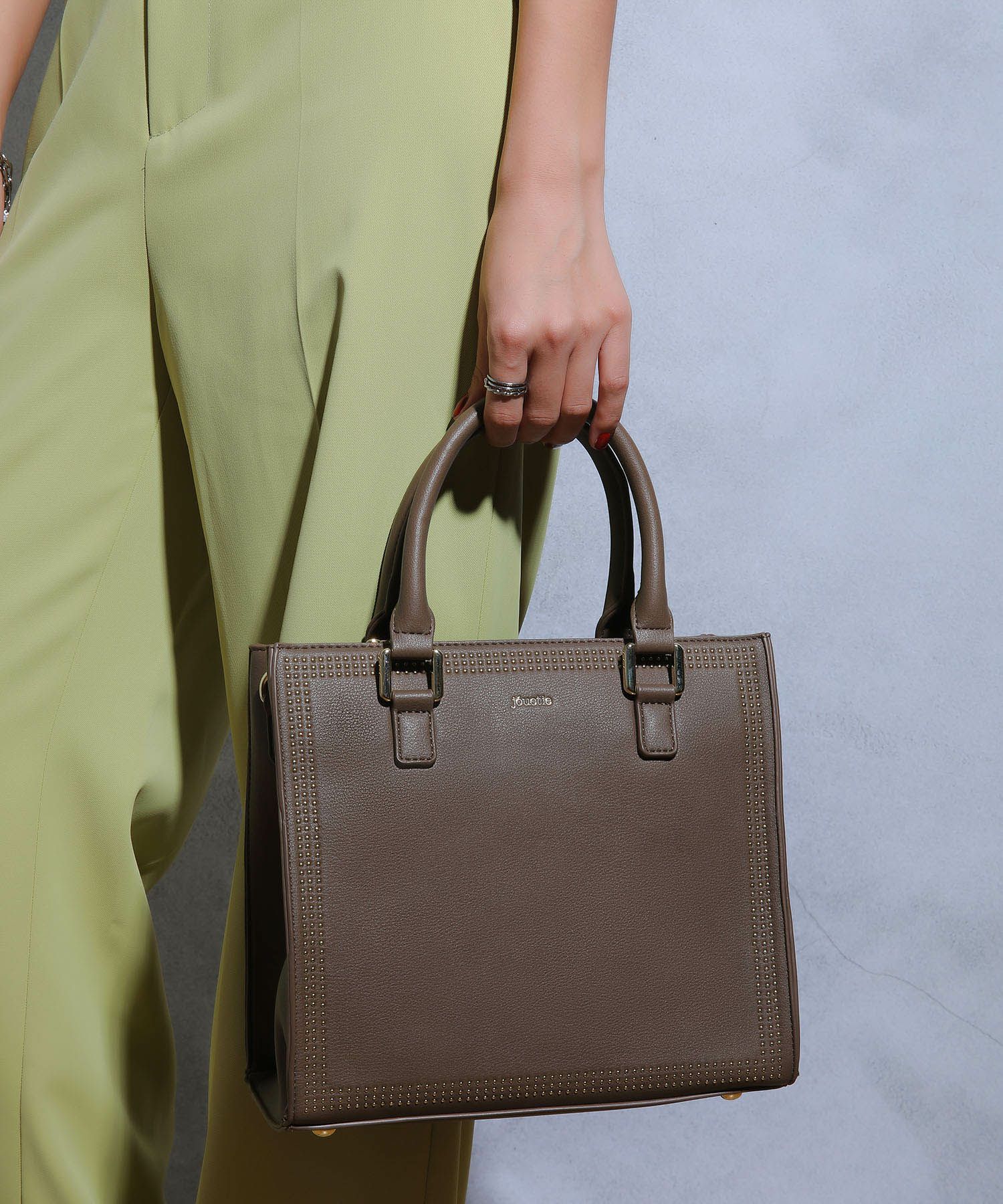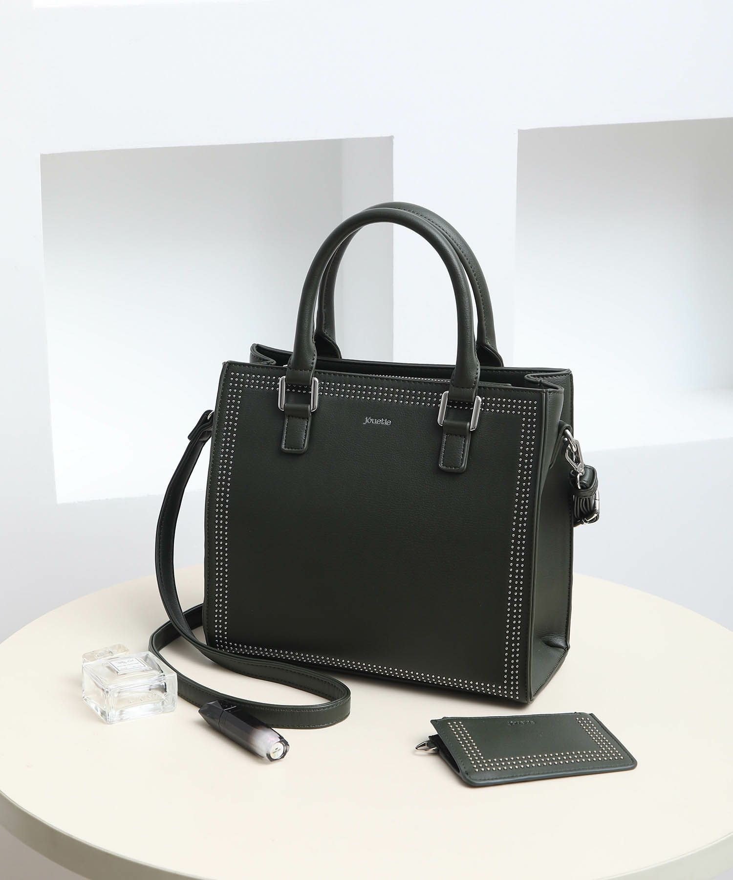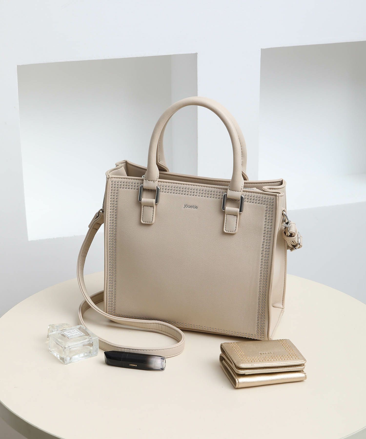 シンプルで使いやすいデザインの中にあるマイクロスタッズがjouetieらしくエッジを効かせたミニバッグ。