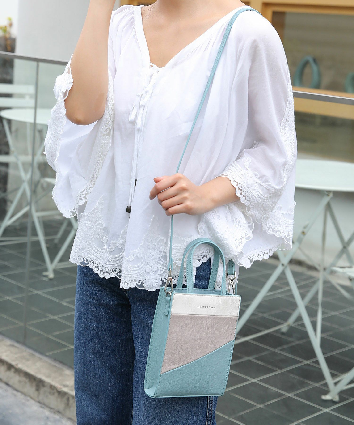 スマホや財布など、必要最低限の荷物がスマートに収納でき、ちょっとしたお出かけにもさっと持て重宝しそう◎