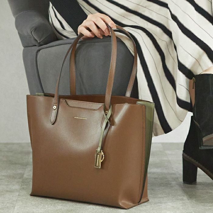 サイド配色 A4 トートバッグ キーリングチャーム付き